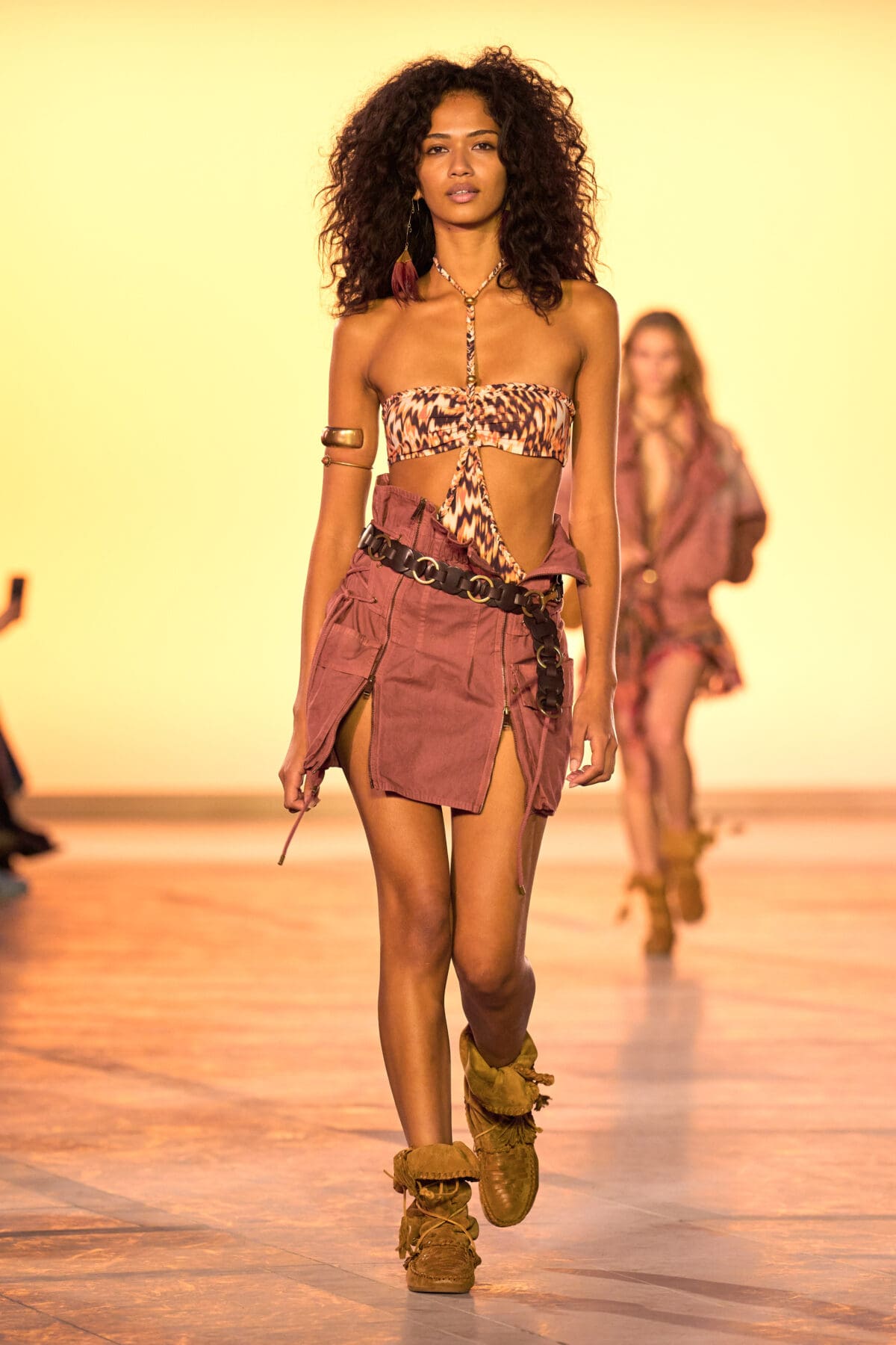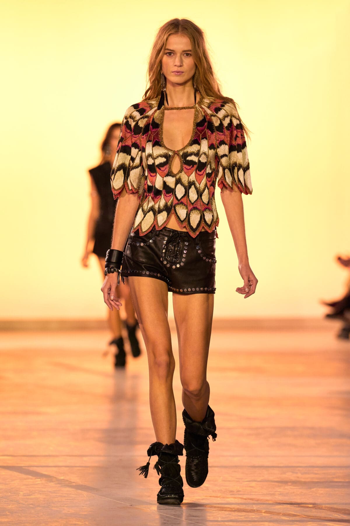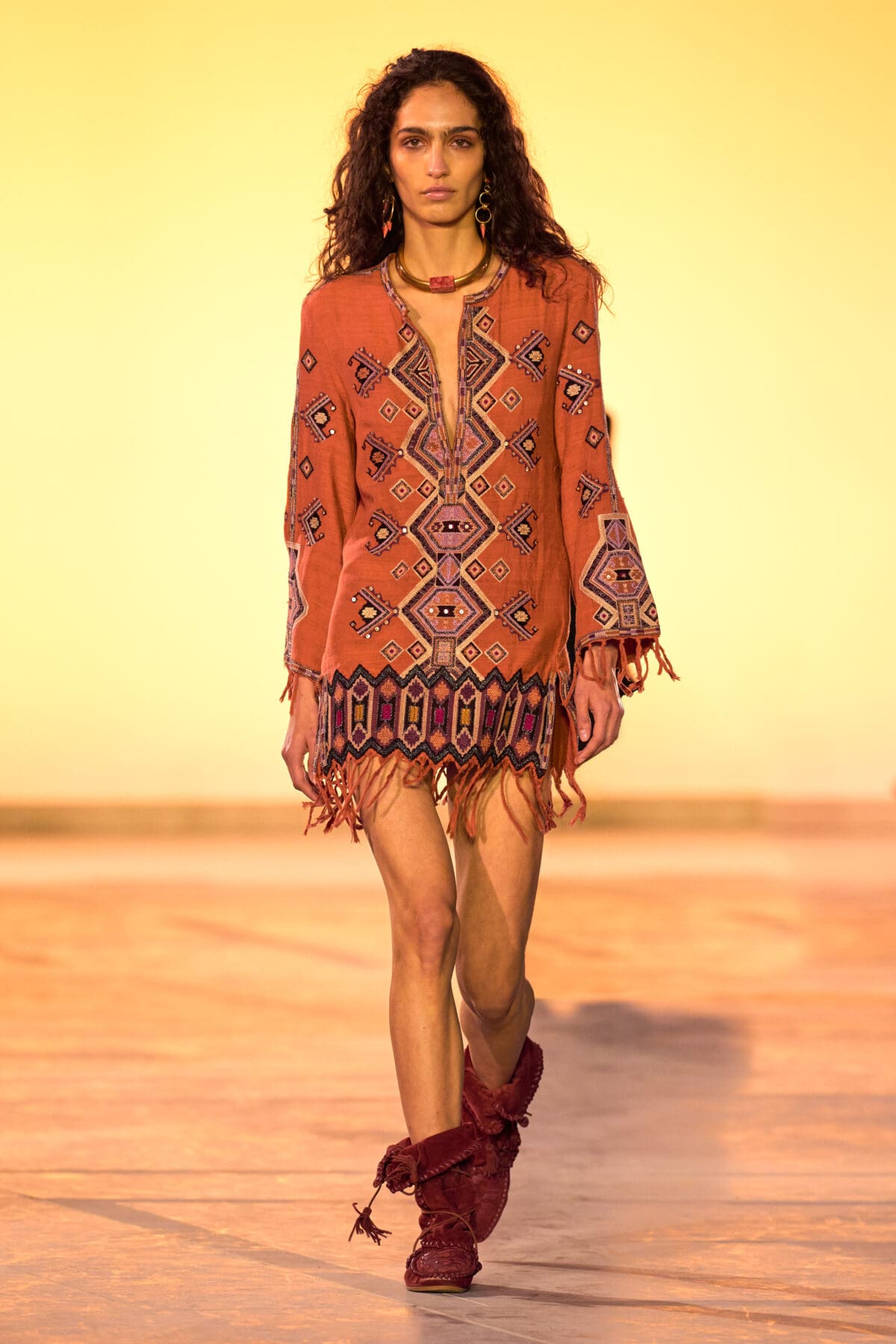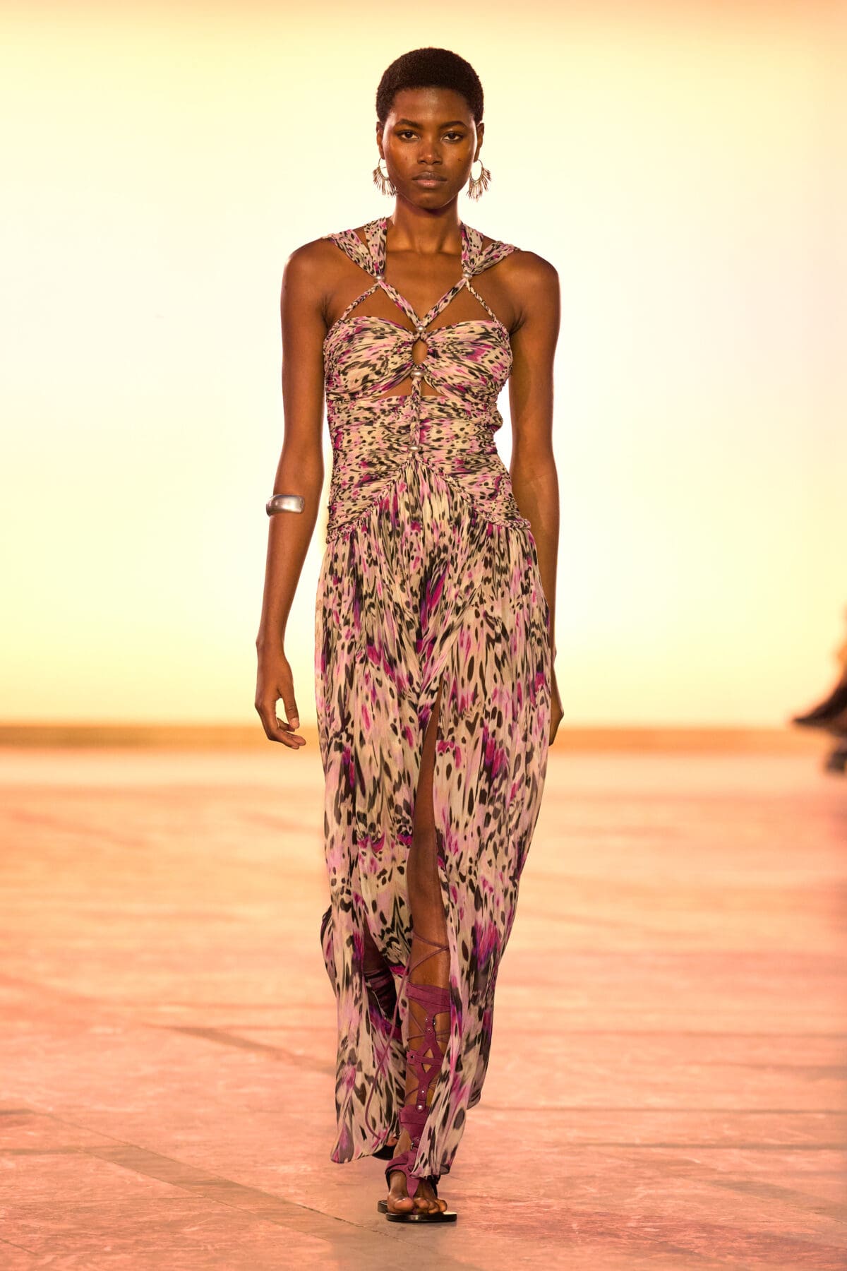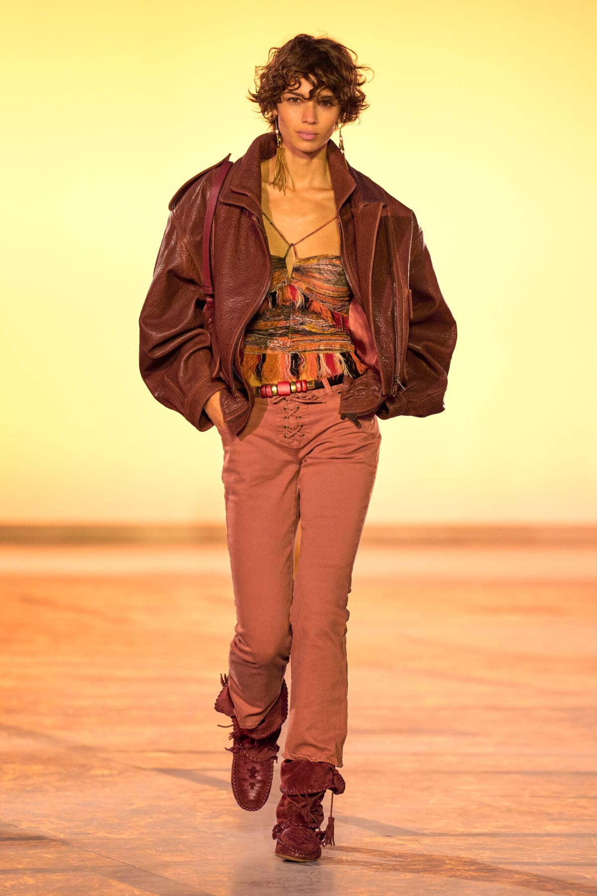 「我想回到我們的根基,做一些真正手工藝的東西,這是關於一群非常強大的女性。而且有一點亞馬遜的氛圍。」Marant在《Vogue》Runway的採訪中說。系列的熱帶元素引人注目,如絲線編織圖案針織裙,靈感來自南美的蝴蝶。品牌工藝和DNA非常顯著,彩虹色調流蘇的絲質外套、米色和抽象印花拼接而成的上衣,還有由銀色珍珠光澤物料構成的金屬灰色長裙,透出身體肌膚,賦予性感又慵懶的氣息。