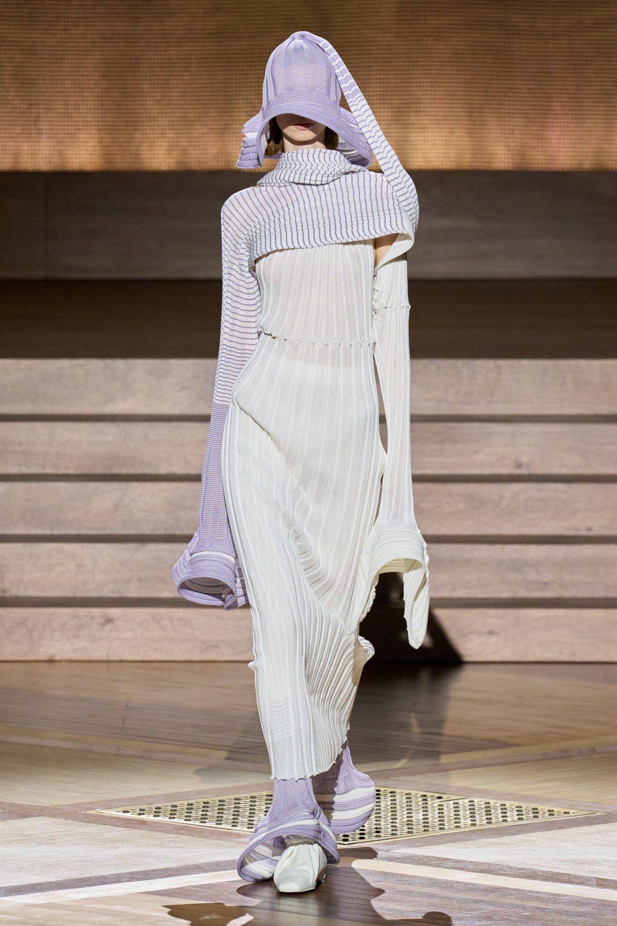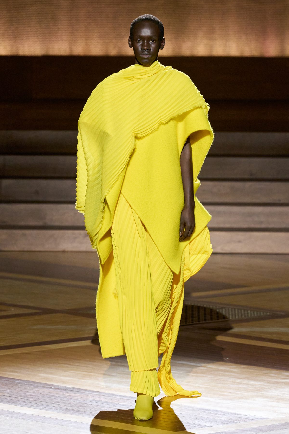 從自然形態到為人穿衣的時尚概念,設計師在系列反思並發現製作之美 。褶皺以不同方式存在於布料之中,自然層疊垂綴帶來雕塑感,隨一舉一動呈現身體的美,表達出愉悅與對未來的希望。