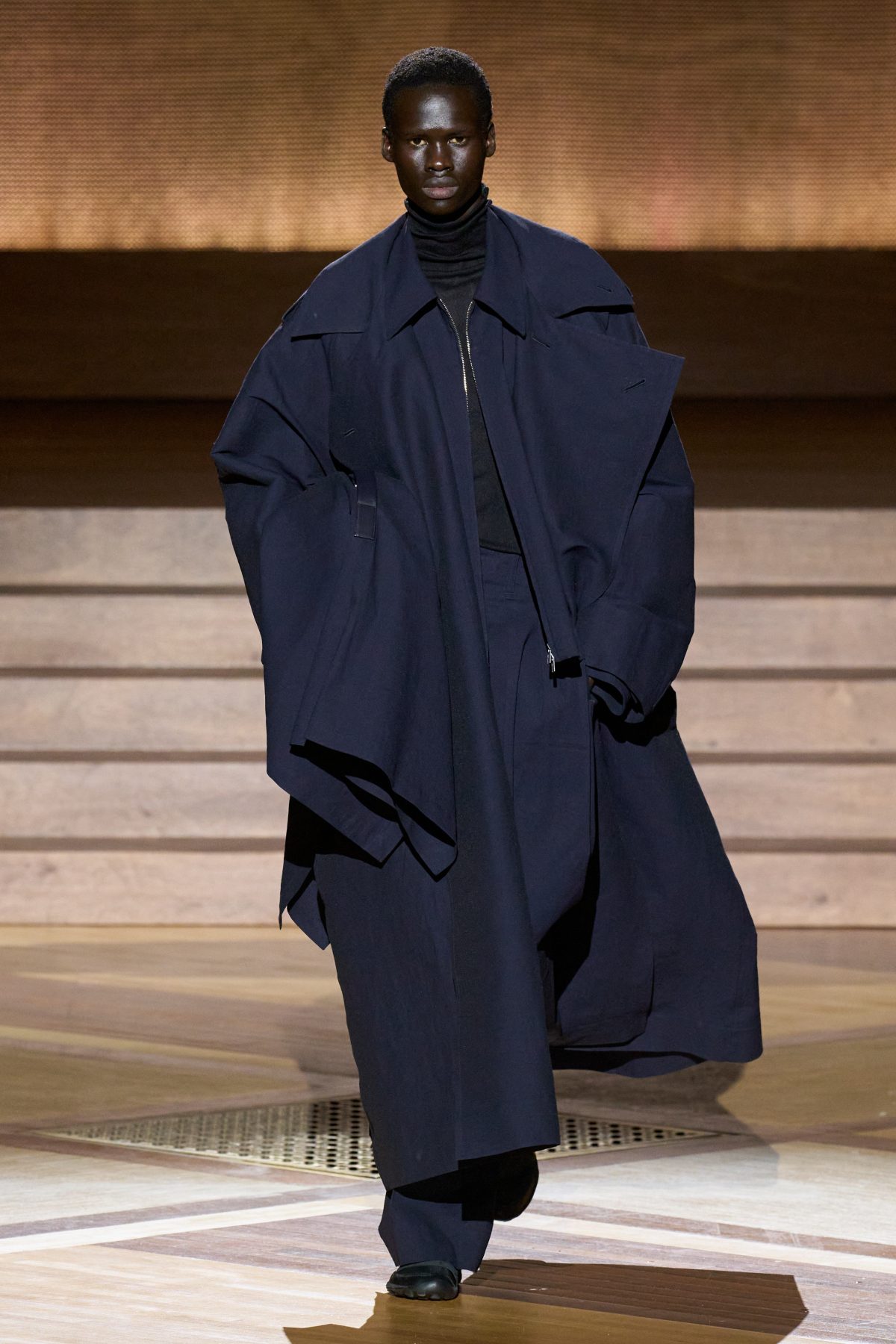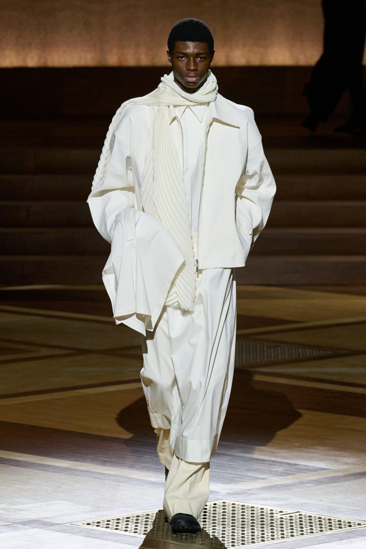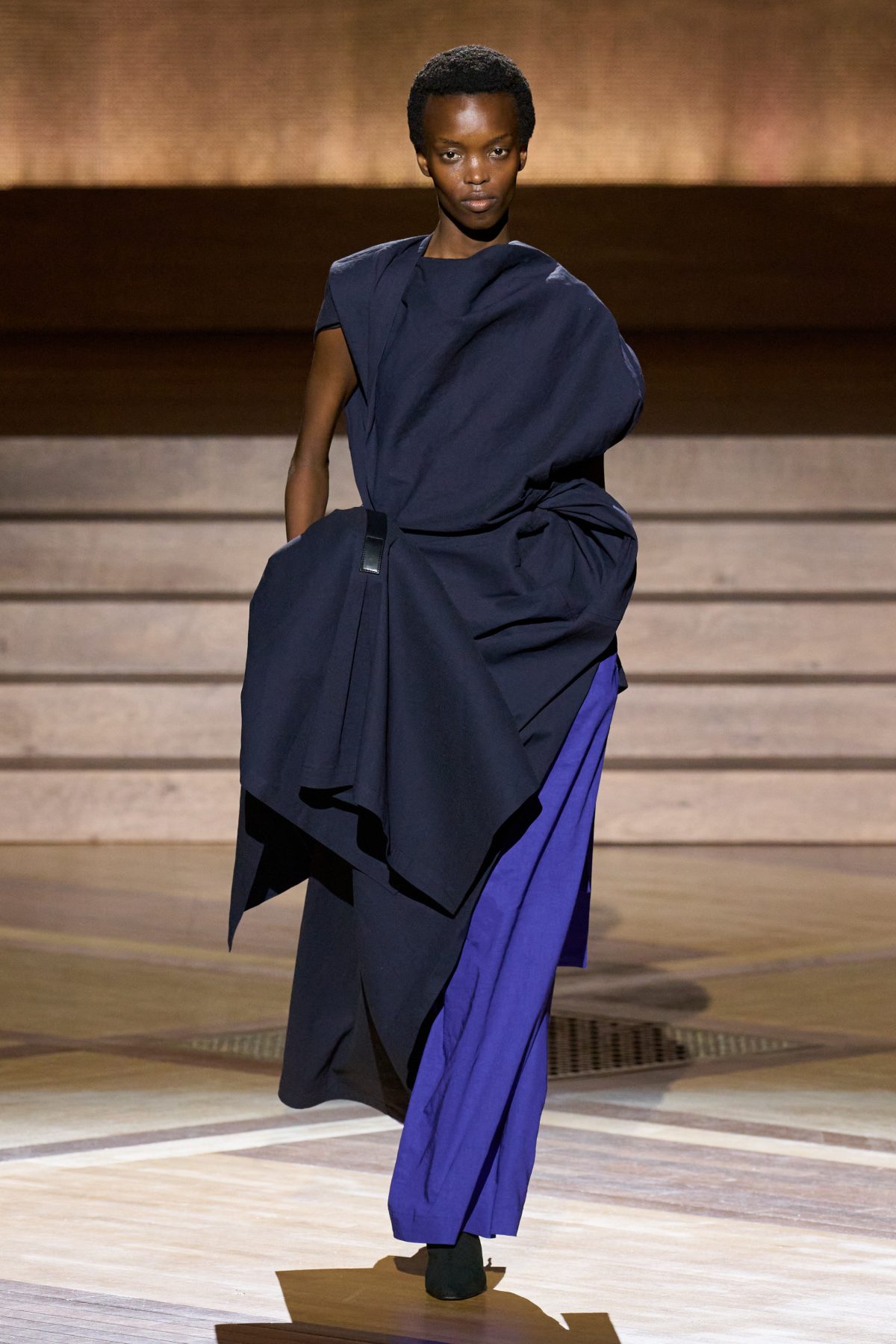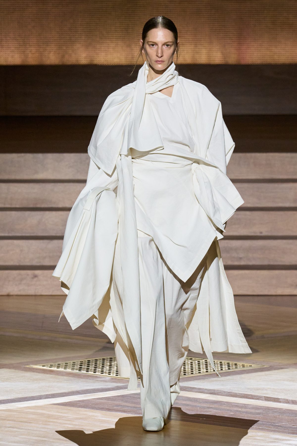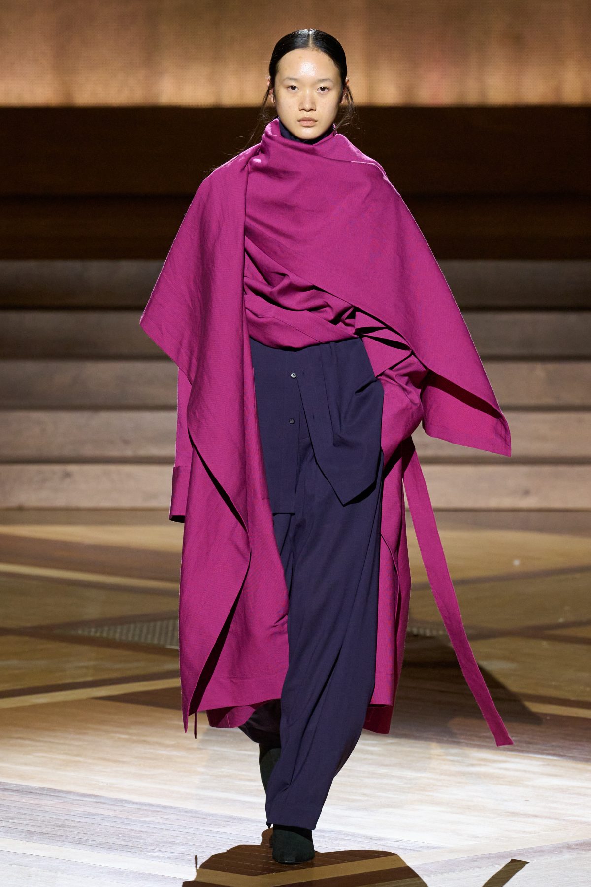 2024秋冬系列時裝騷在這幢法國移民歷史博物館的建築中舉行,背後是壯觀迷人的壁畫裝飾,擁有悠久歷史和故事。在這裏,創意總監近藤悟史(Satoshi Kondo)及設計團隊將Issey Miyake新系列名為“What Has Always Been”,探討衣服的本質。開場的幾個造型中,從腳踝到手臂如長出花蕾——布料似乎自發地由身體延長出去,彷彿衣服在穿着者身上肆意生長。