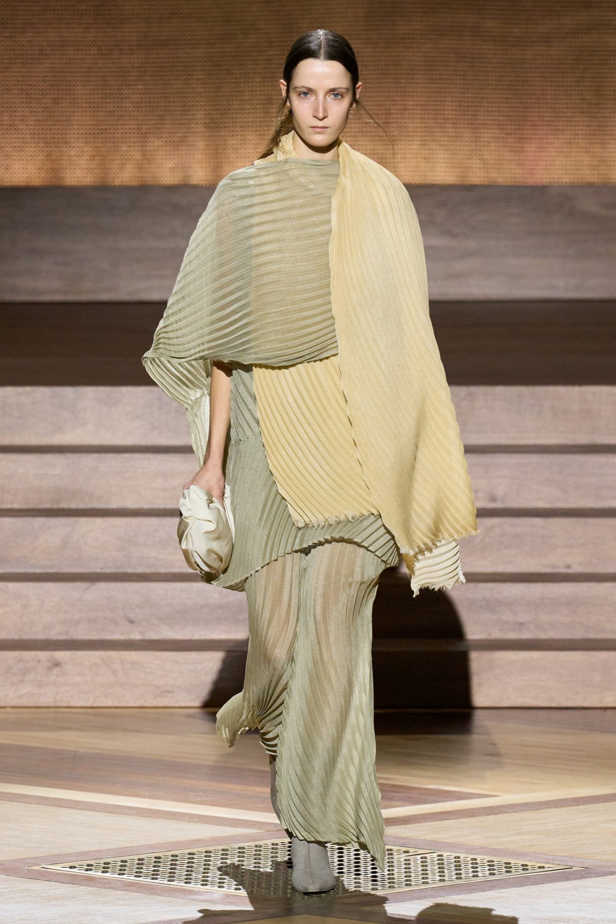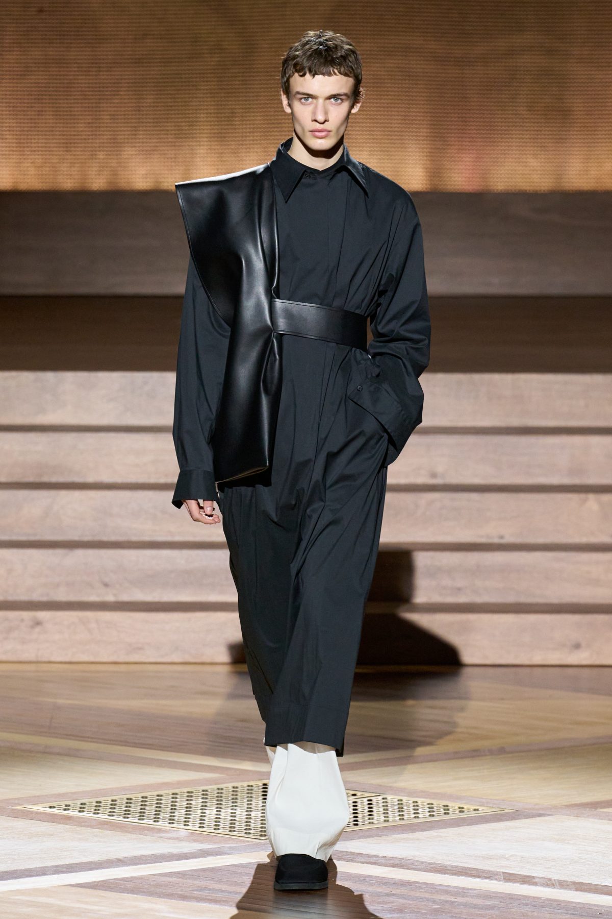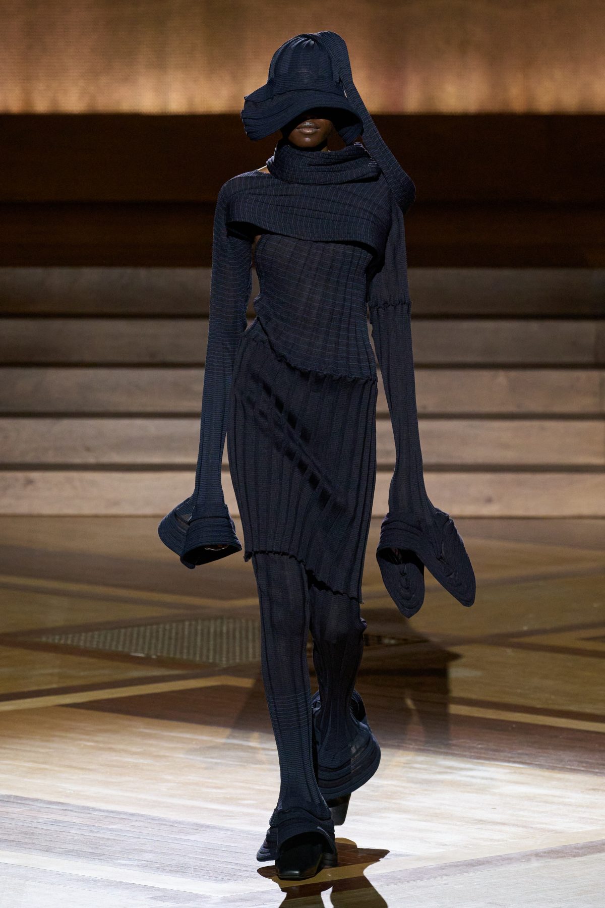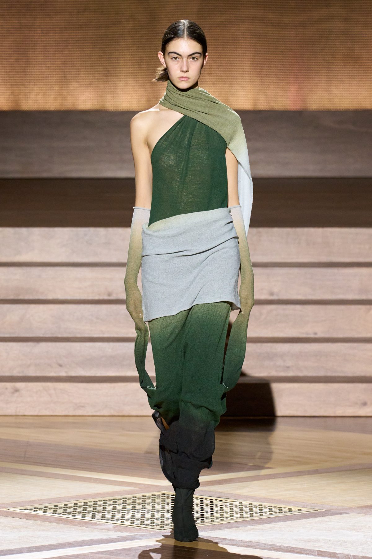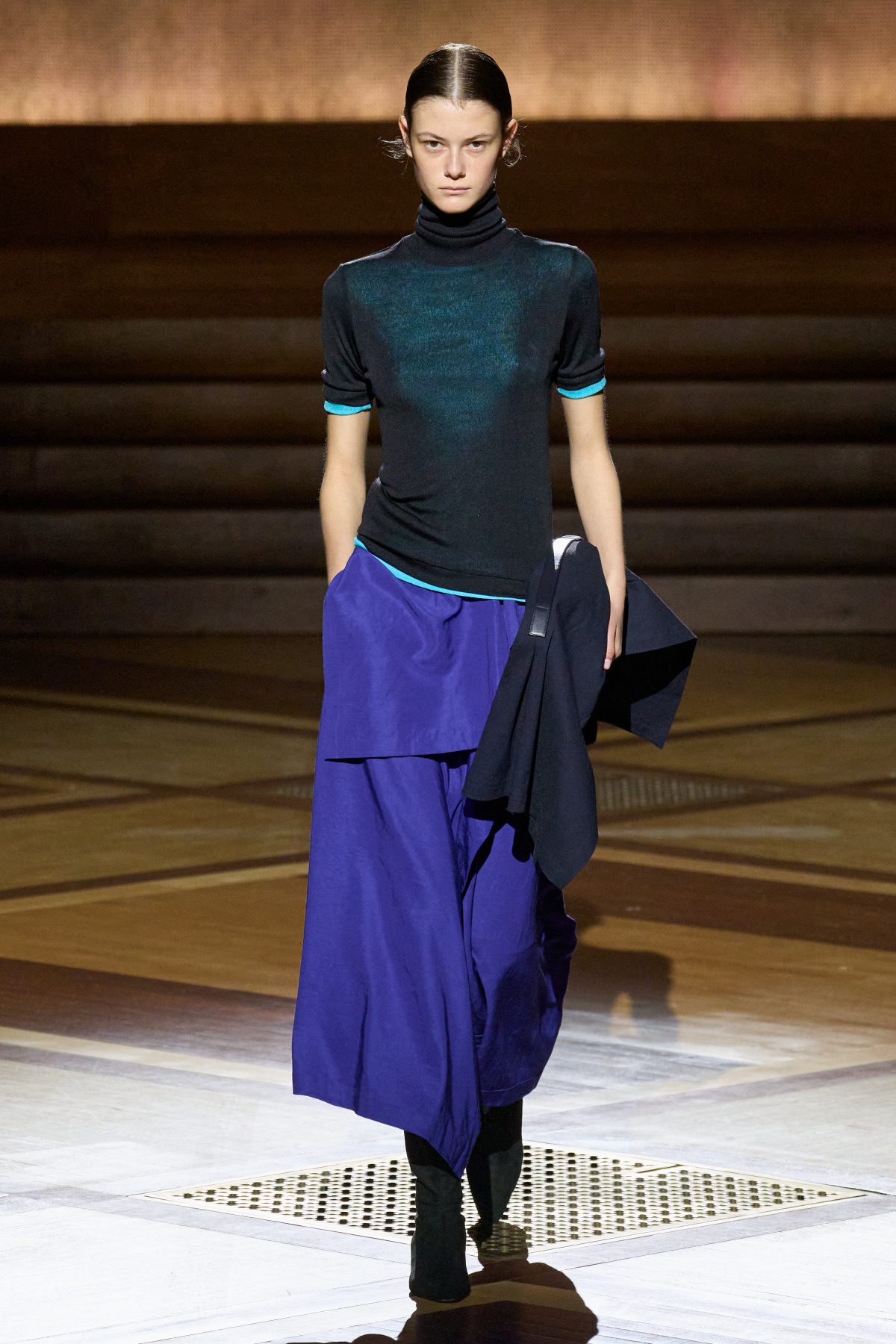 2024秋冬系列時裝騷在這幢法國移民歷史博物館的建築中舉行,背後是壯觀迷人的壁畫裝飾,擁有悠久歷史和故事。在這裏,創意總監近藤悟史(Satoshi Kondo)及設計團隊將Issey Miyake新系列名為“What Has Always Been”,探討衣服的本質。開場的幾個造型中,從腳踝到手臂如長出花蕾——布料似乎自發地由身體延長出去,彷彿衣服在穿着者身上肆意生長。