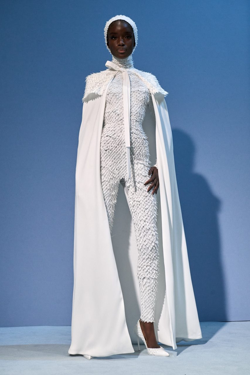 在全新高訂系列,Haider Ackermann 以自己的方式向 Haider Ackermann 致敬,他減少慣常使用絲綢與絲絨等飄逸的用料,反而將西裝元素、緞面的錐形胸衣、進行全新詮釋,同時透過立體羽毛配飾、手工褶皺與硬身廓形設計,不斷的拆解與組合,最終透過服裝展現女性既可優雅,又能硬朗的多變力量。模特兒的妝容同樣是焦點之一,把髮型「方塊」置於後腦的延長線,打造出超光滑具建築風格的髮髻,而在流暢的線條之間,髮型喚起了九十年代的沙龍時尚,是那樣迷人且具韻味。我們常說美好的時尚年代已經回不去,不過從這次的時裝展中,美好的歲月又再一次映在大眾眼前。