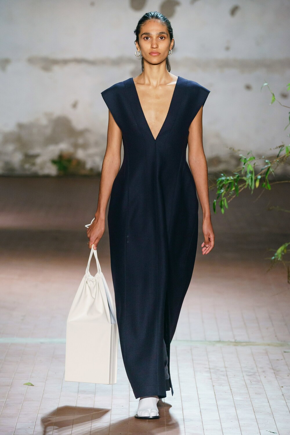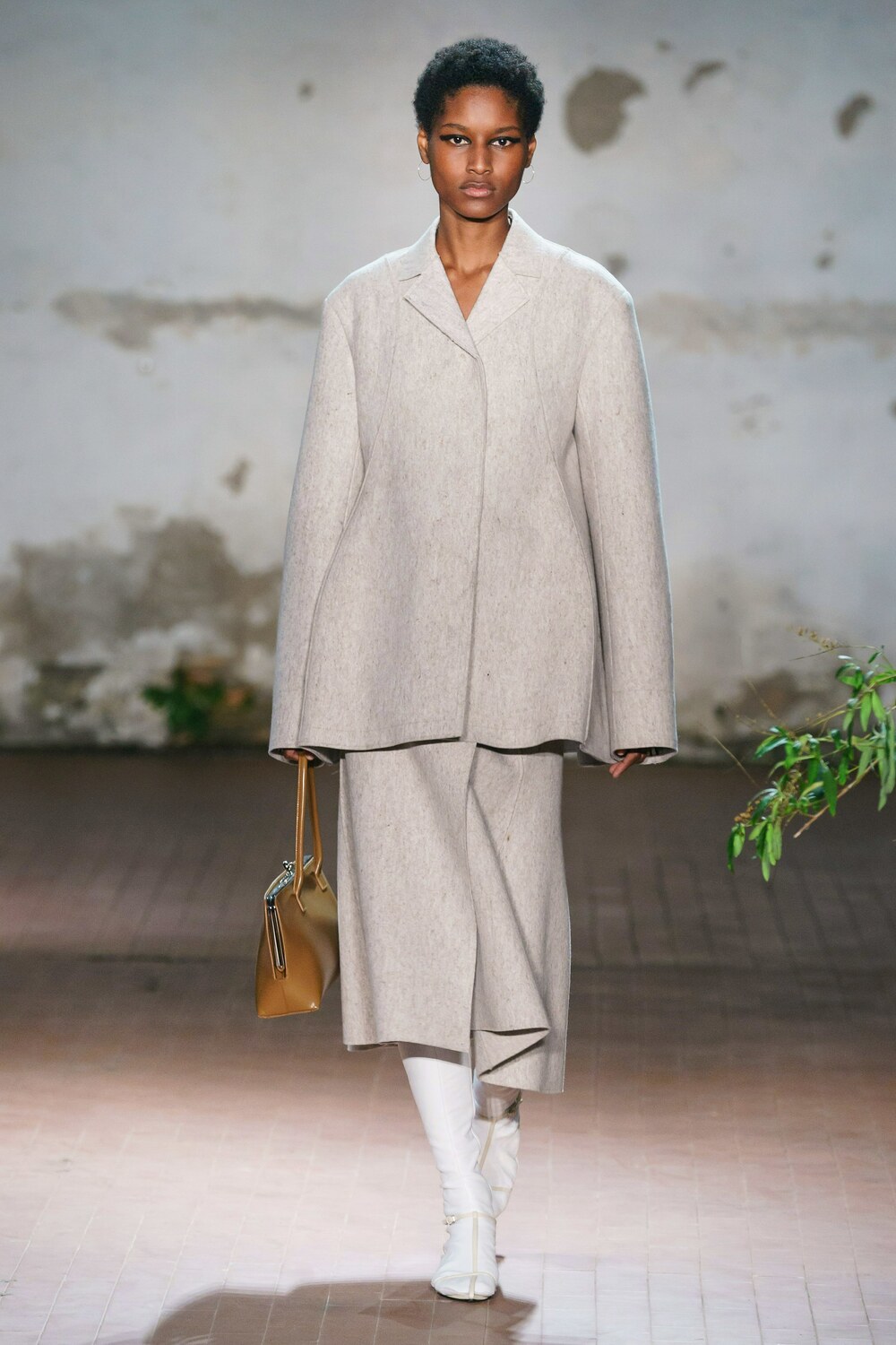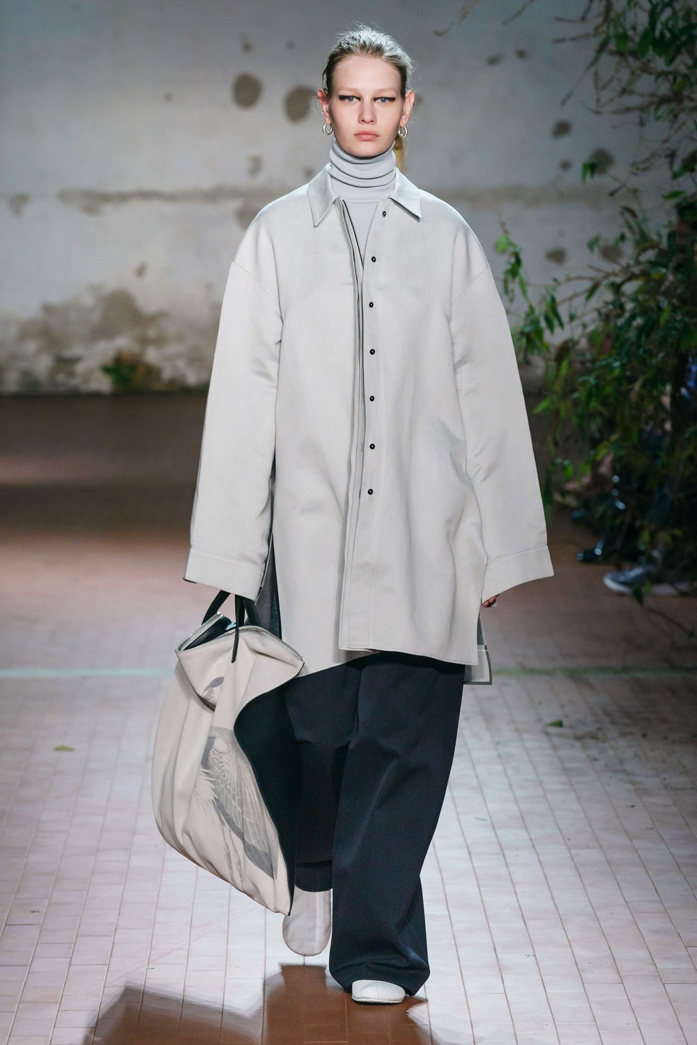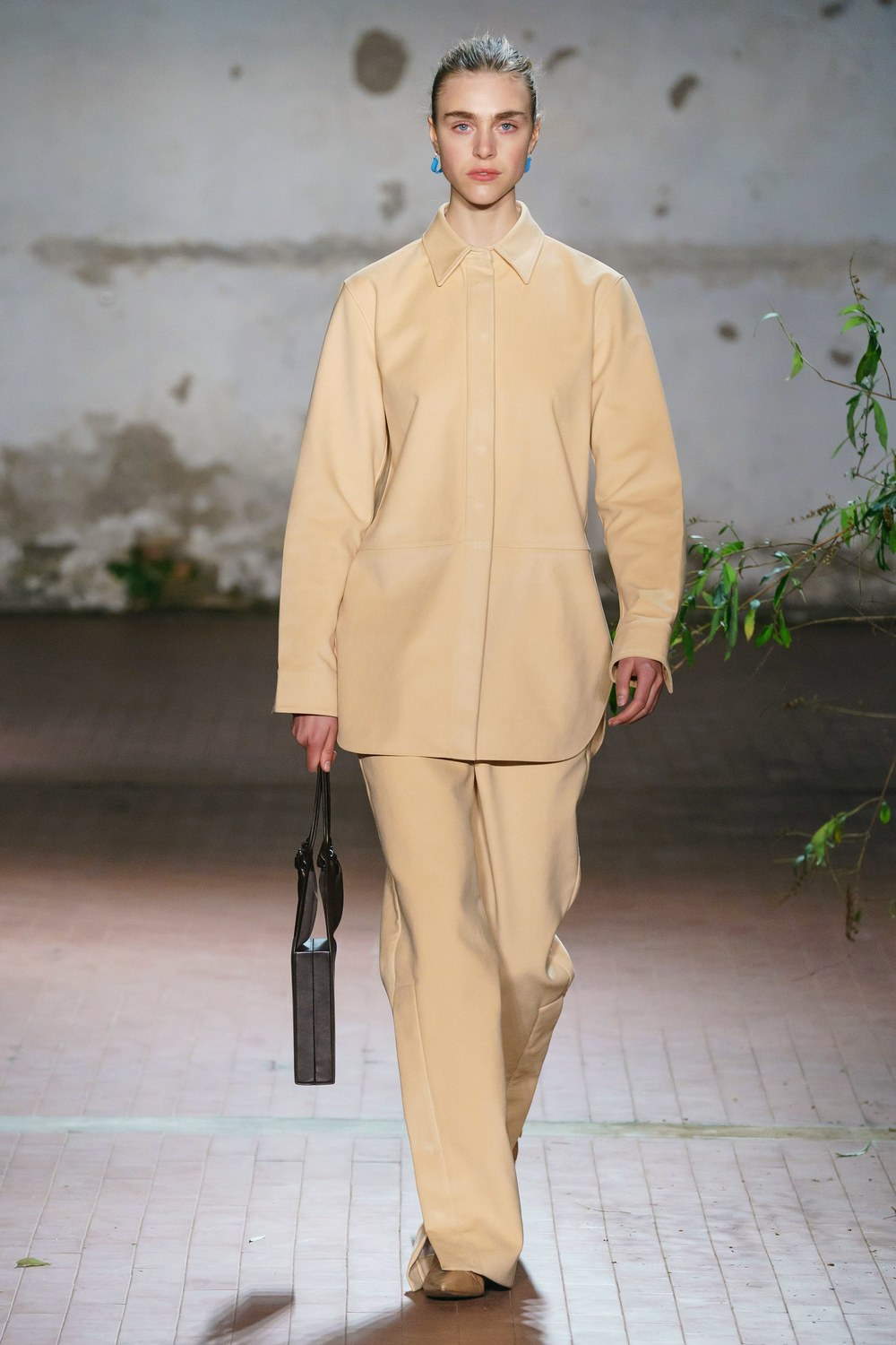 如果以為來自 Dior 高級訂製工作室的 Lucy 和來自潮流街牌 Supreme 的 Luke 會將 Jil Sander 改造成他們倆過去的混血結晶品,那可能是另一個平行時空的結局。他們對品牌都各持不同的看法,一個成熟而認真,而另一個則是為現時快速時裝市場帶來格外的寧靜和詩意。