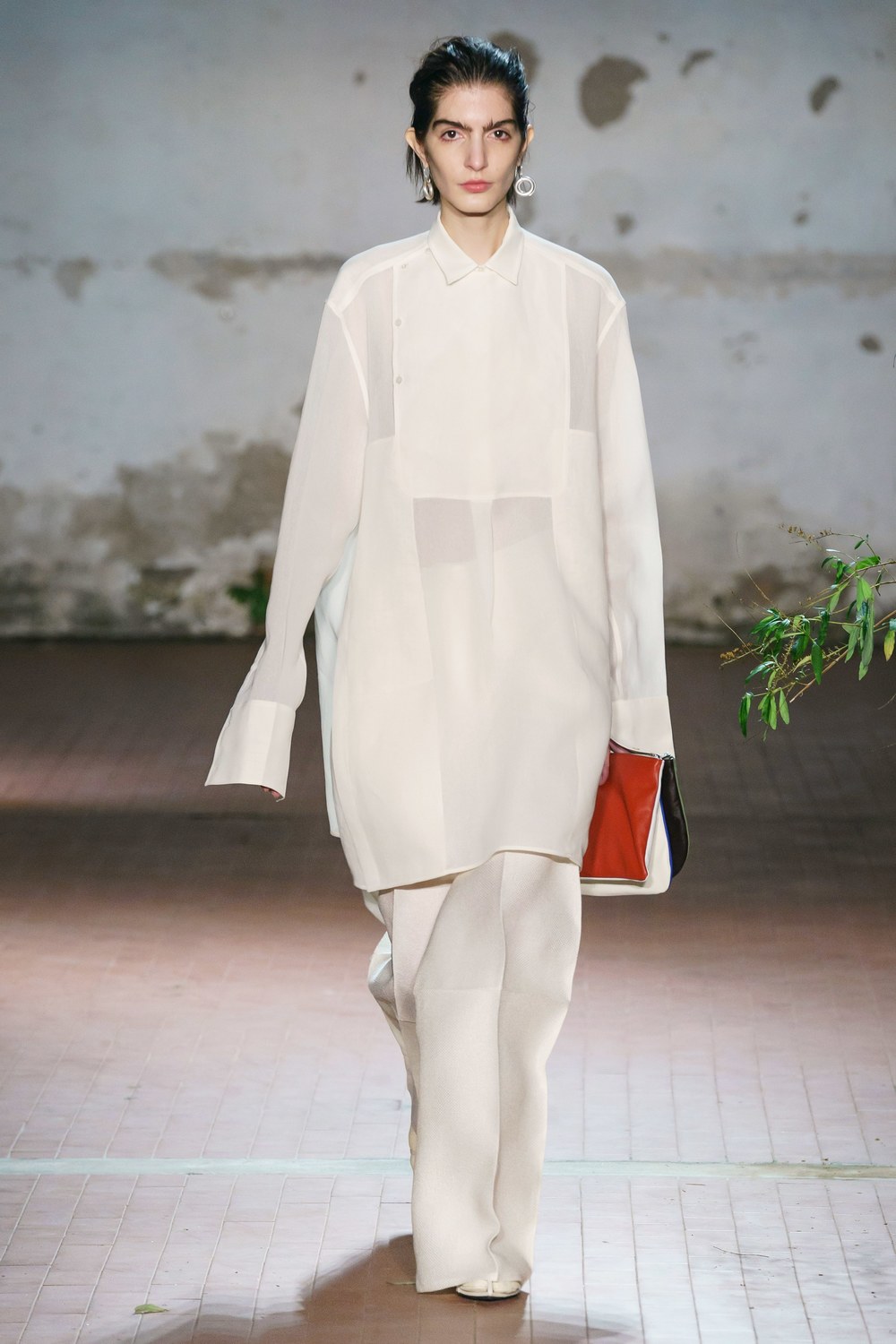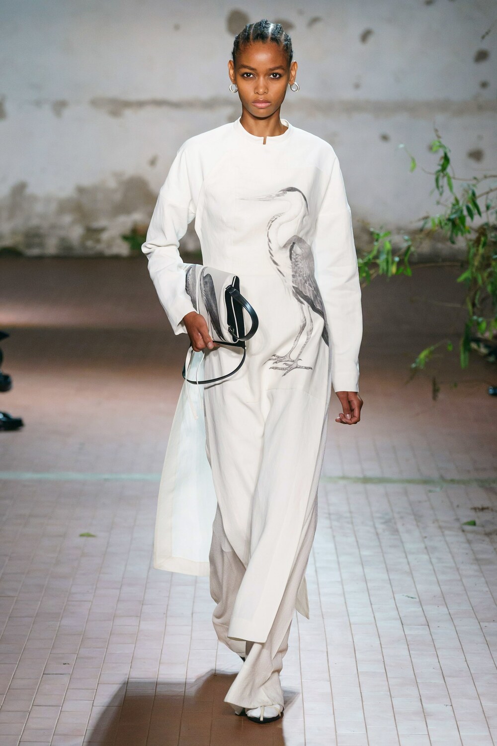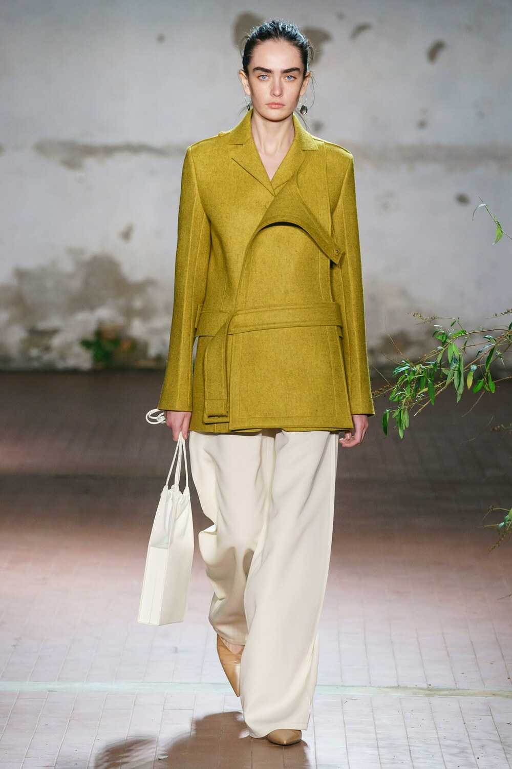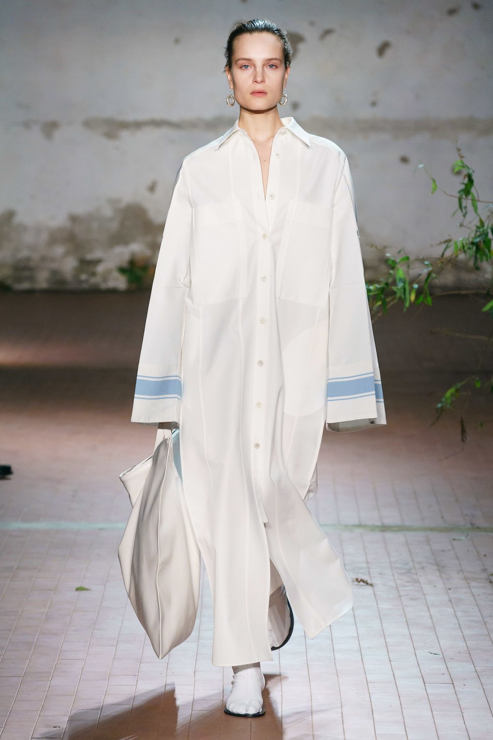 如果以為來自 Dior 高級訂製工作室的 Lucy 和來自潮流街牌 Supreme 的 Luke 會將 Jil Sander 改造成他們倆過去的混血結晶品,那可能是另一個平行時空的結局。他們對品牌都各持不同的看法,一個成熟而認真,而另一個則是為現時快速時裝市場帶來格外的寧靜和詩意。