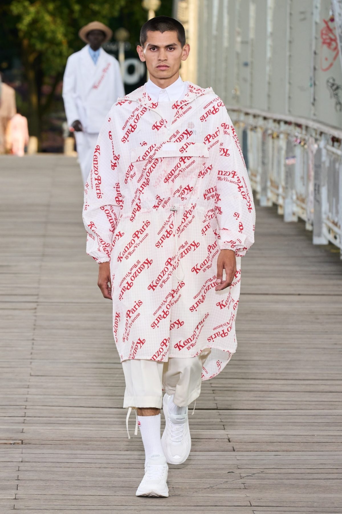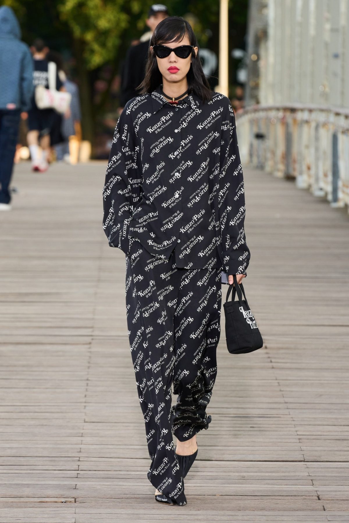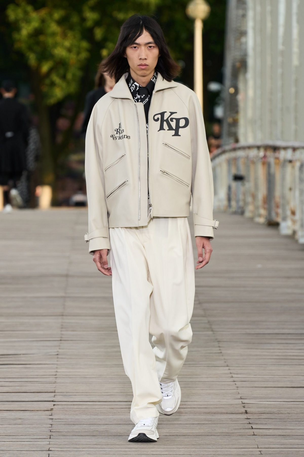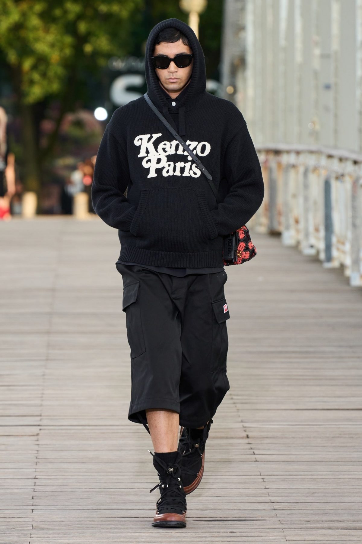 未看設計之前,必須說說這場騷的一些「先兆」—— 就在開騷前兩天,Kenzo 宣佈任命 K-pop 男團 Seventeen 成員 Vernon 為首位全球品牌大使。Nigo 這動作的背後含義很明確,就是建立與時並進的品牌概念。而當我們看向現場時,亦能感受到一種「往前走」的氛圍——從新鮮面孔的名人嘉賓到時裝騷所在的巴黎塞納河上的德比利行人橋。當然,熟悉的身影也有不少,Pharrell Williams 換上全套 Kenzo 服裝,提著自己首個系列的手袋作品來到這裡以示對好友的支持。這一刻,時間彷彿回到2003年兩人一同創建 Billionaire Boys Club 的時候,如同一個循環。不同的是,時裝世界已經變得比那時更喧鬧,更多娛樂、也更多設計以外的東西。