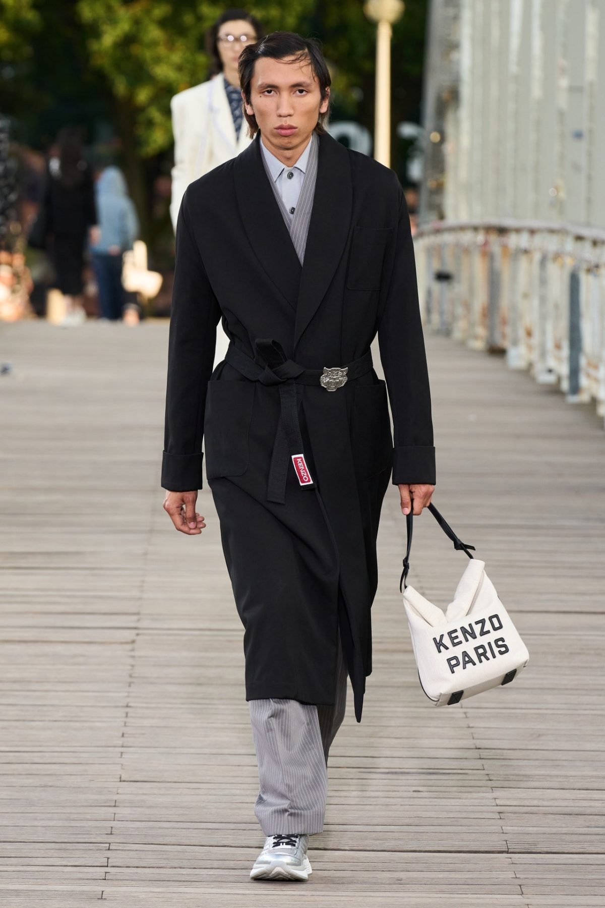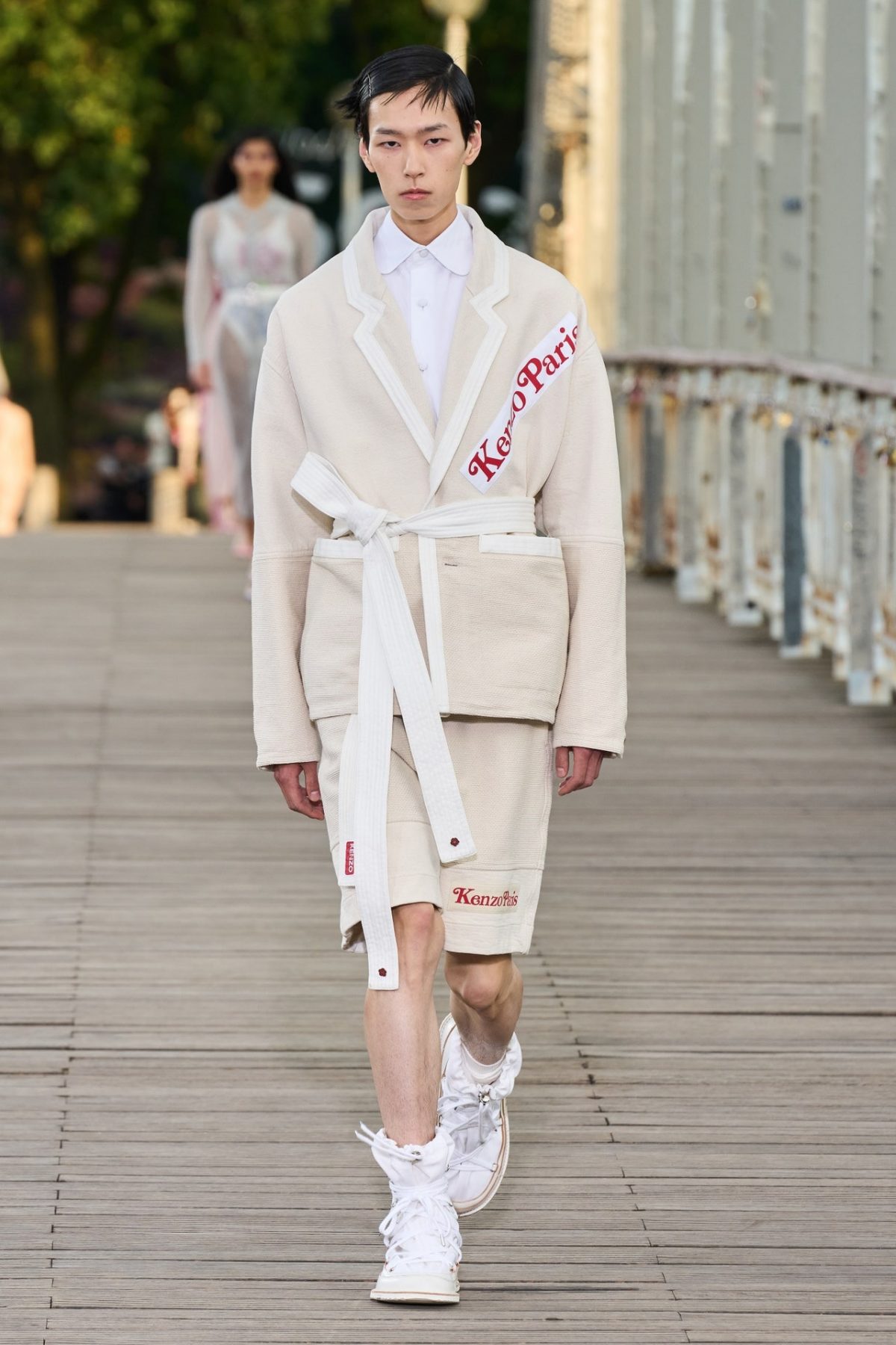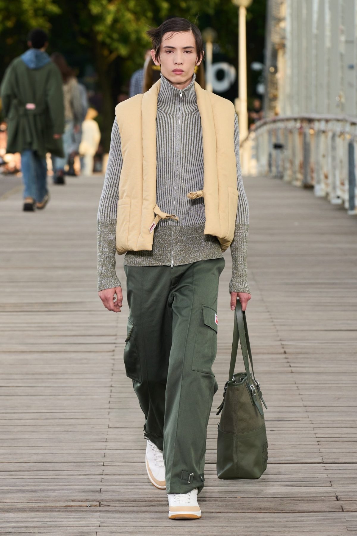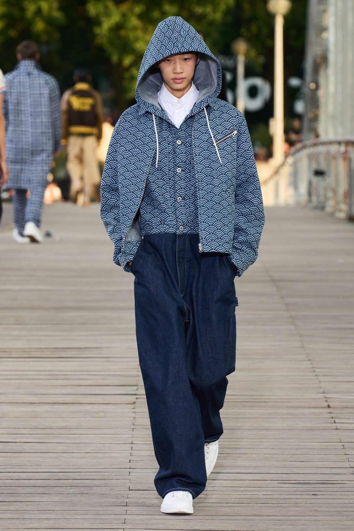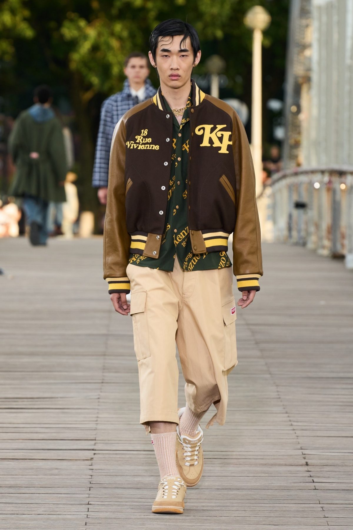 未看設計之前,必須說說這場騷的一些「先兆」—— 就在開騷前兩天,Kenzo 宣佈任命 K-pop 男團 Seventeen 成員 Vernon 為首位全球品牌大使。Nigo 這動作的背後含義很明確,就是建立與時並進的品牌概念。而當我們看向現場時,亦能感受到一種「往前走」的氛圍——從新鮮面孔的名人嘉賓到時裝騷所在的巴黎塞納河上的德比利行人橋。當然,熟悉的身影也有不少,Pharrell Williams 換上全套 Kenzo 服裝,提著自己首個系列的手袋作品來到這裡以示對好友的支持。這一刻,時間彷彿回到2003年兩人一同創建 Billionaire Boys Club 的時候,如同一個循環。不同的是,時裝世界已經變得比那時更喧鬧,更多娛樂、也更多設計以外的東西。