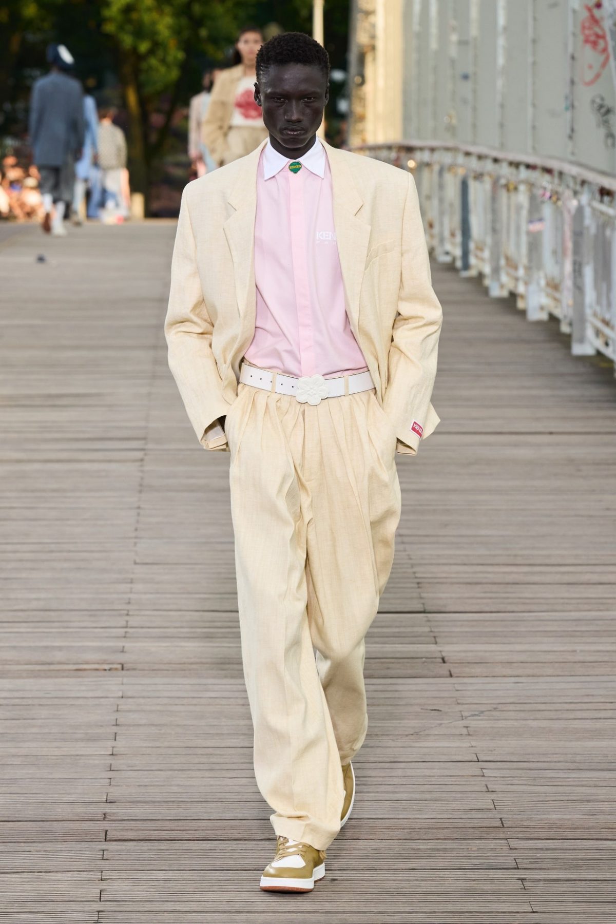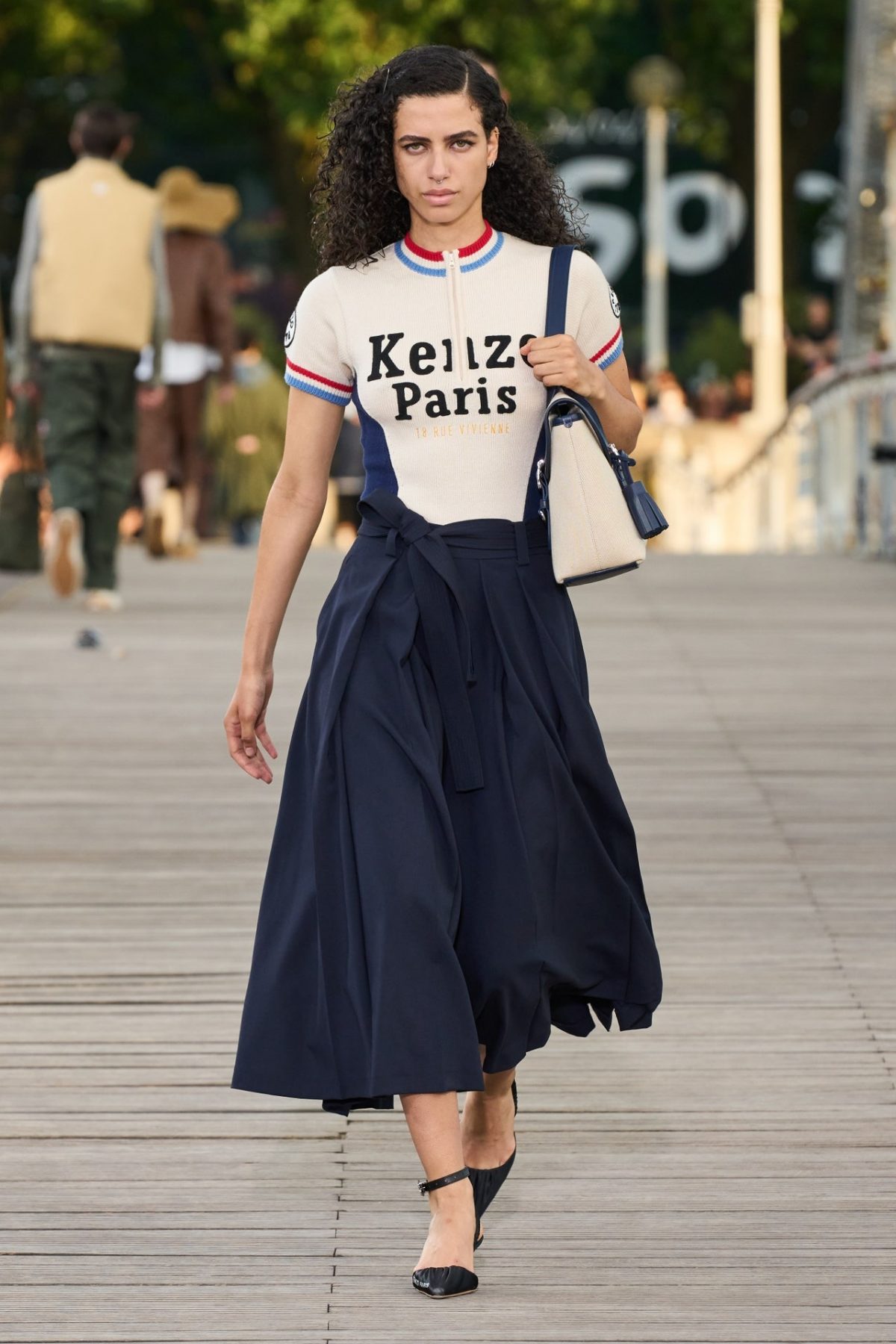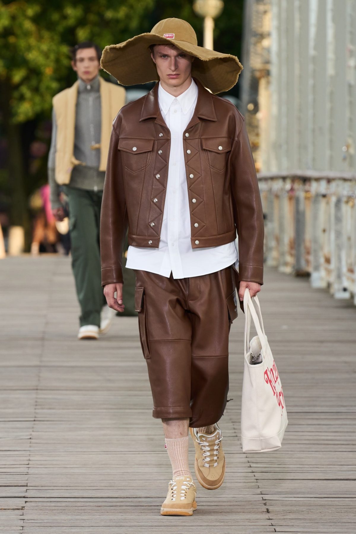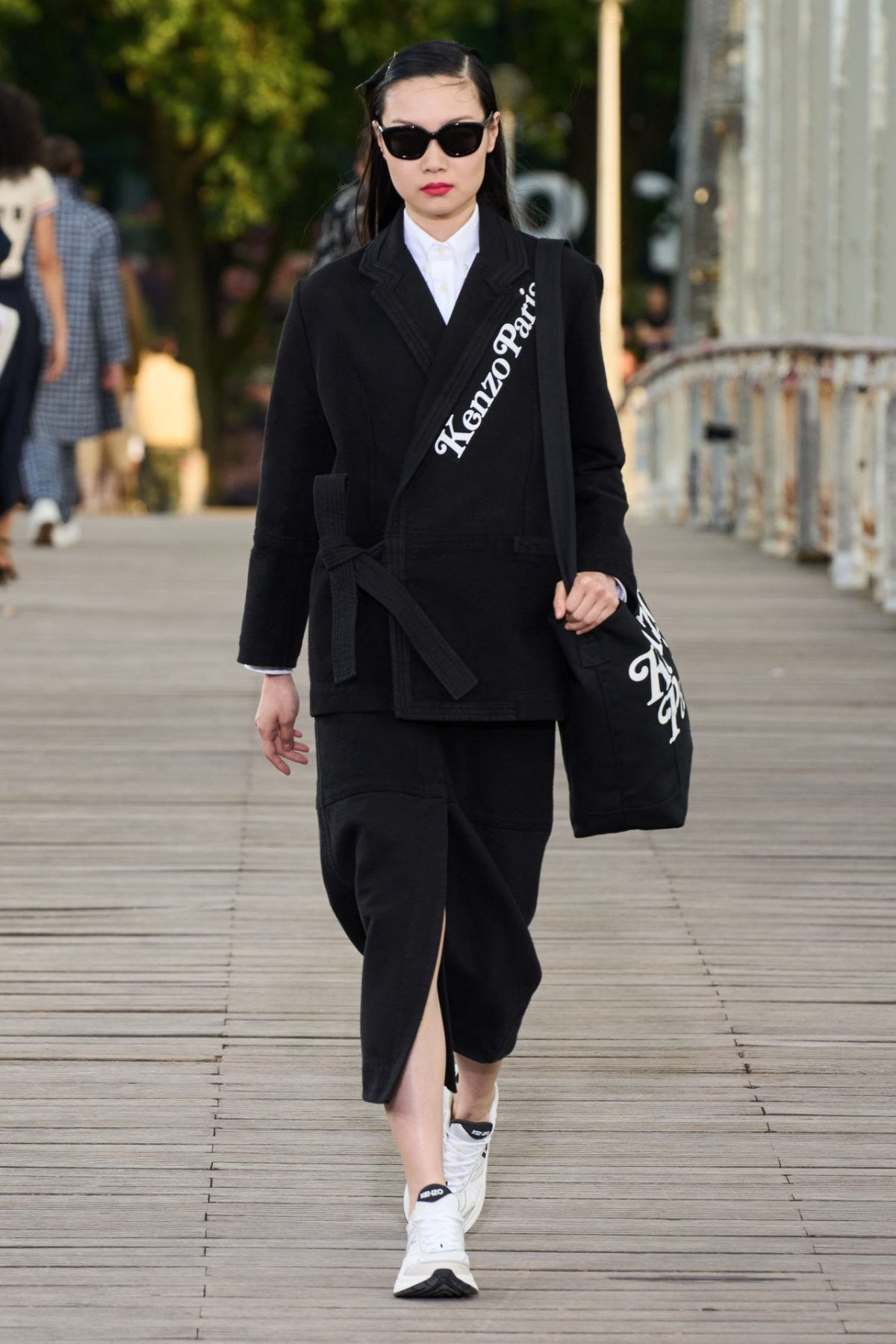 未看設計之前,必須說說這場騷的一些「先兆」—— 就在開騷前兩天,Kenzo 宣佈任命 K-pop 男團 Seventeen 成員 Vernon 為首位全球品牌大使。Nigo 這動作的背後含義很明確,就是建立與時並進的品牌概念。而當我們看向現場時,亦能感受到一種「往前走」的氛圍——從新鮮面孔的名人嘉賓到時裝騷所在的巴黎塞納河上的德比利行人橋。當然,熟悉的身影也有不少,Pharrell Williams 換上全套 Kenzo 服裝,提著自己首個系列的手袋作品來到這裡以示對好友的支持。這一刻,時間彷彿回到2003年兩人一同創建 Billionaire Boys Club 的時候,如同一個循環。不同的是,時裝世界已經變得比那時更喧鬧,更多娛樂、也更多設計以外的東西。