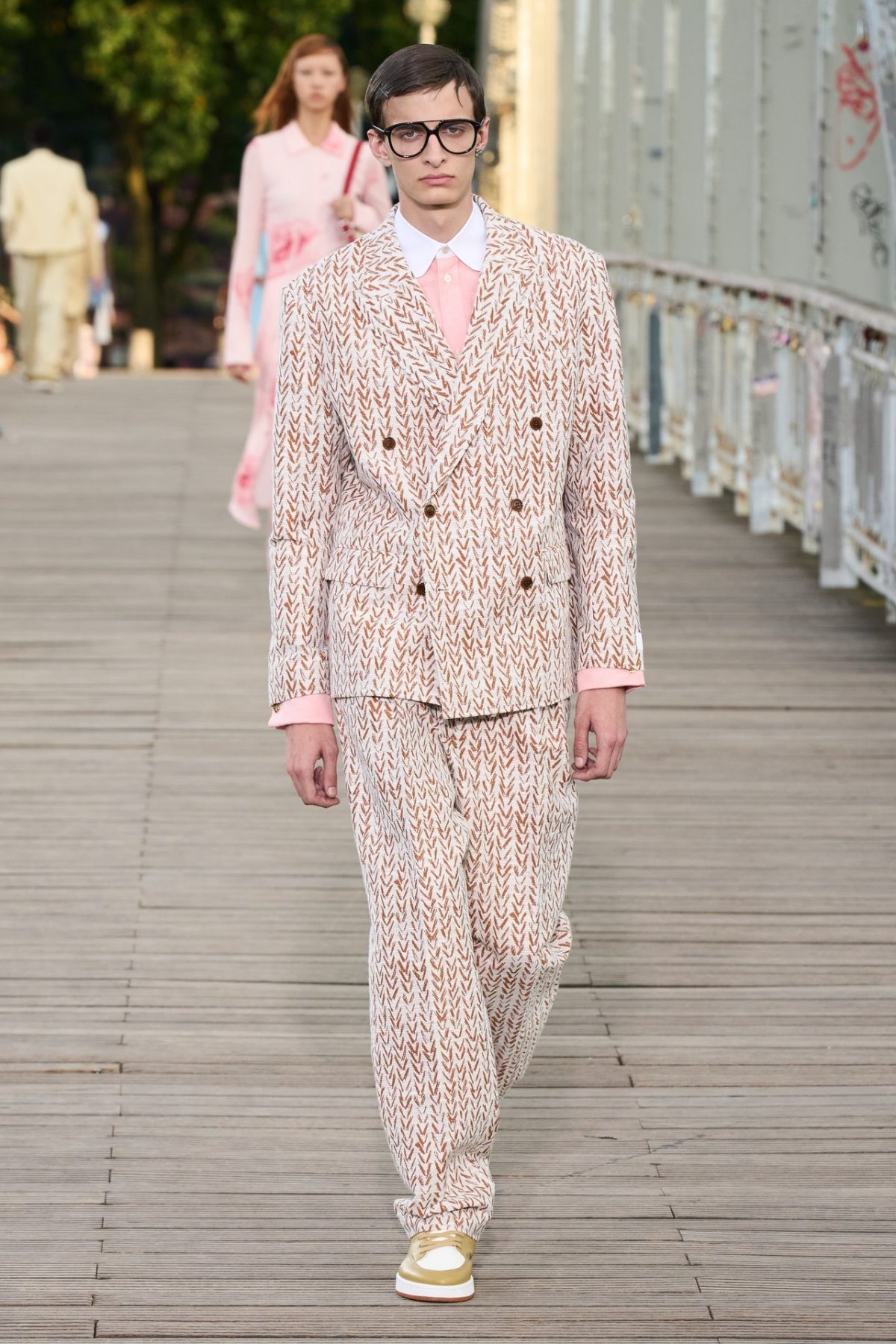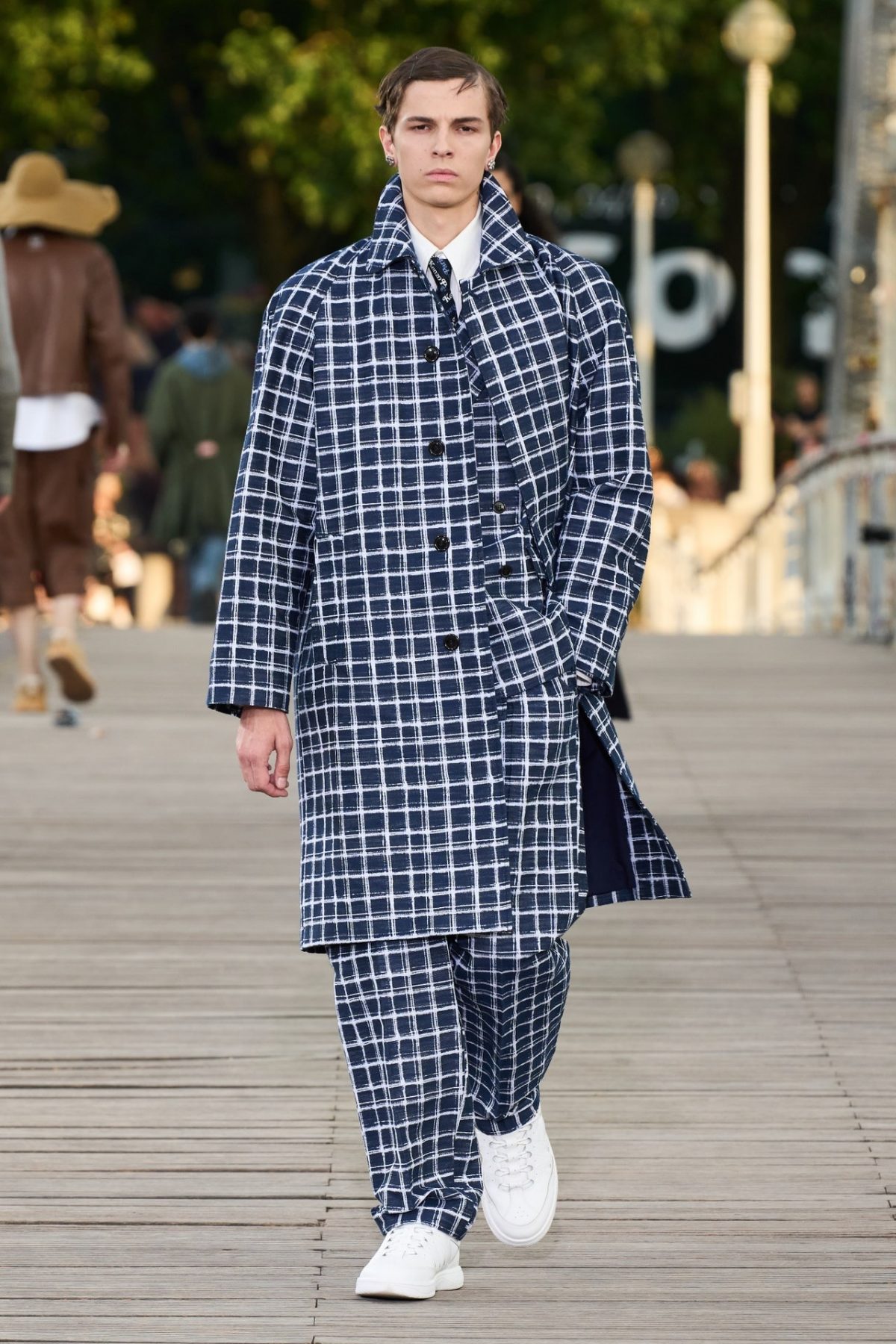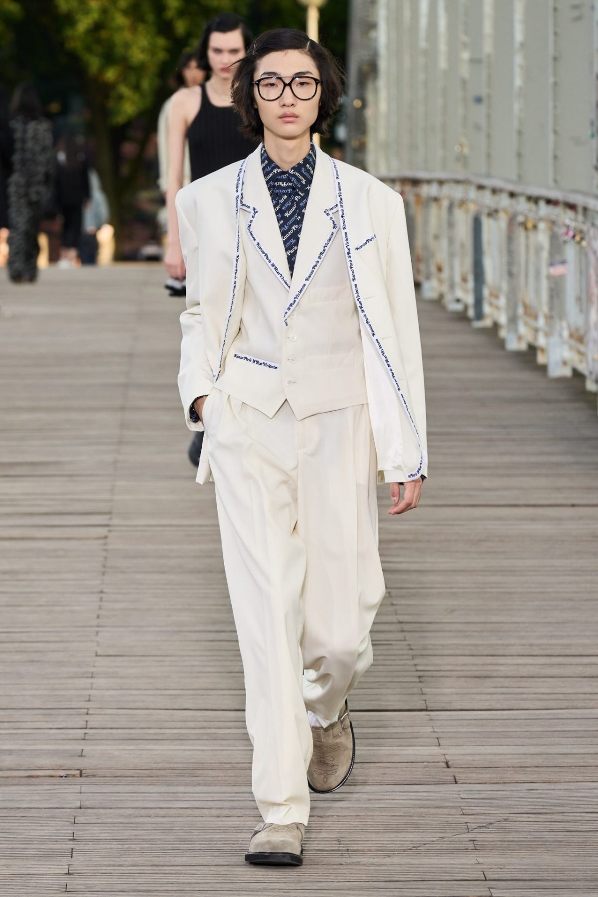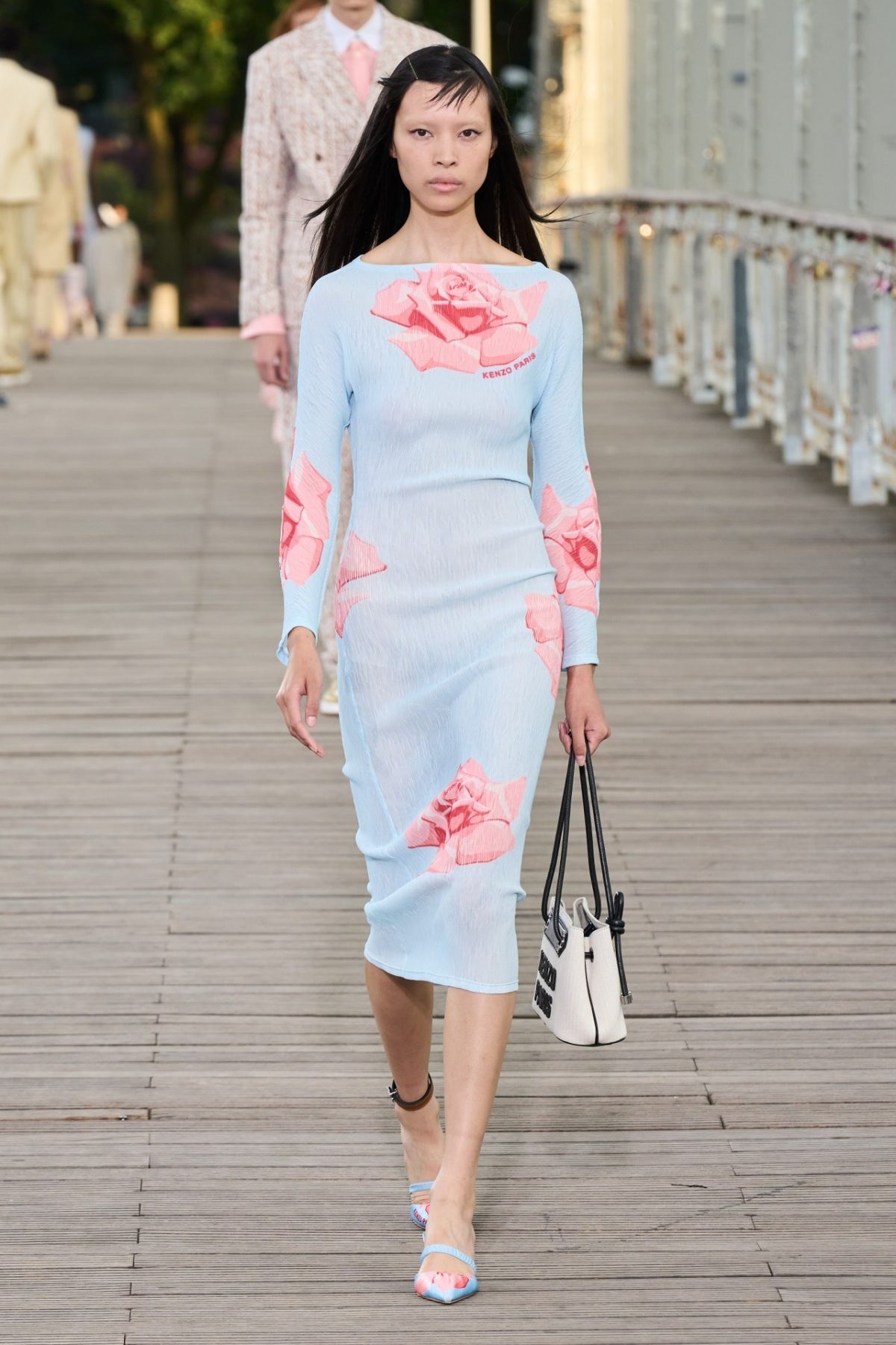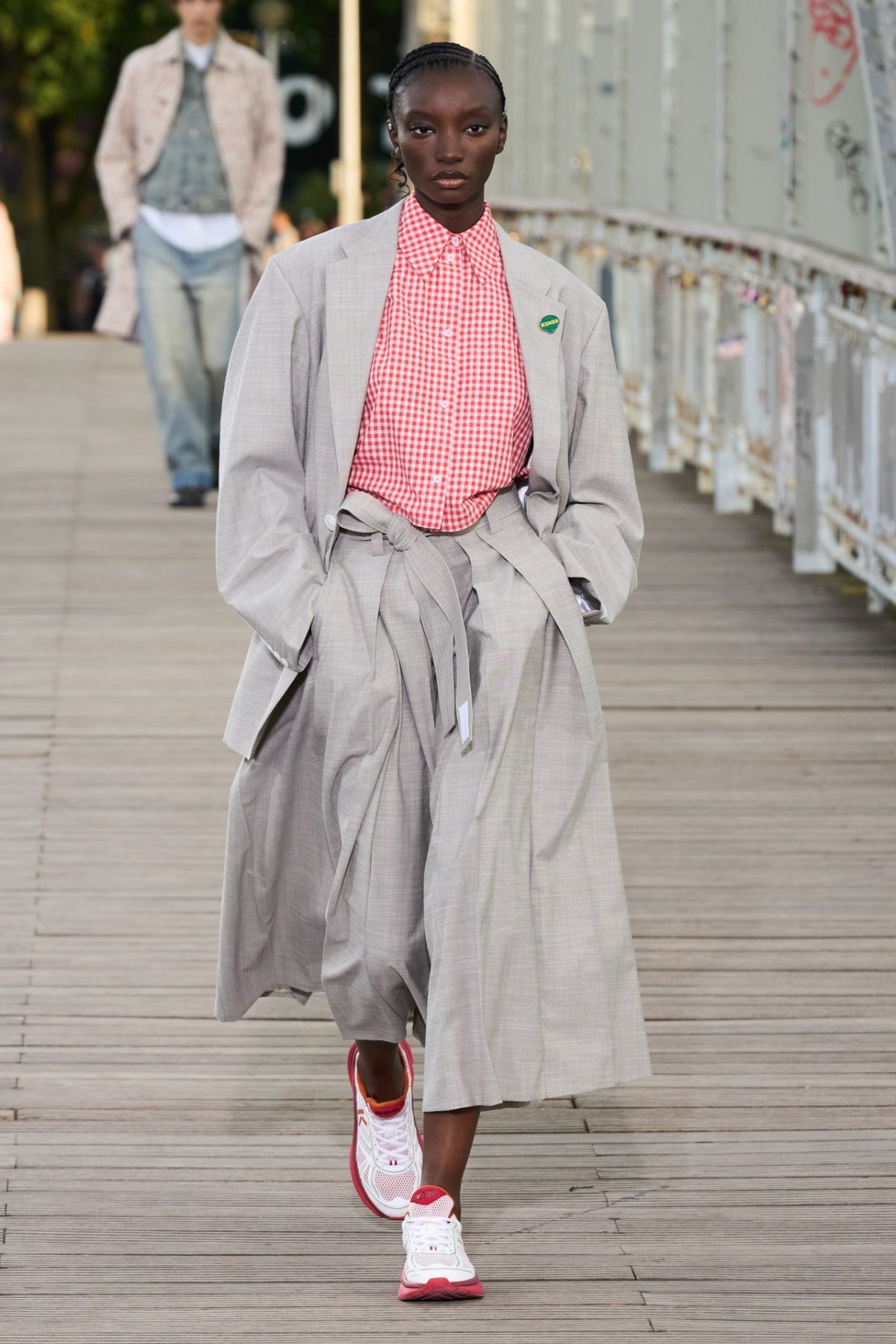 未看設計之前,必須說說這場騷的一些「先兆」—— 就在開騷前兩天,Kenzo 宣佈任命 K-pop 男團 Seventeen 成員 Vernon 為首位全球品牌大使。Nigo 這動作的背後含義很明確,就是建立與時並進的品牌概念。而當我們看向現場時,亦能感受到一種「往前走」的氛圍——從新鮮面孔的名人嘉賓到時裝騷所在的巴黎塞納河上的德比利行人橋。當然,熟悉的身影也有不少,Pharrell Williams 換上全套 Kenzo 服裝,提著自己首個系列的手袋作品來到這裡以示對好友的支持。這一刻,時間彷彿回到2003年兩人一同創建 Billionaire Boys Club 的時候,如同一個循環。不同的是,時裝世界已經變得比那時更喧鬧,更多娛樂、也更多設計以外的東西。