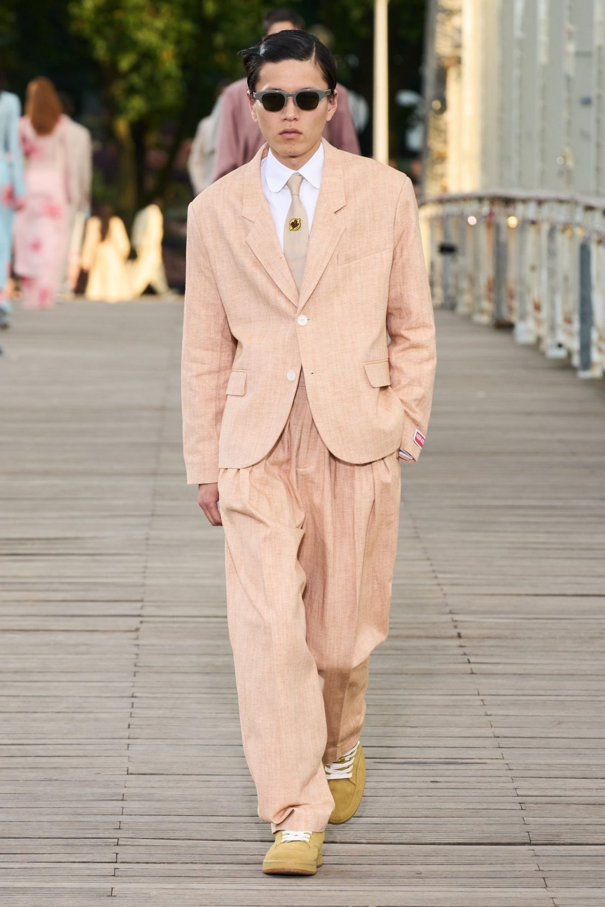 但 Nigo 還是盡其本分,本季深入去研究 Kenzo 的檔案,更對於品牌創始人高田賢三的職業生涯充滿興趣,以此表達自己對於流行文化的觀點。今次他著眼在日本70、80年代中期達到巔峰的「City Pop」城市流行音樂,這種音樂風格在當下復興的現象引起他的關注。他並不著力於音樂風格本身,反而因這個時期正值創始人事業發展的關鍵時刻,Nigo 輕易地找到兩者之間的聯繫,變成今個系列的落腳點。他恰好地糅合了在服裝上的兩種靈感和影響,一種是日式的傳統風格,另一種是受西式剪裁影響的街頭潮流風格。