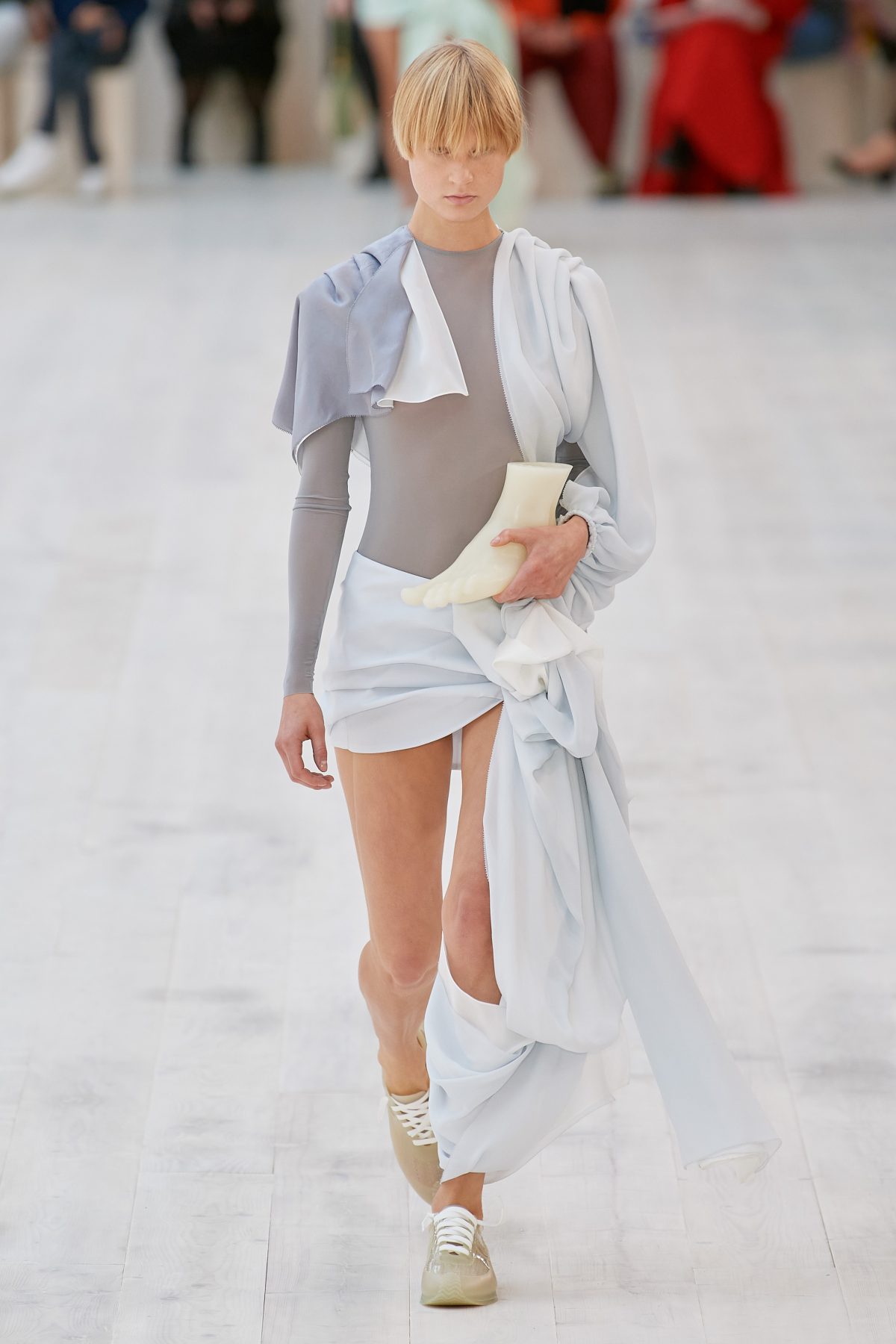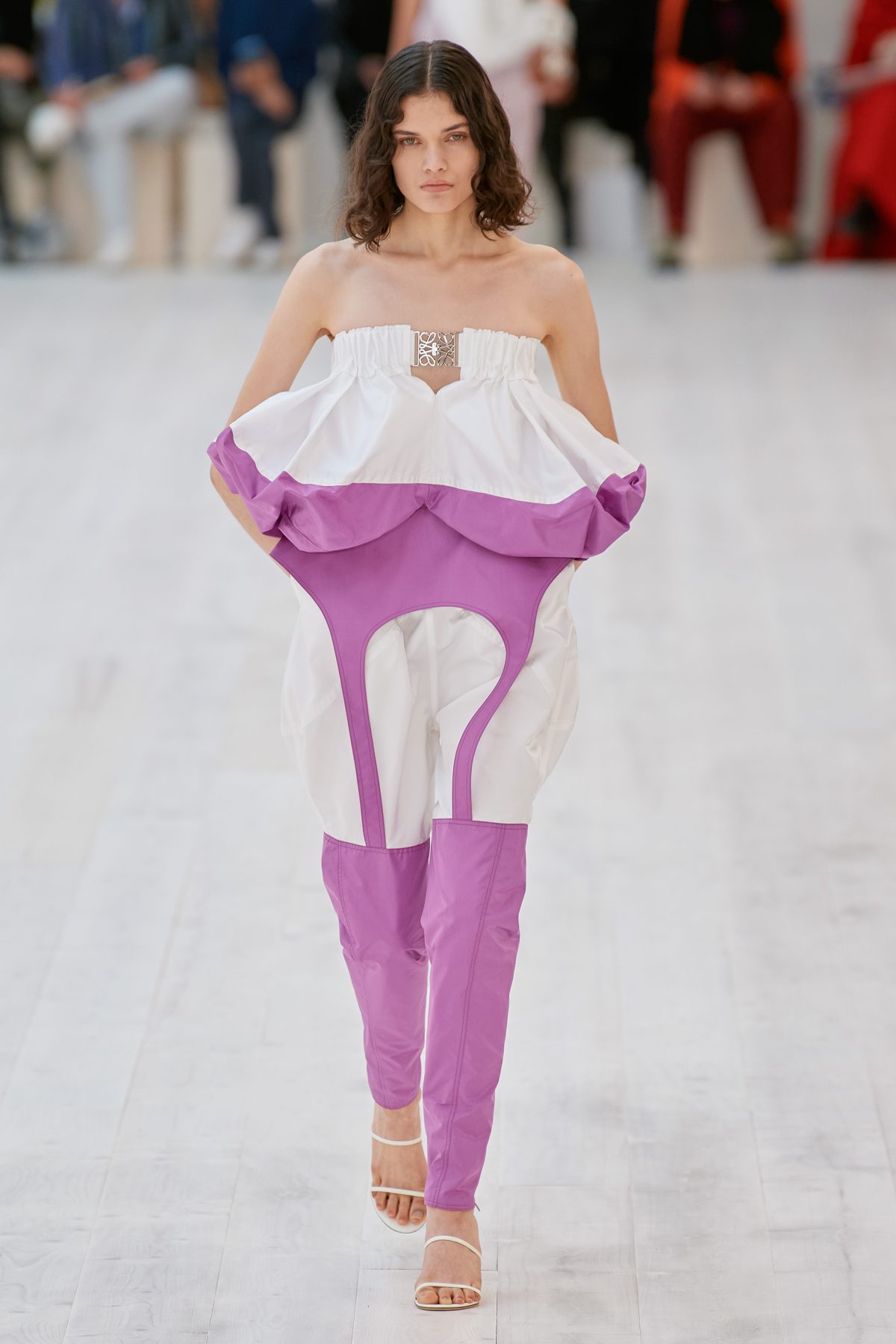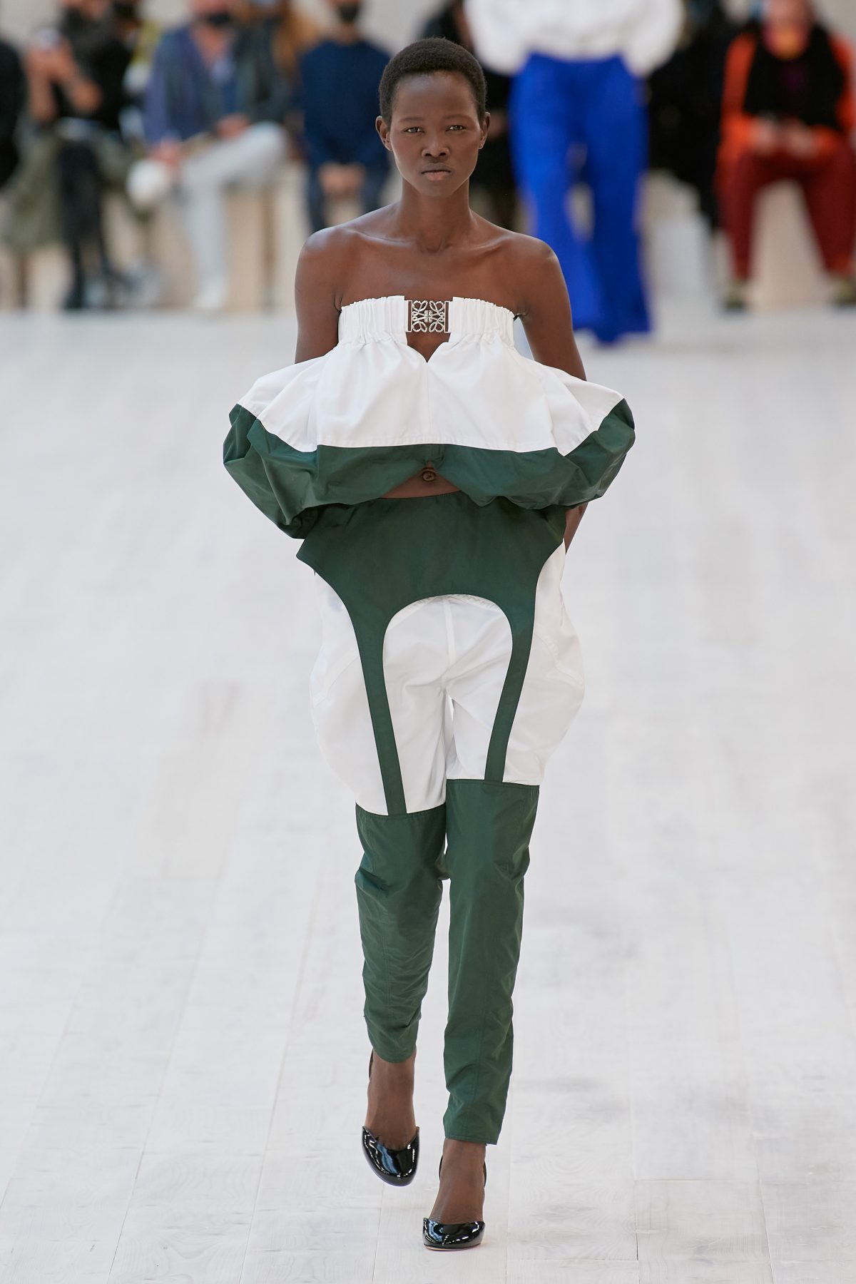 一向喜歡為設計注入幽默因子的 Loewe 創意總監 Jonathan Anderson,今次回歸實體展再次展現其創意無疆,他還表示:「我們經歷了大流行,現在我們必須以不同的方式擺脫它。這是一個實驗的時刻,如果你打算在這段時間之後重新開始,你需要留出一點時間來產生一種新的審美。 重新開始。」