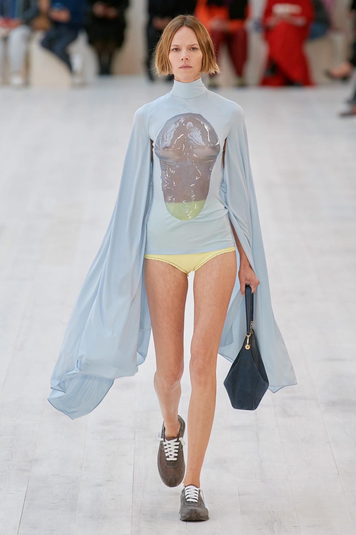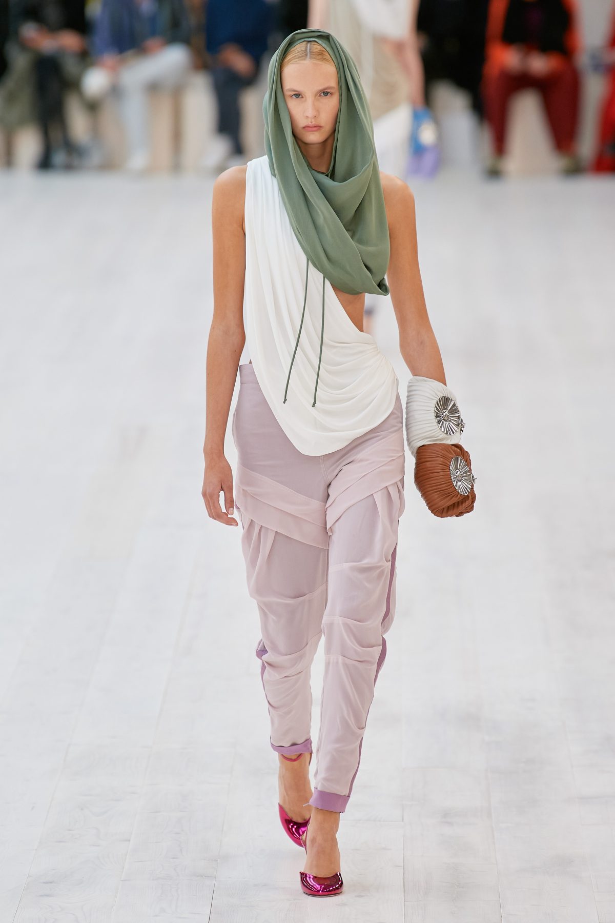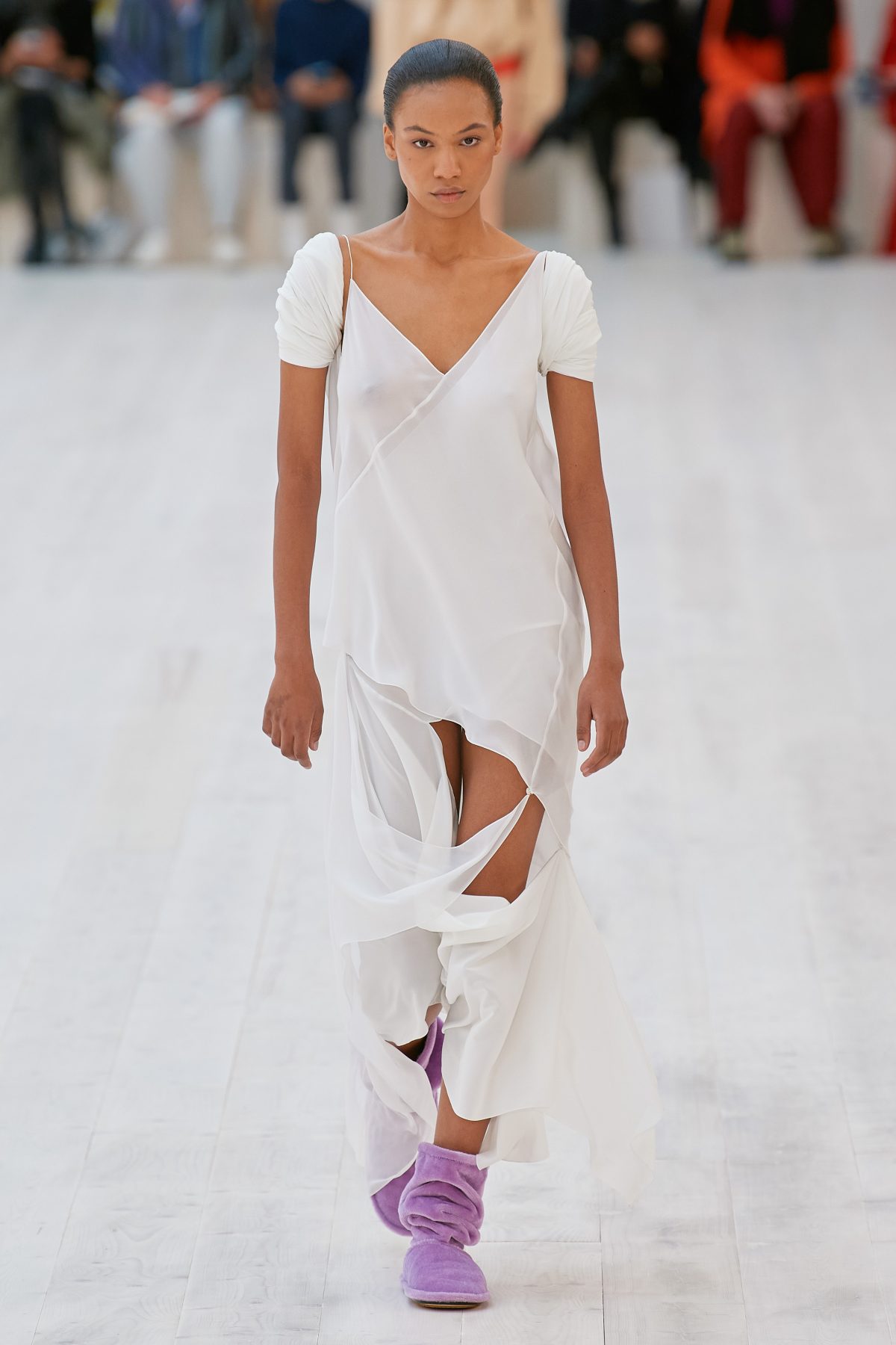 一向喜歡為設計注入幽默因子的 Loewe 創意總監 Jonathan Anderson,今次回歸實體展再次展現其創意無疆,他還表示:「我們經歷了大流行,現在我們必須以不同的方式擺脫它。這是一個實驗的時刻,如果你打算在這段時間之後重新開始,你需要留出一點時間來產生一種新的審美。 重新開始。」