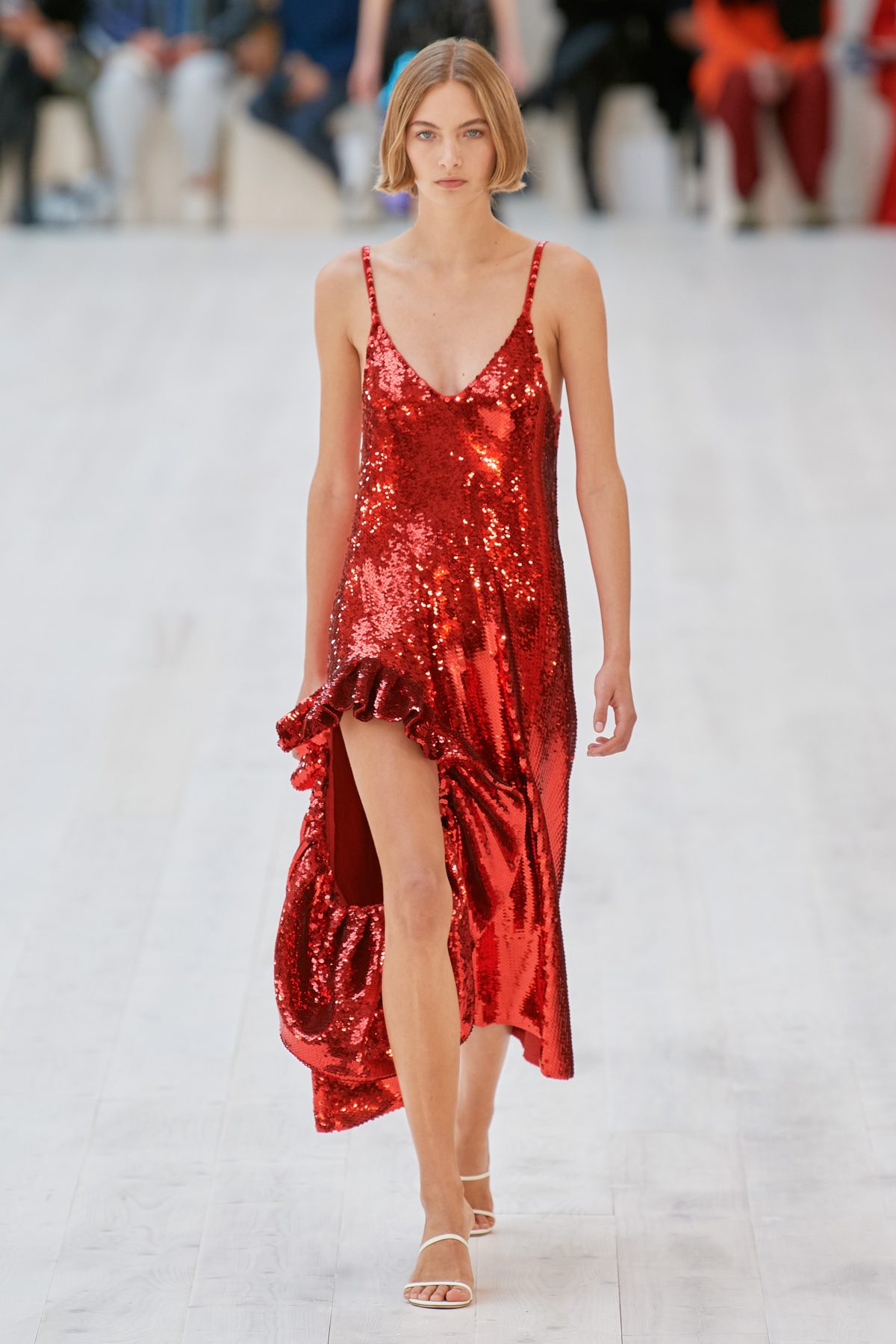 時裝展今次選址法國騎兵隊訓練的場地(La Garde Republicaine),模特兒們從地底走出來,穿上雕塑般的裙裝、珠片荷葉邊設計、樹脂透明胸甲、扭曲的牛仔布外套及半截裙等,展示充滿實驗性的設計。