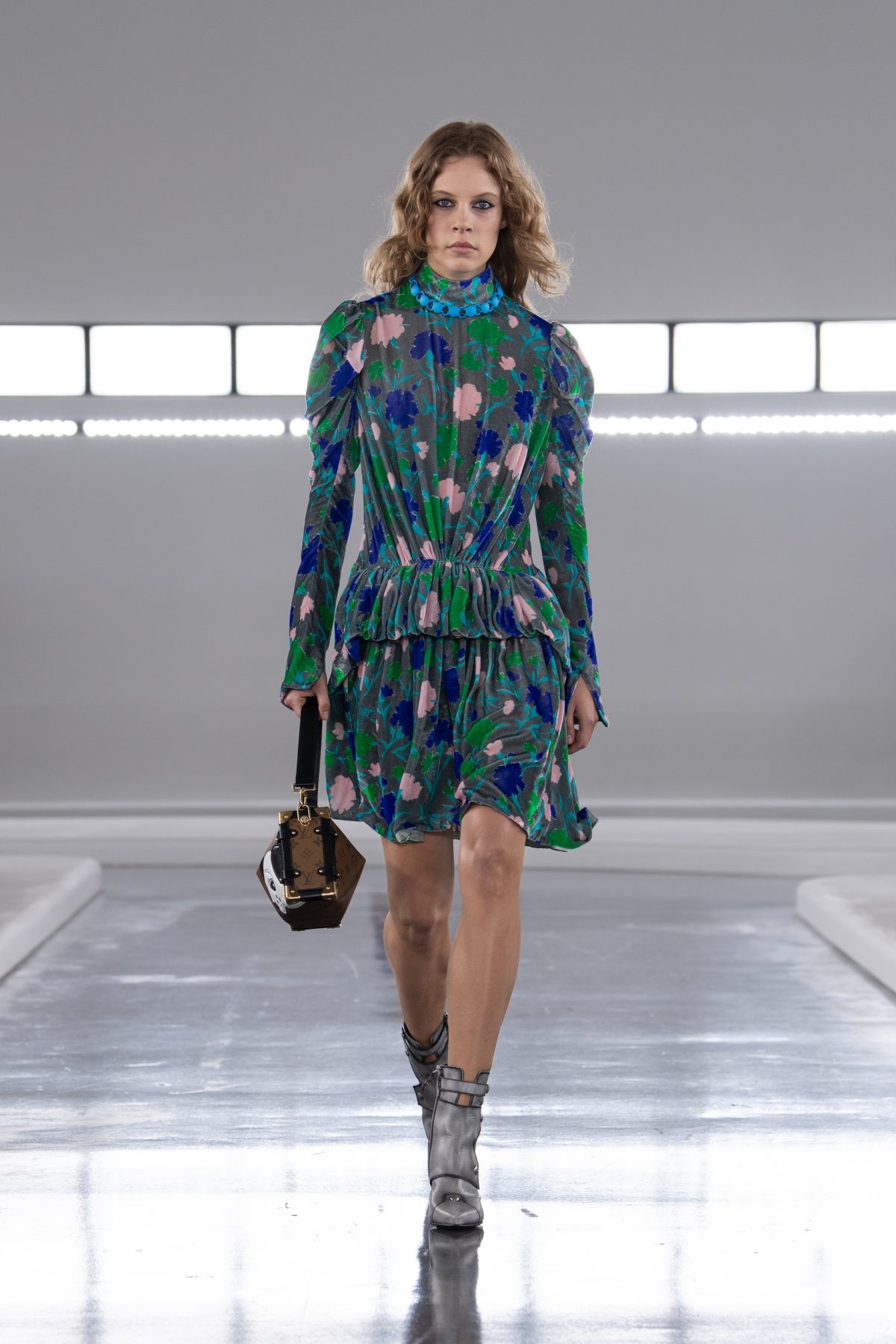 Nicolas Ghesquière在本季系列中將長與短的線條分庭抗禮,時而細膩交織,將精緻細膩與大膽創意共冶一爐。透過充滿反差感的繽紛印花美妙結合,古典主義亦歷經蛻變,為服飾增添靈動氣息。