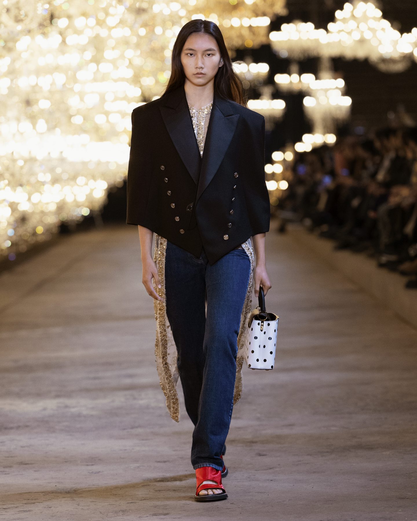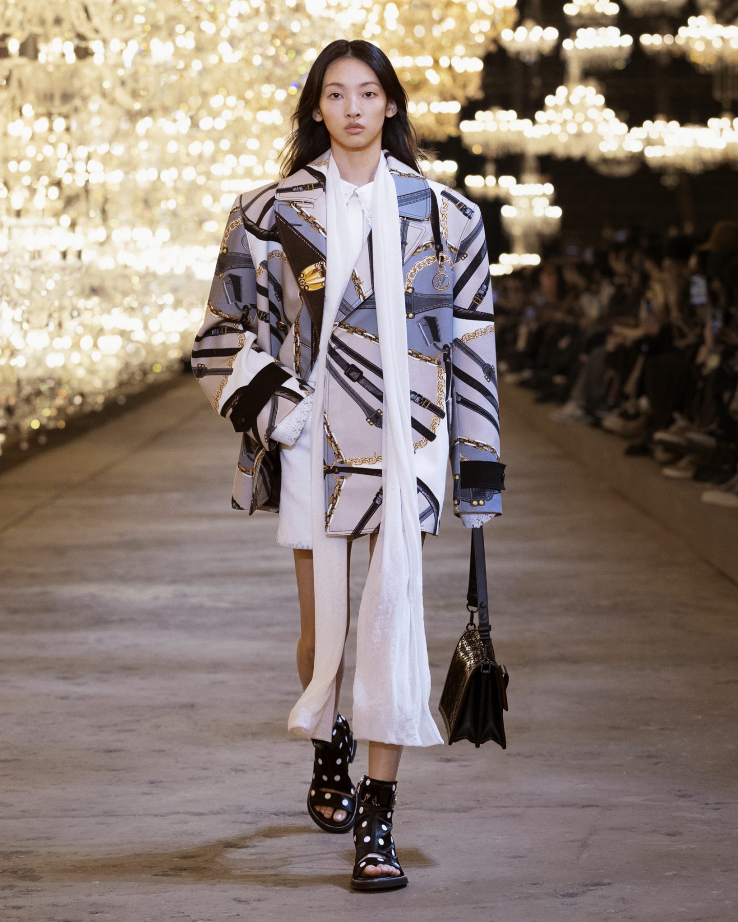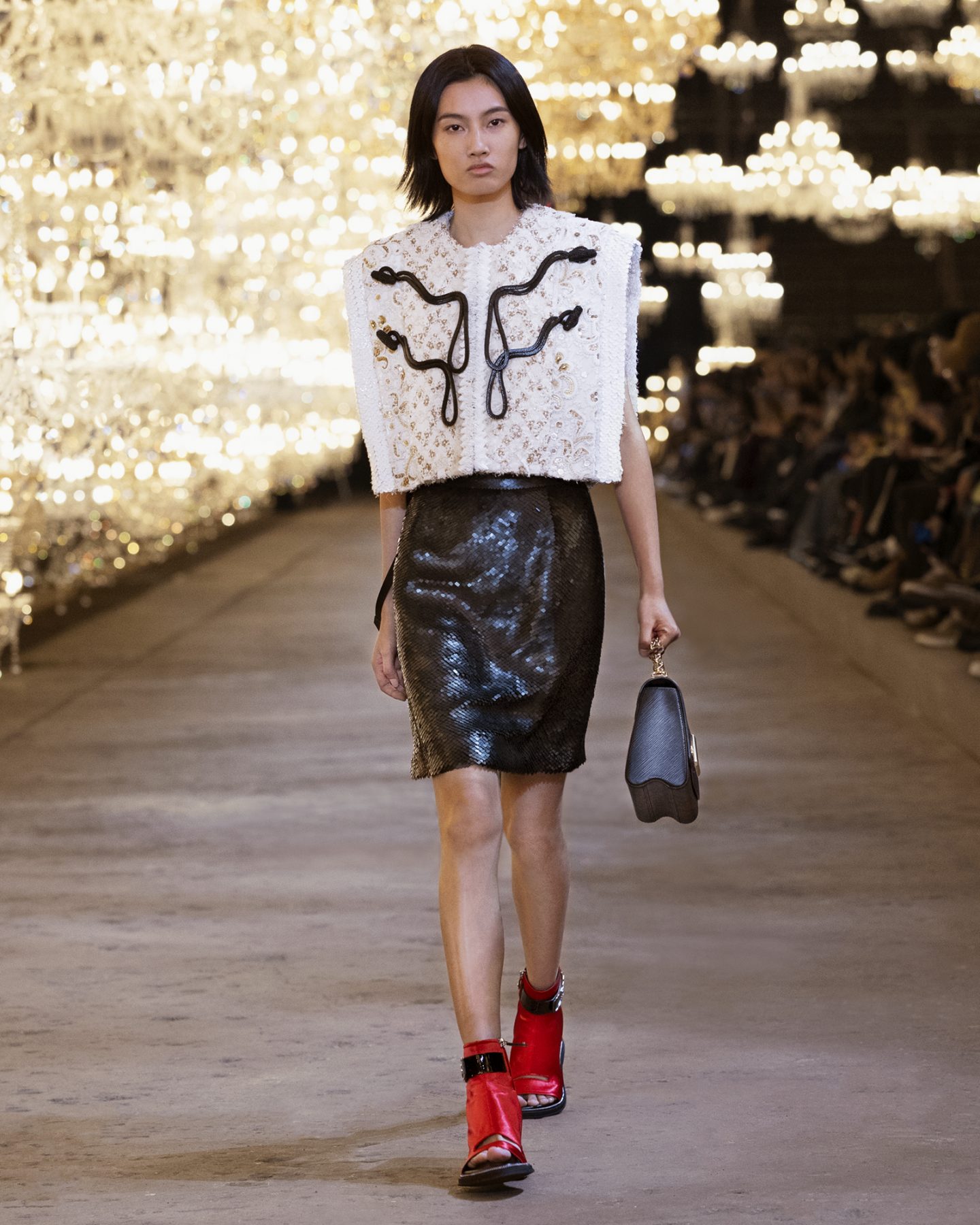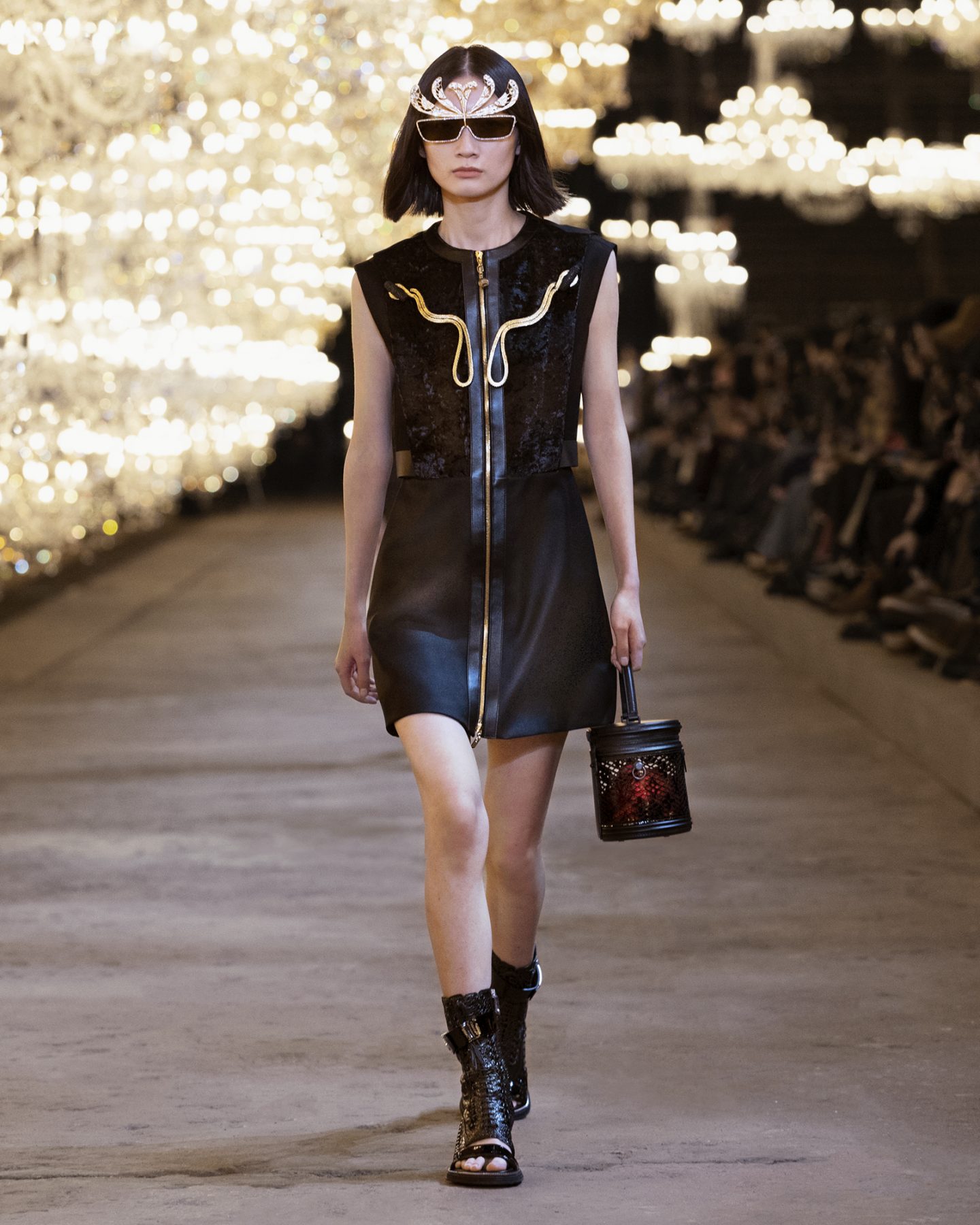 Nicolas Ghesquière 是第一次在上海舉行時裝展,他在開騷前以語音向在場嘉賓問好,然後一眾模特兒從華麗的展場中出場,最後由中國超模雎曉雯壓軸走秀,場面特別奢華且有氣派。Nicolas Ghesquière 特意設計全新 19 個造型,將原來不同年代的時尚元素延續一起,如 20 年代連身裙、80 年代標誌性圓點襯衫,以及 90 年代輕便牛仔褲,加上吸血鬼的披肩、燕尾服設計特色,不只是純粹的「搬衣過衣」。
