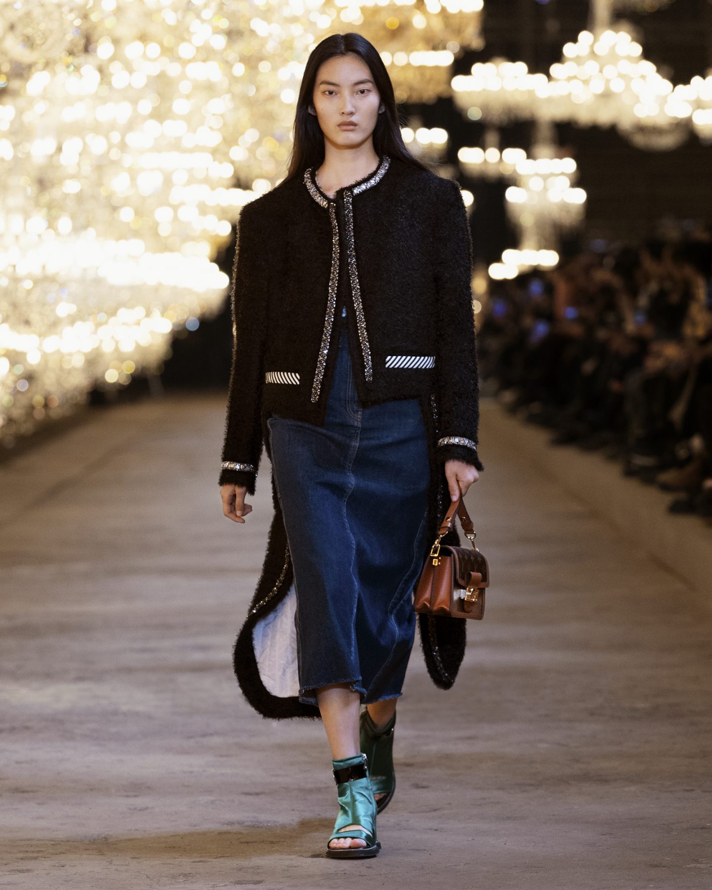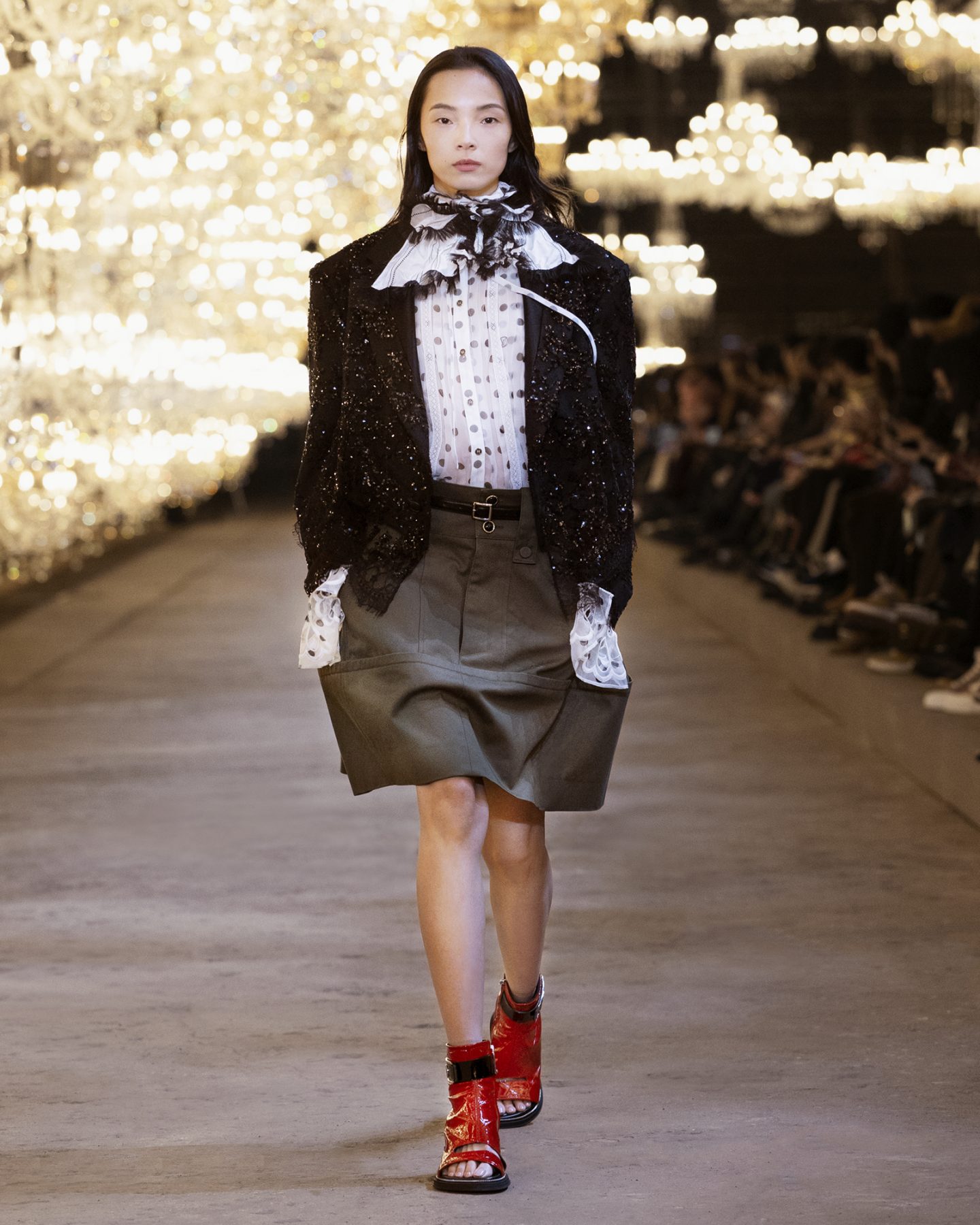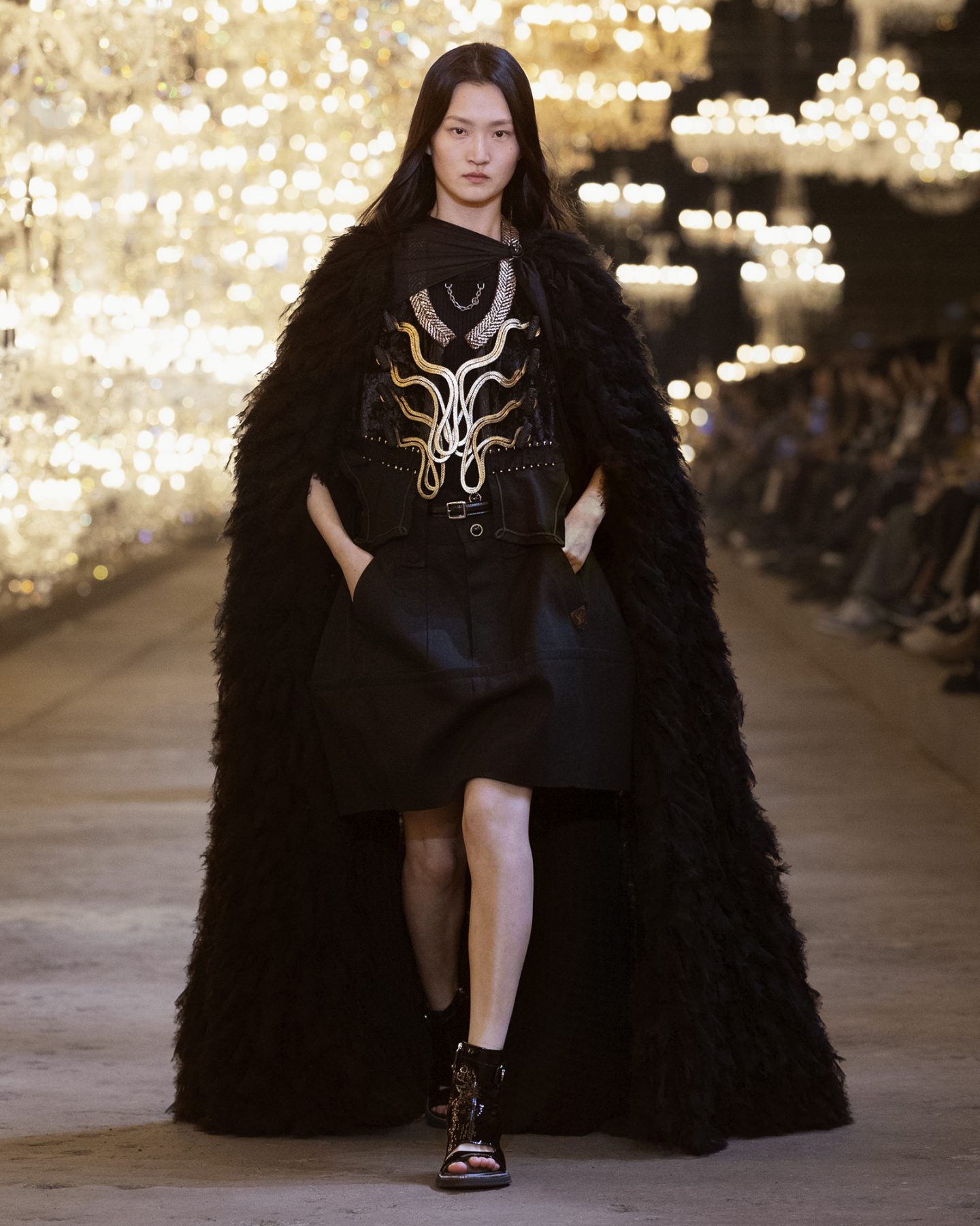 Nicolas Ghesquière 是第一次在上海舉行時裝展,他在開騷前以語音向在場嘉賓問好,然後一眾模特兒從華麗的展場中出場,最後由中國超模雎曉雯壓軸走秀,場面特別奢華且有氣派。Nicolas Ghesquière 特意設計全新 19 個造型,將原來不同年代的時尚元素延續一起,如 20 年代連身裙、80 年代標誌性圓點襯衫,以及 90 年代輕便牛仔褲,加上吸血鬼的披肩、燕尾服設計特色,不只是純粹的「搬衣過衣」。