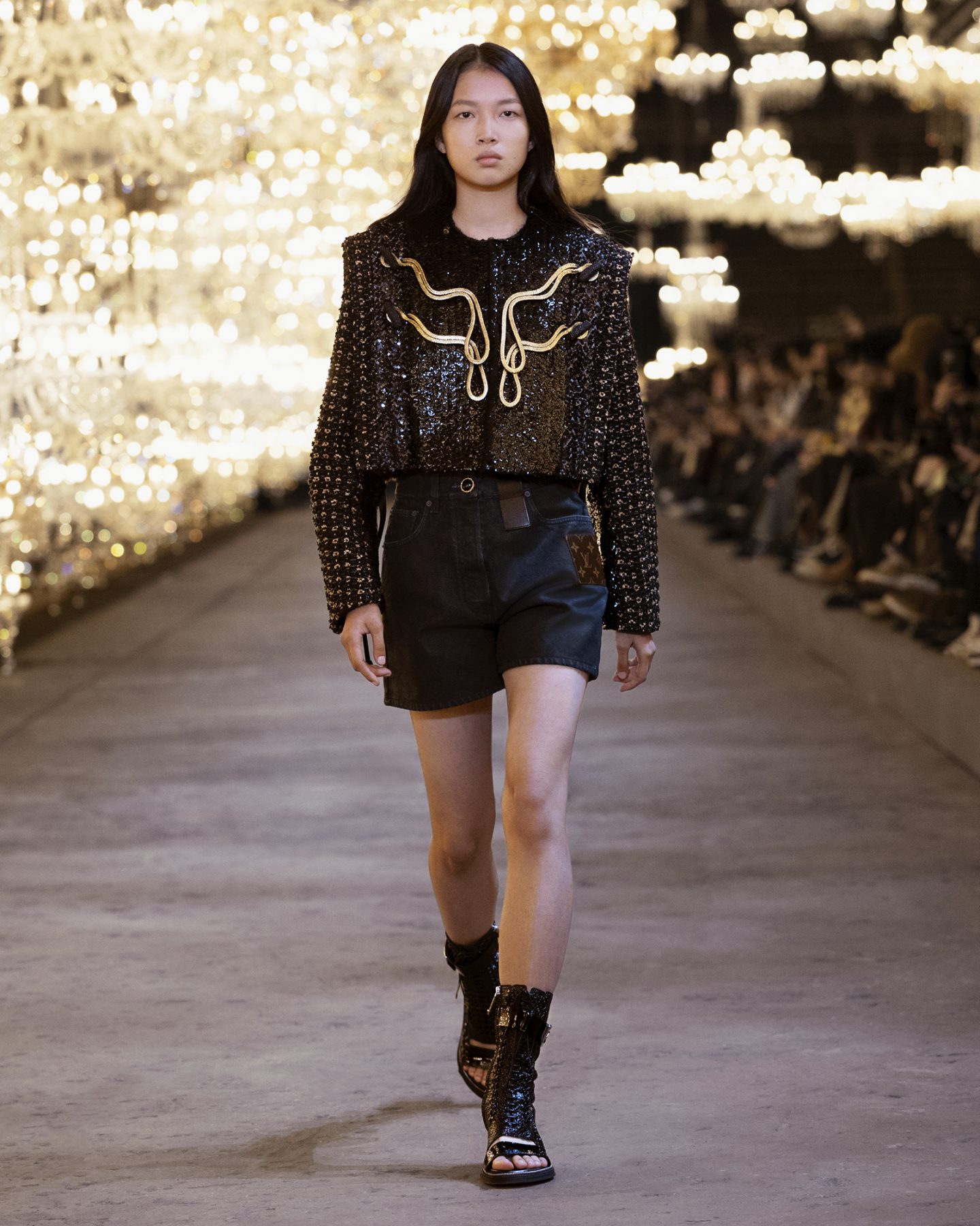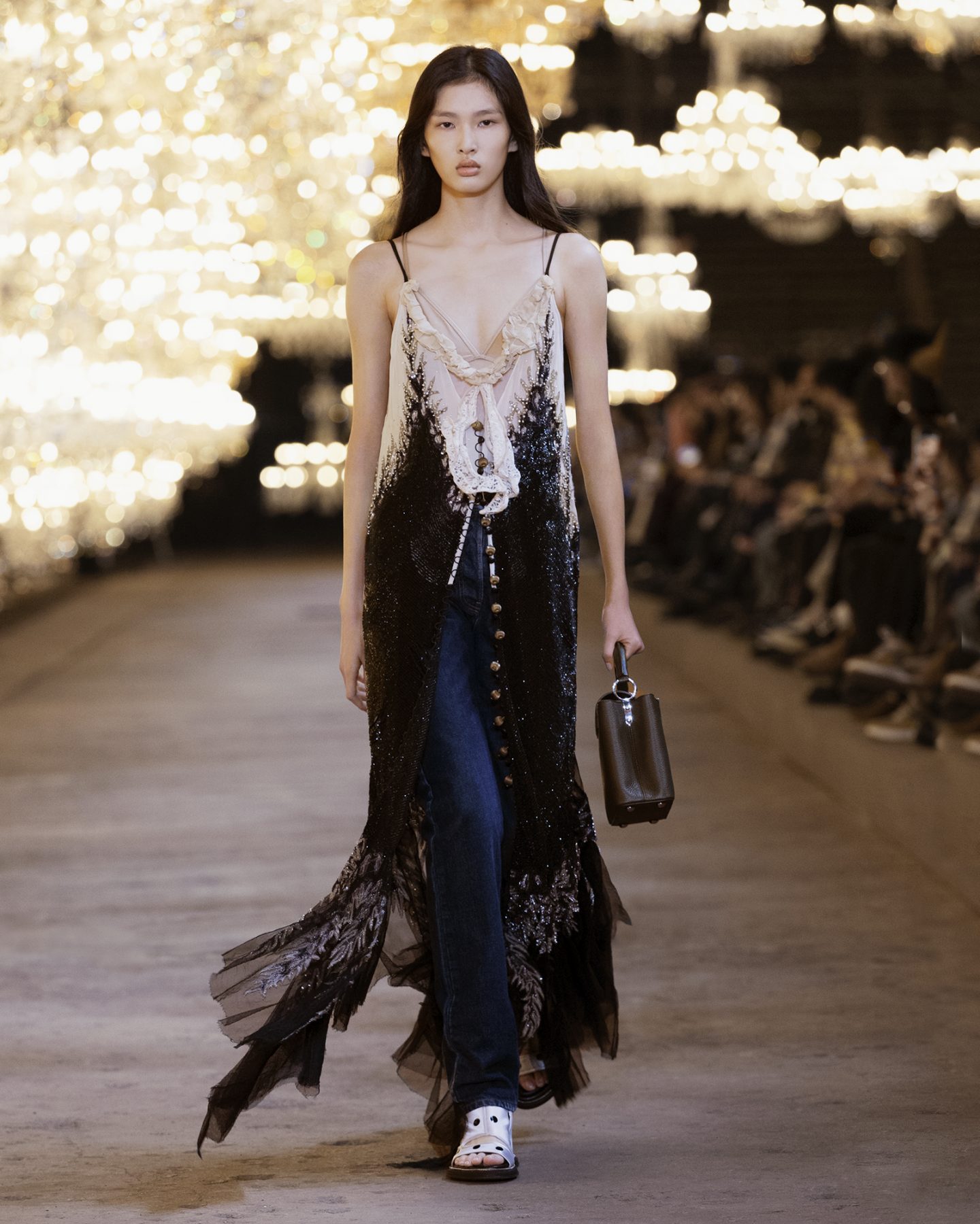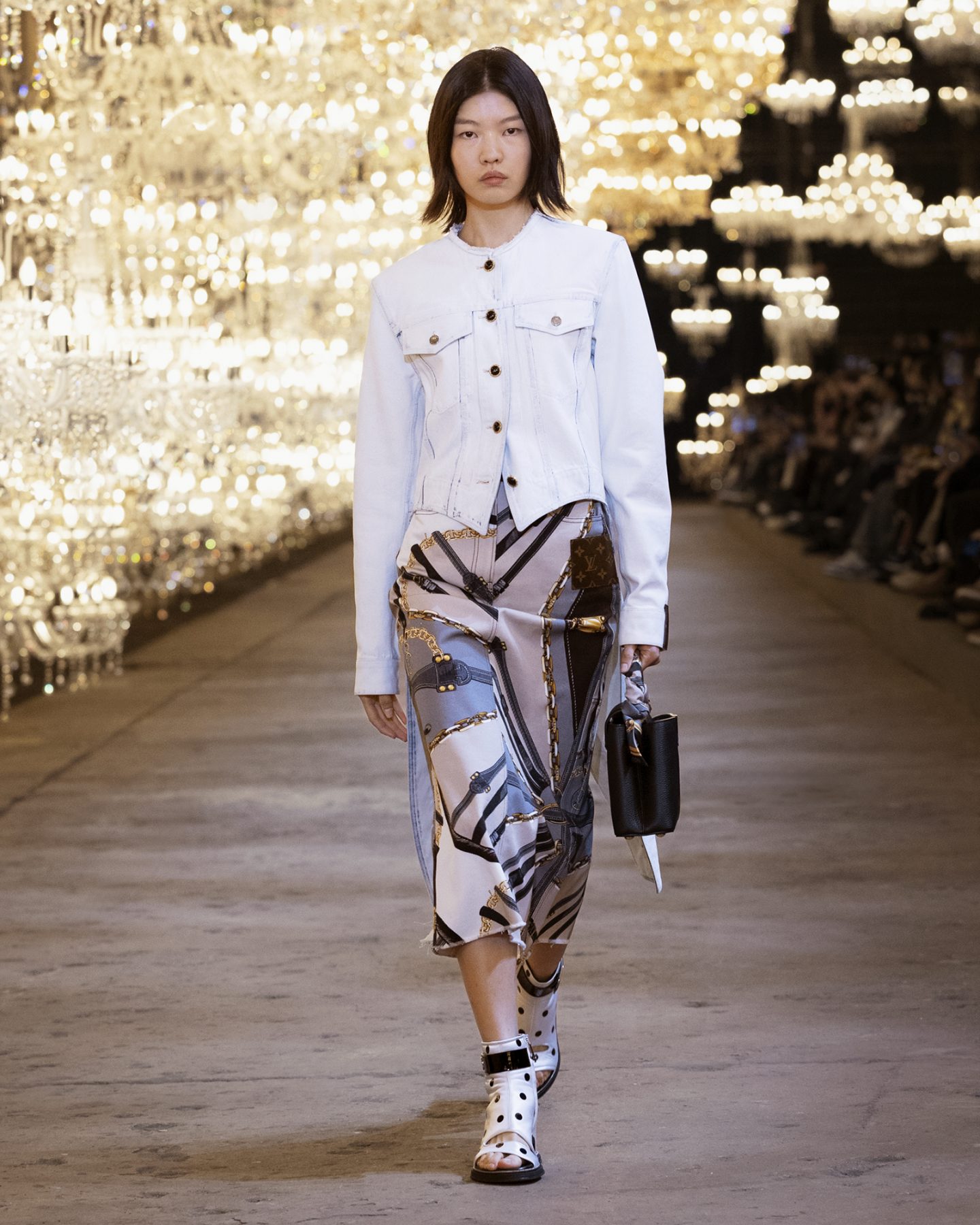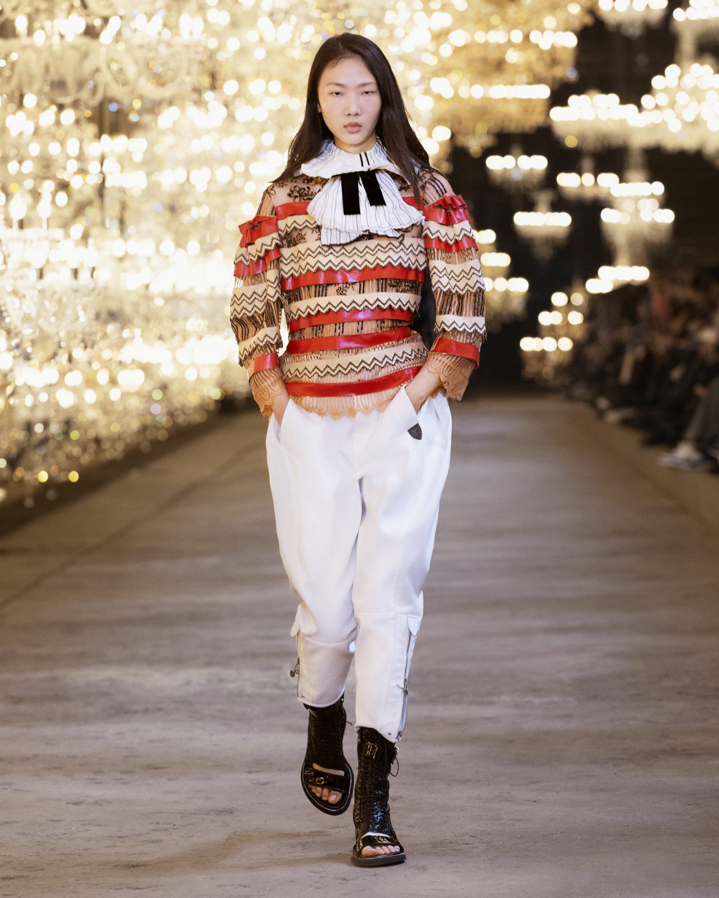 Nicolas Ghesquière 是第一次在上海舉行時裝展,他在開騷前以語音向在場嘉賓問好,然後一眾模特兒從華麗的展場中出場,最後由中國超模雎曉雯壓軸走秀,場面特別奢華且有氣派。Nicolas Ghesquière 特意設計全新 19 個造型,將原來不同年代的時尚元素延續一起,如 20 年代連身裙、80 年代標誌性圓點襯衫,以及 90 年代輕便牛仔褲,加上吸血鬼的披肩、燕尾服設計特色,不只是純粹的「搬衣過衣」。