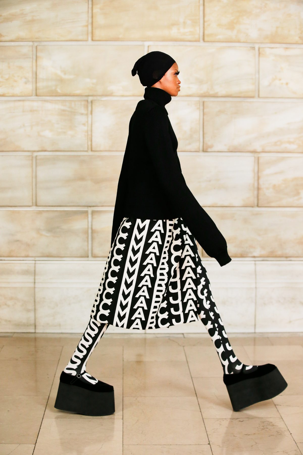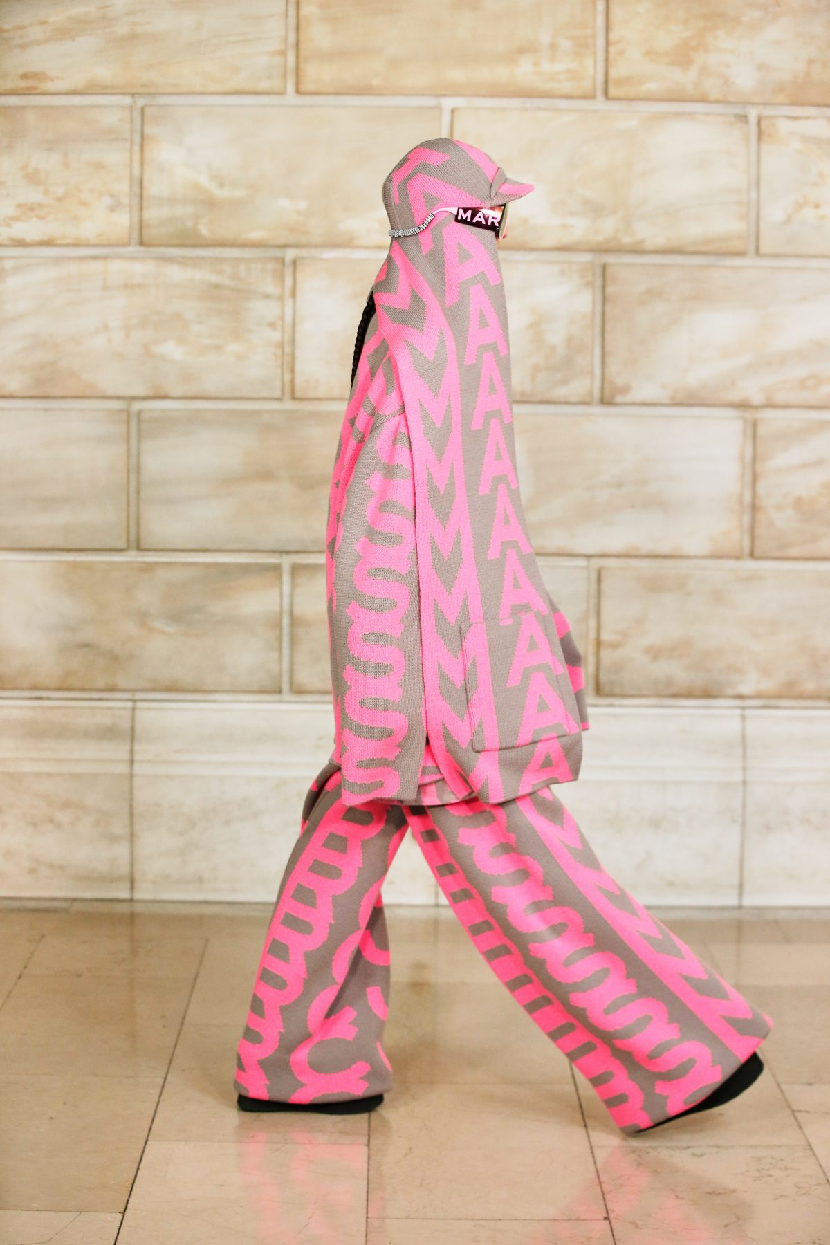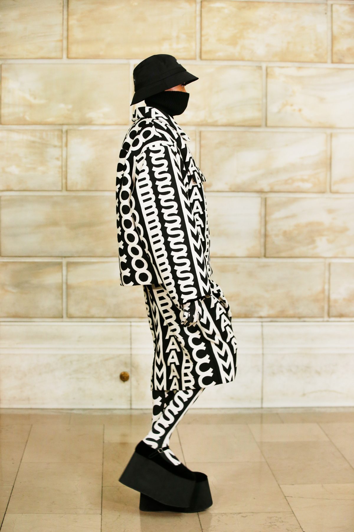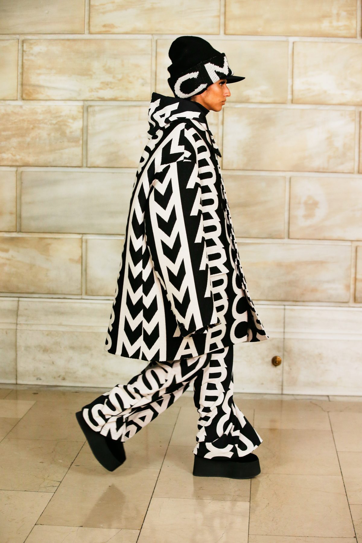 除此之外,戲劇性的比列、日常款式的超長冷衫、世人思念旅行的滑雪褲都不忘注入 Marc Jacobs 風格的街頭姿態,曾經 high & low 的標誌式魅力也逐一在每個模特兒的 Grace Jones 頭巾和超厚Mary Janes 鞋履造型中表露無遺。