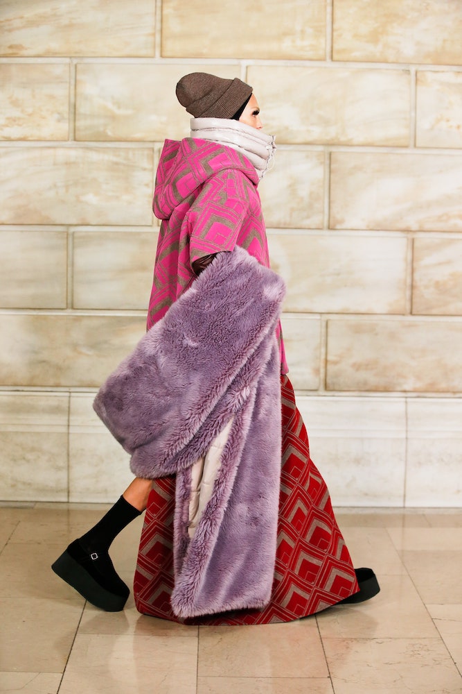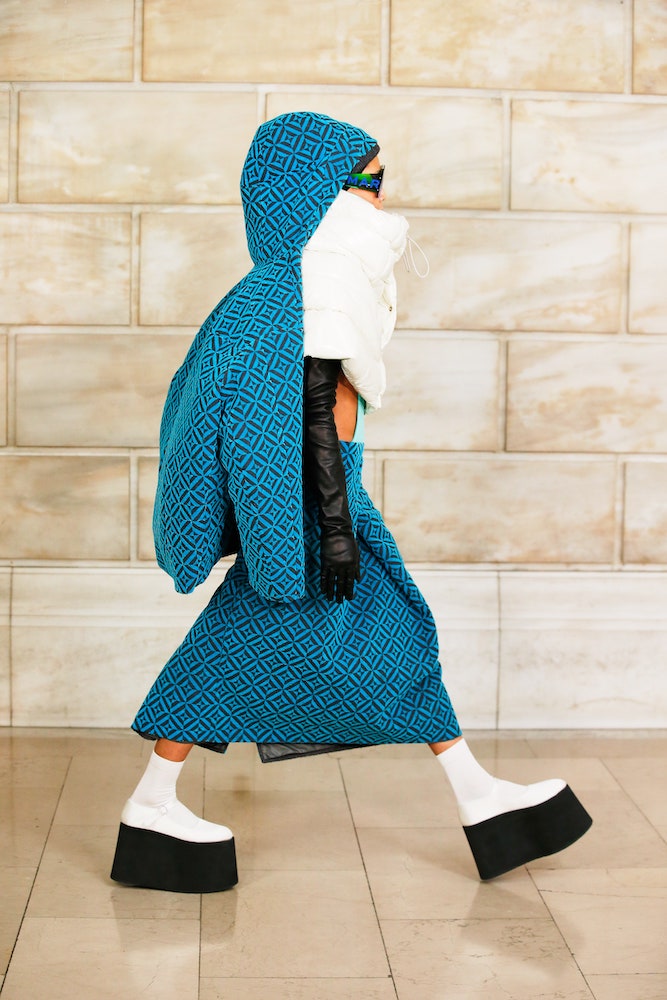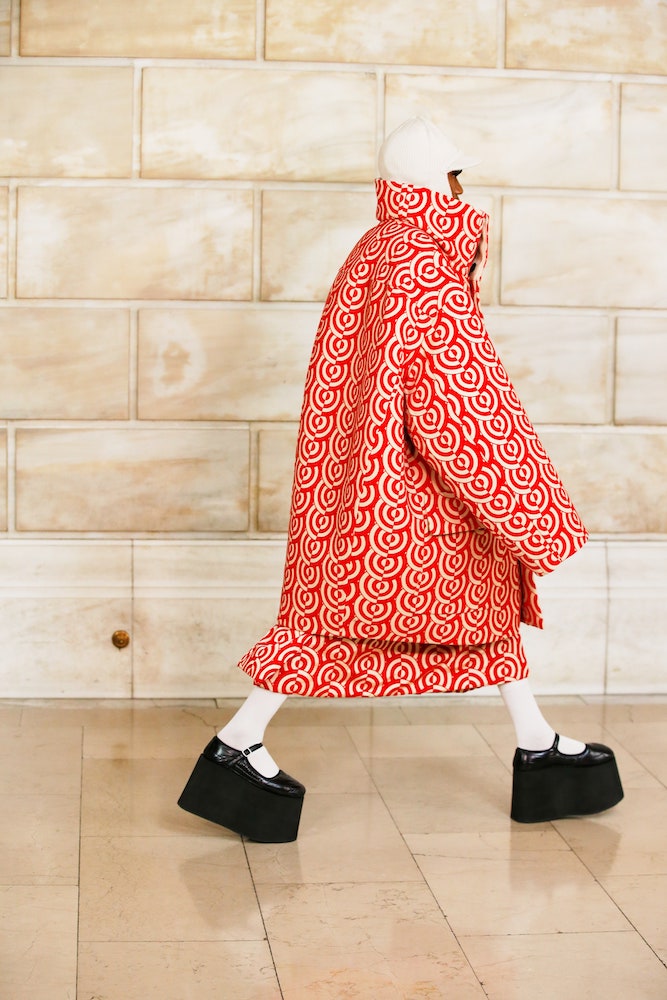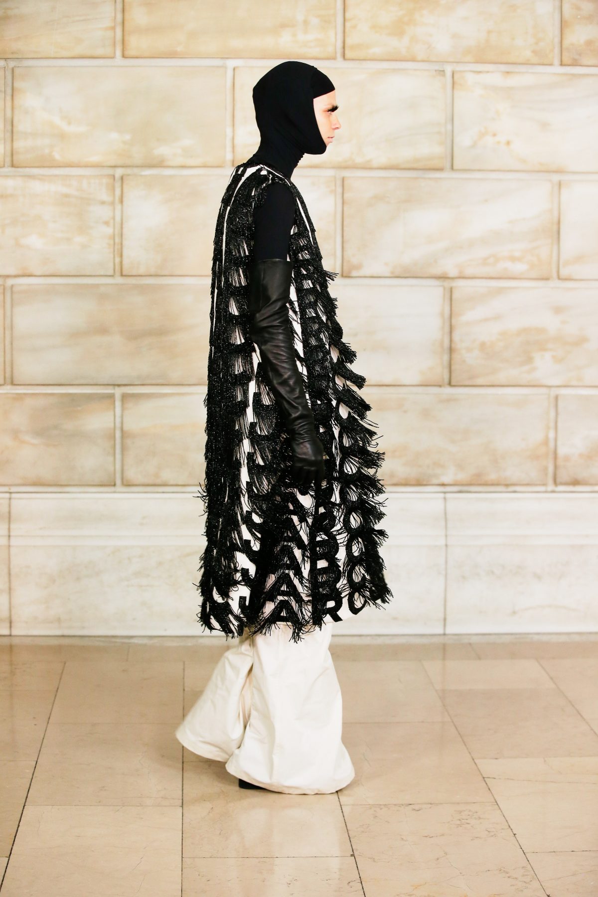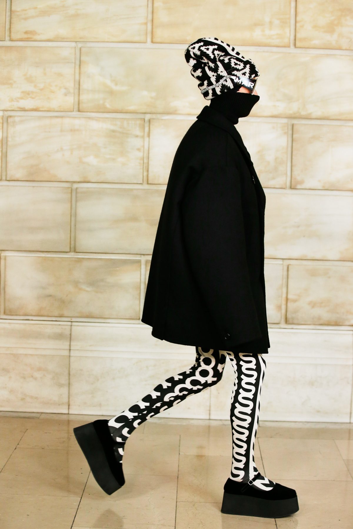 除此之外,戲劇性的比列、日常款式的超長冷衫、世人思念旅行的滑雪褲都不忘注入 Marc Jacobs 風格的街頭姿態,曾經 high & low 的標誌式魅力也逐一在每個模特兒的 Grace Jones 頭巾和超厚Mary Janes 鞋履造型中表露無遺。