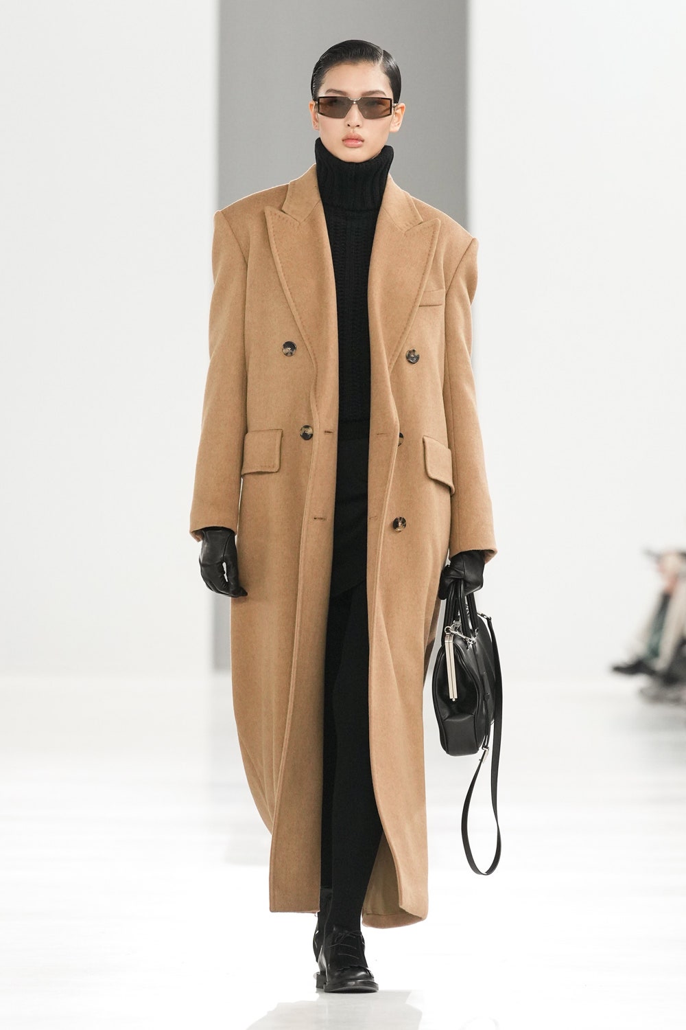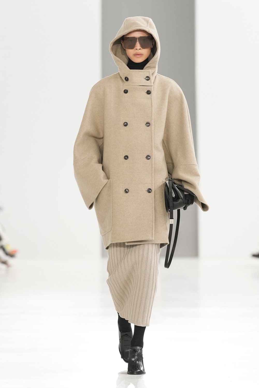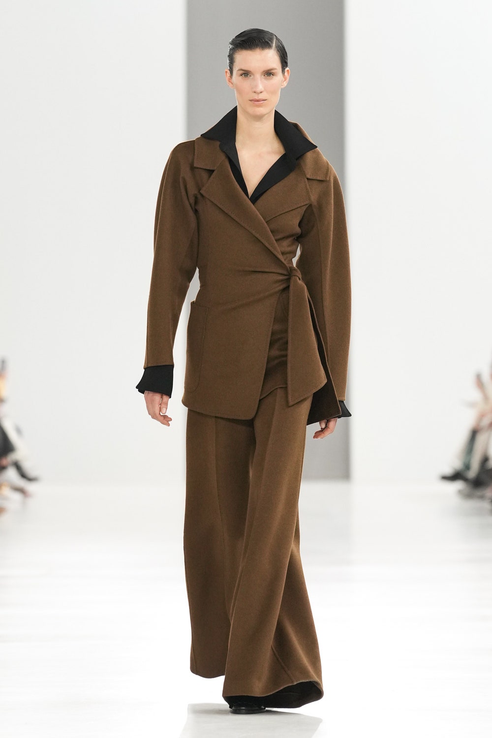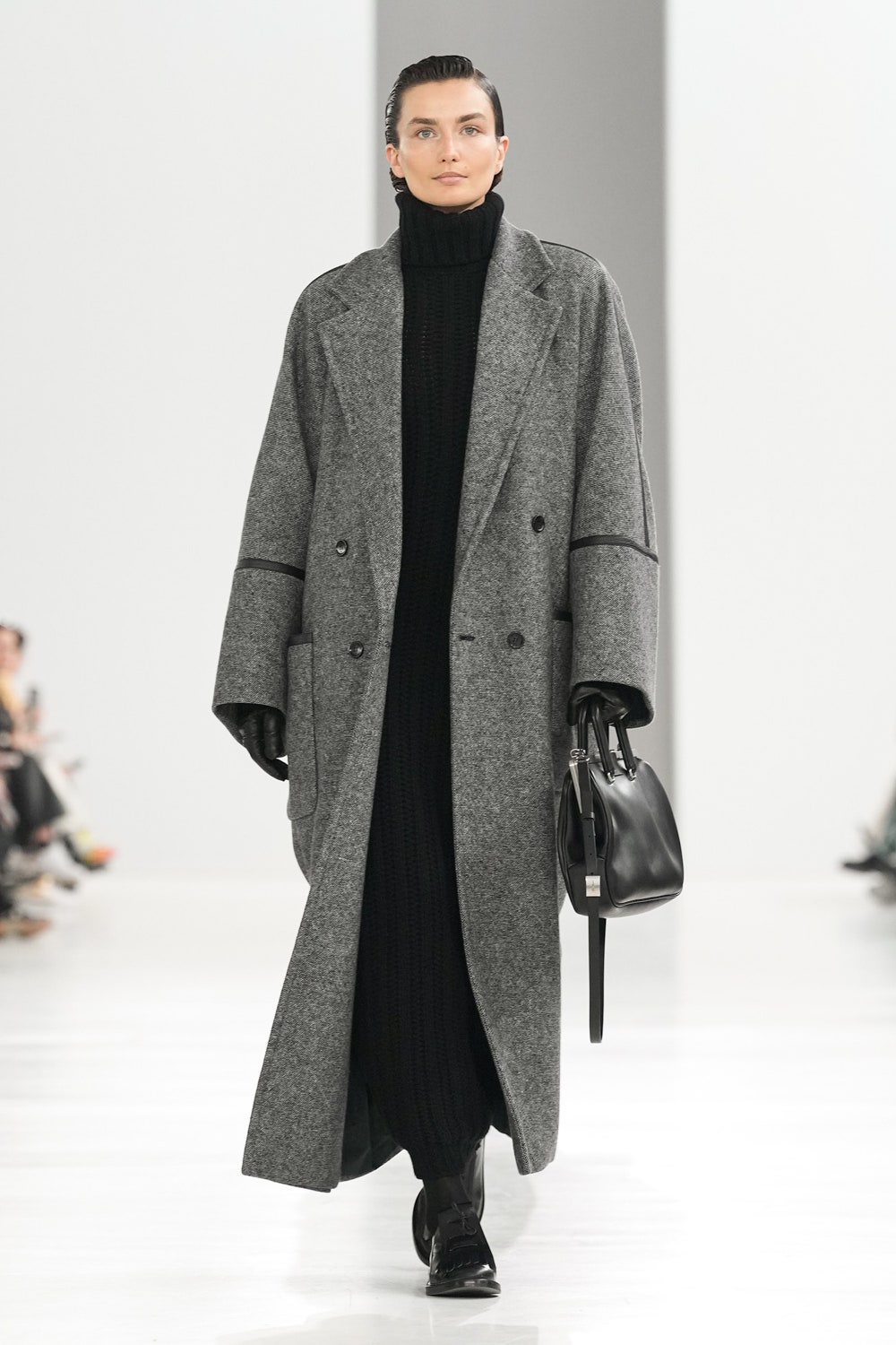 早在時裝騷開始之前,Max Mara就已經通過預告透露出今季更為簡約的風格趨向,色彩依然是一大亮點,但相比上一季以藍色、粉色、綠色、黃色為主打的色系,今季色系以冷色系為主,黑色、灰色、米色、褐色組成的乾淨簡約套裝,配以標誌性大衣。