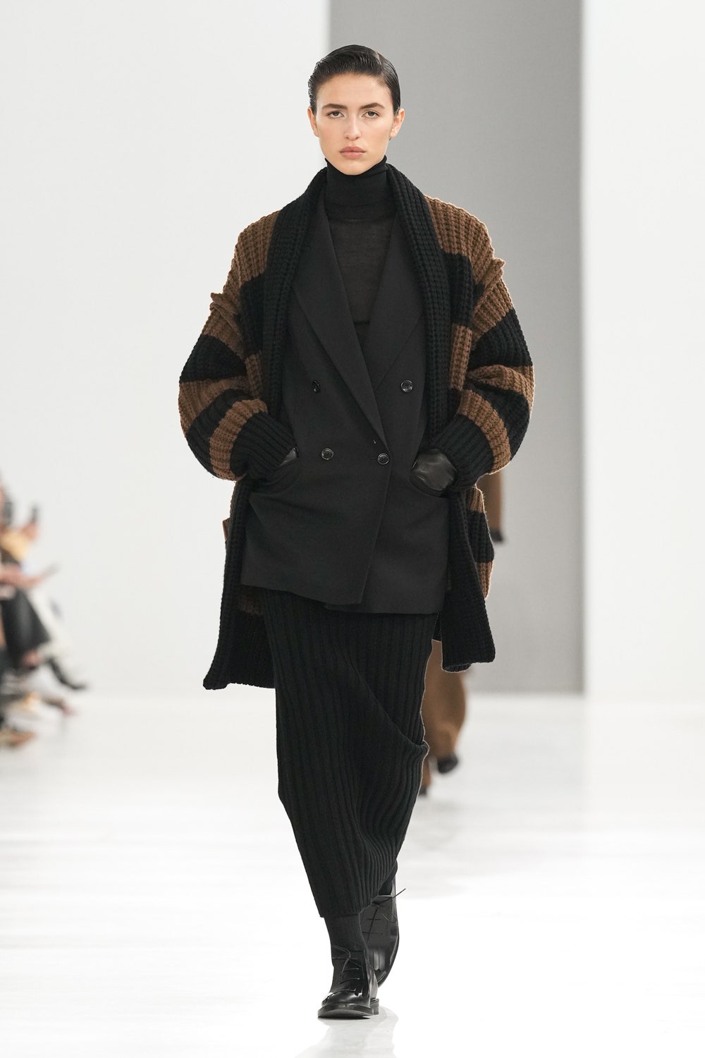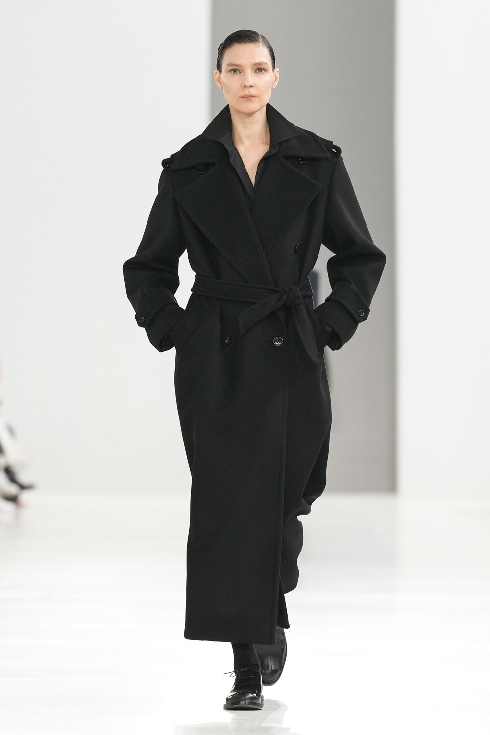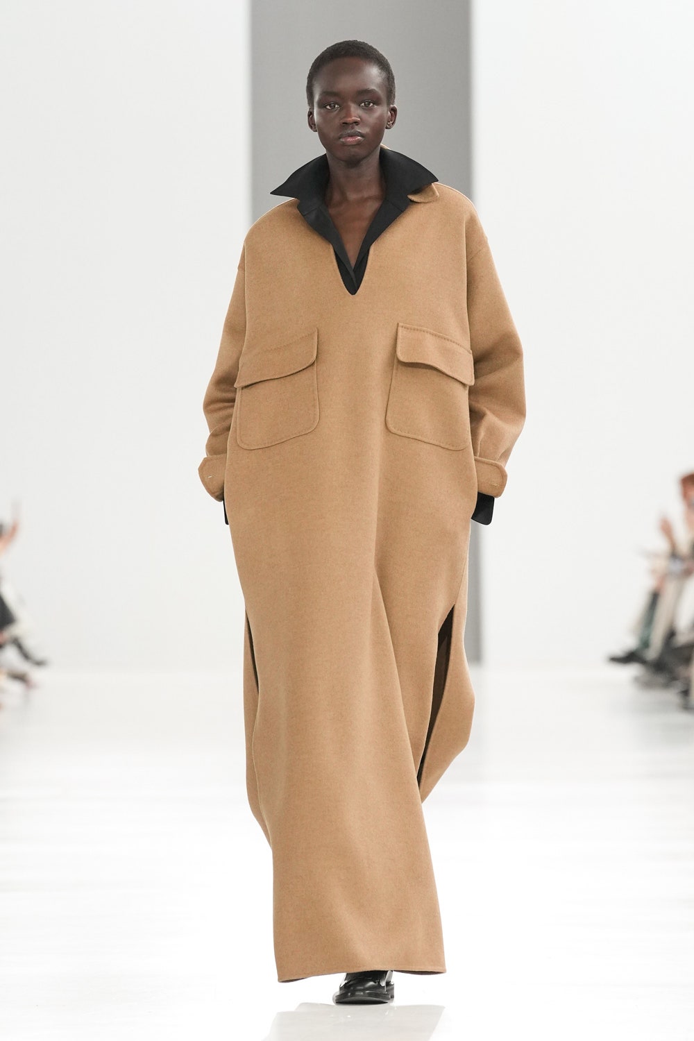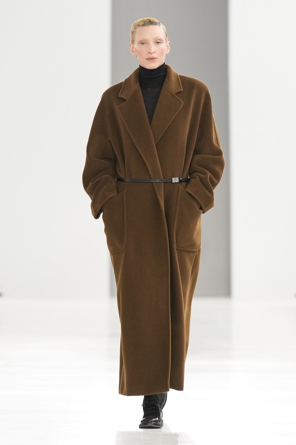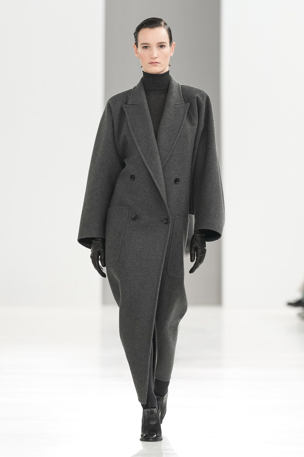 早在時裝騷開始之前,Max Mara就已經通過預告透露出今季更為簡約的風格趨向,色彩依然是一大亮點,但相比上一季以藍色、粉色、綠色、黃色為主打的色系,今季色系以冷色系為主,黑色、灰色、米色、褐色組成的乾淨簡約套裝,配以標誌性大衣。