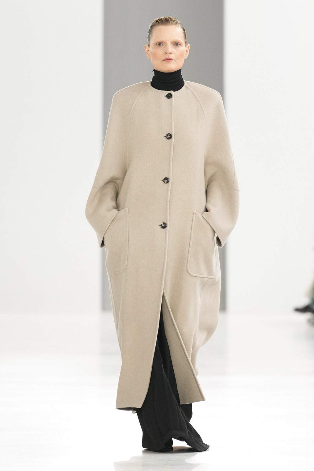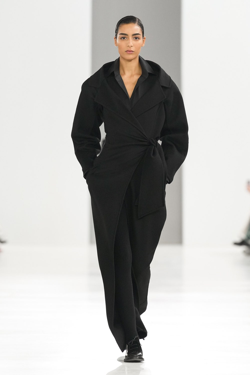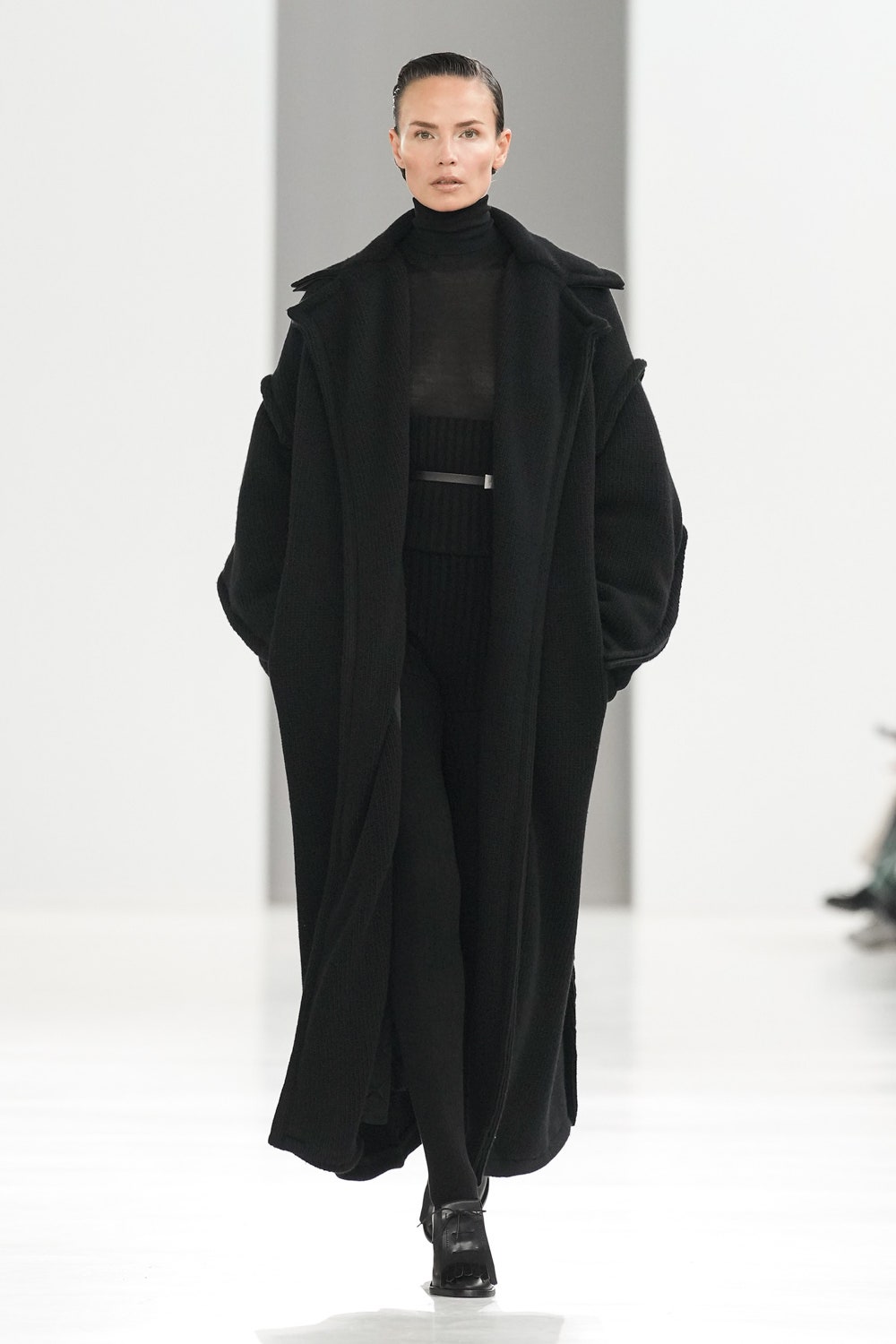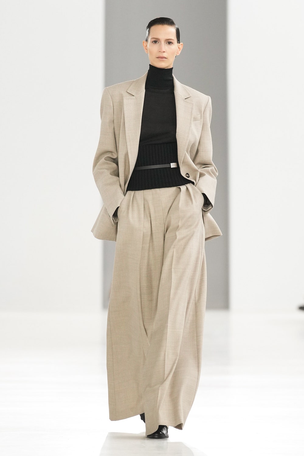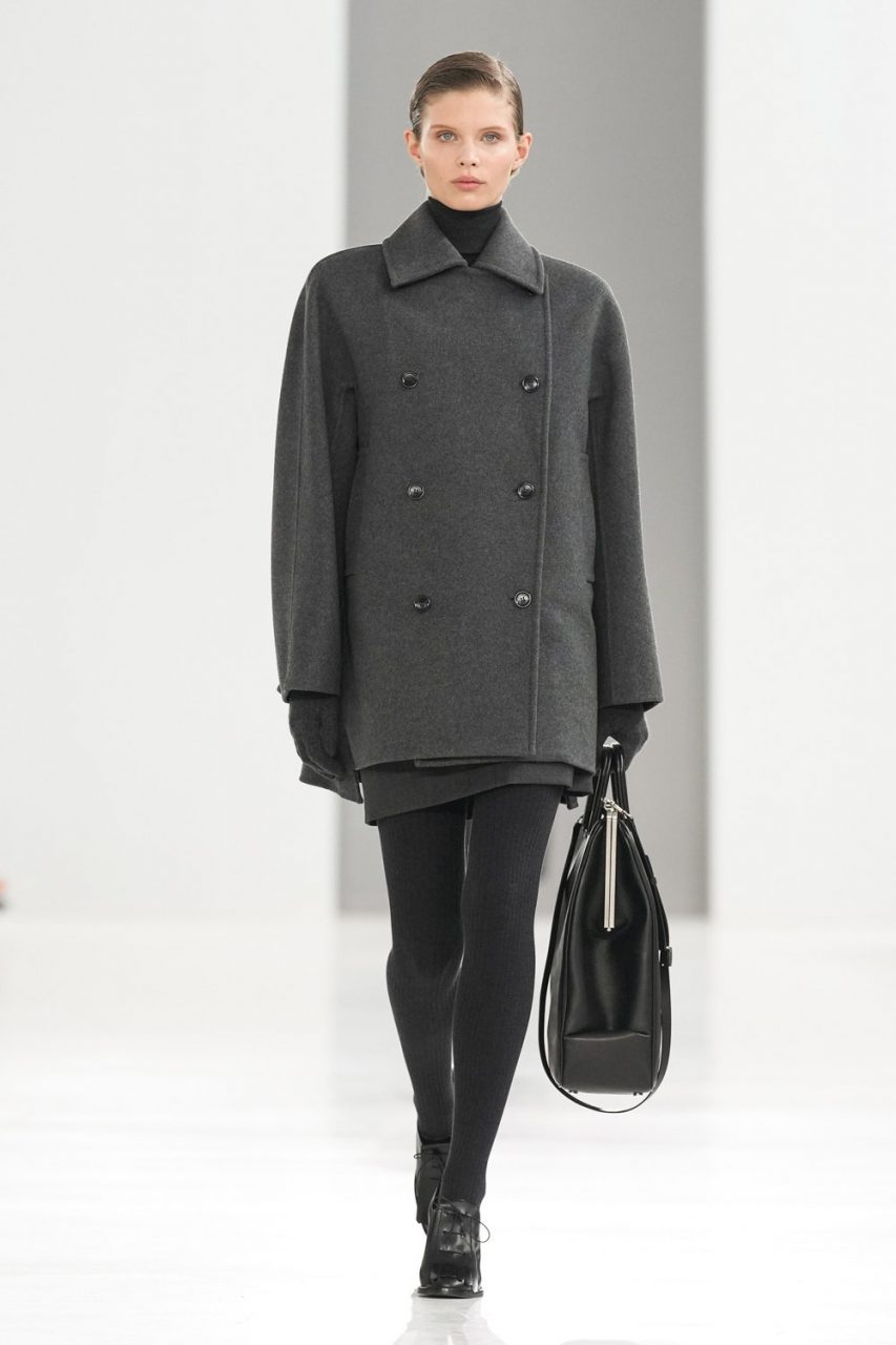 早在時裝騷開始之前,Max Mara就已經通過預告透露出今季更為簡約的風格趨向,色彩依然是一大亮點,但相比上一季以藍色、粉色、綠色、黃色為主打的色系,今季色系以冷色系為主,黑色、灰色、米色、褐色組成的乾淨簡約套裝,配以標誌性大衣。