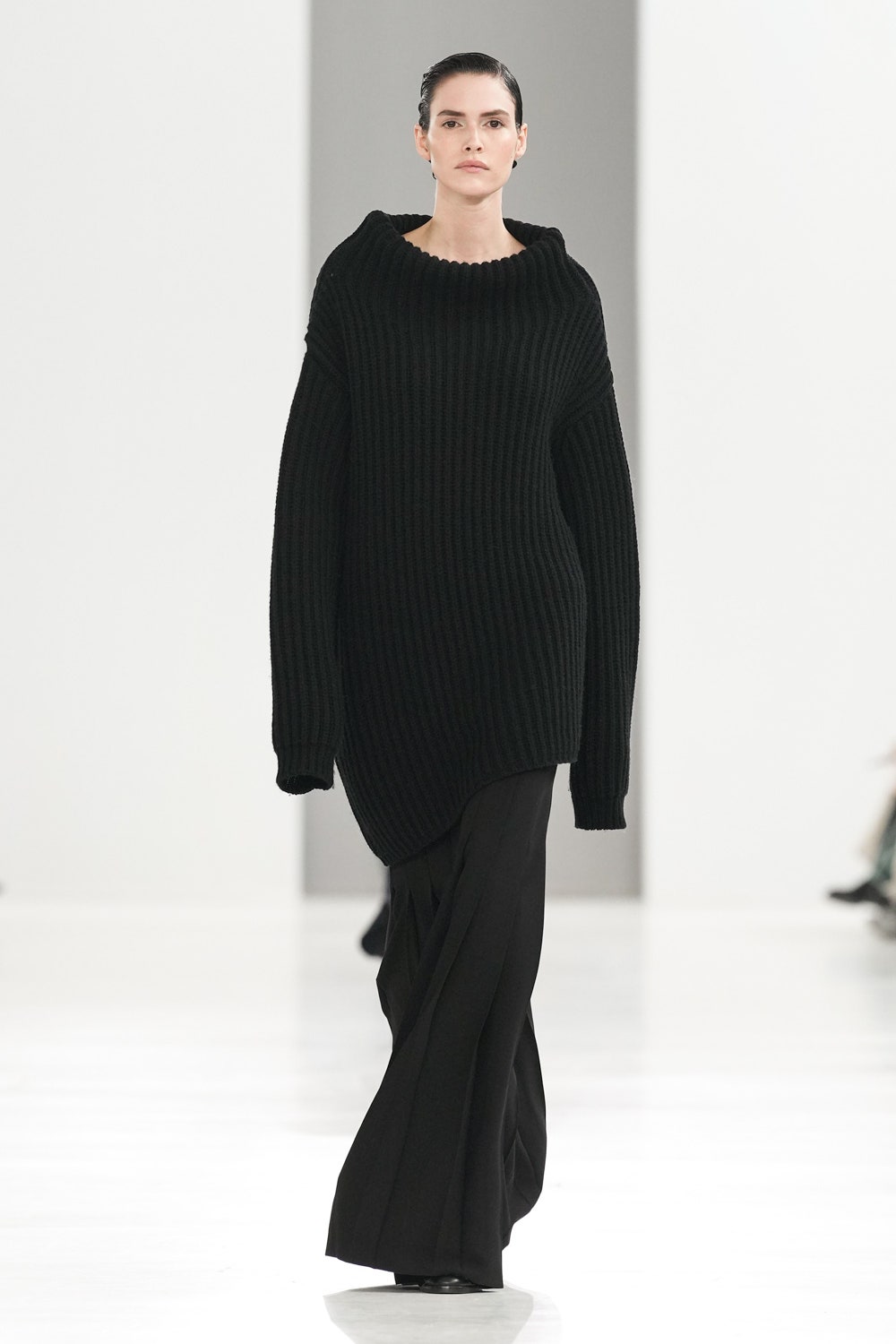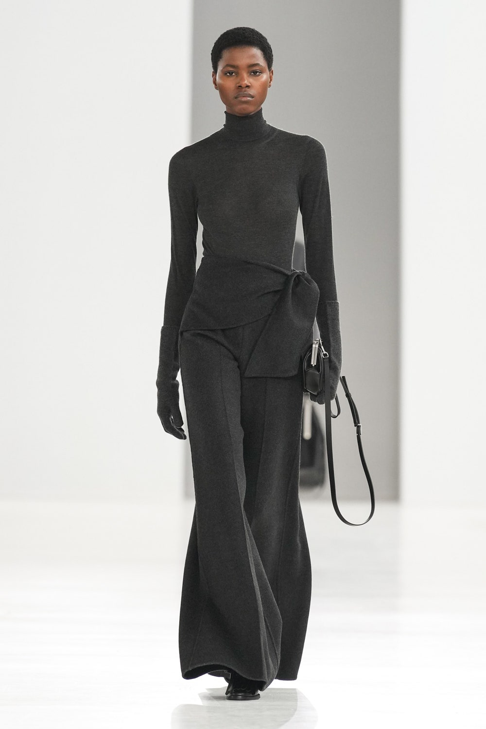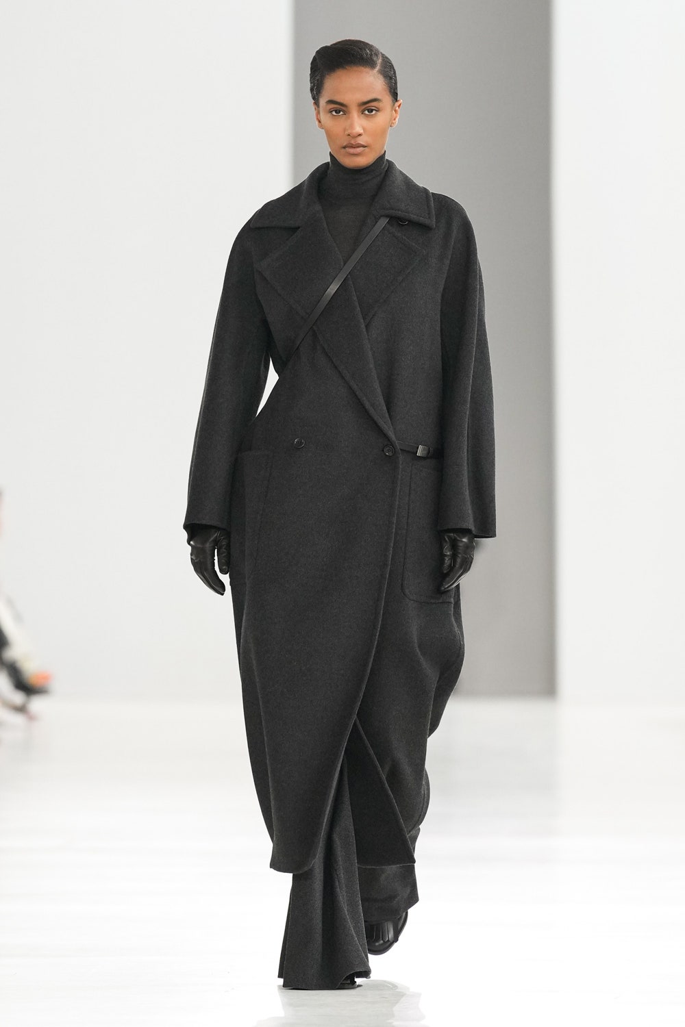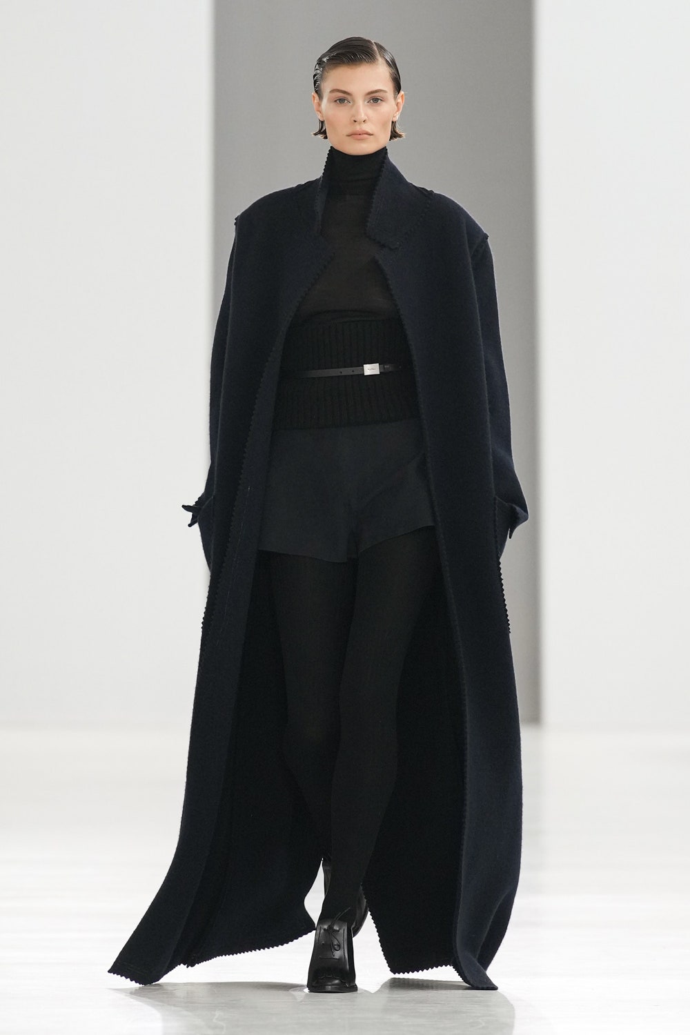 早在時裝騷開始之前,Max Mara就已經通過預告透露出今季更為簡約的風格趨向,色彩依然是一大亮點,但相比上一季以藍色、粉色、綠色、黃色為主打的色系,今季色系以冷色系為主,黑色、灰色、米色、褐色組成的乾淨簡約套裝,配以標誌性大衣。