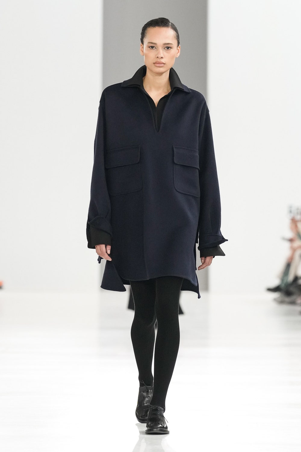 超模 Gemma Ward 更是驚喜亮相,擔任閉幕模特兒!她以敞開式的深藍大衣內搭同色系連衣裙,monochrome色系是今次系列的一大特點,同秋冬時節相匹配的情況下,也讓Max Mara一直以來營造的幹練、現代且有力量的都市女性形象呼之欲出。