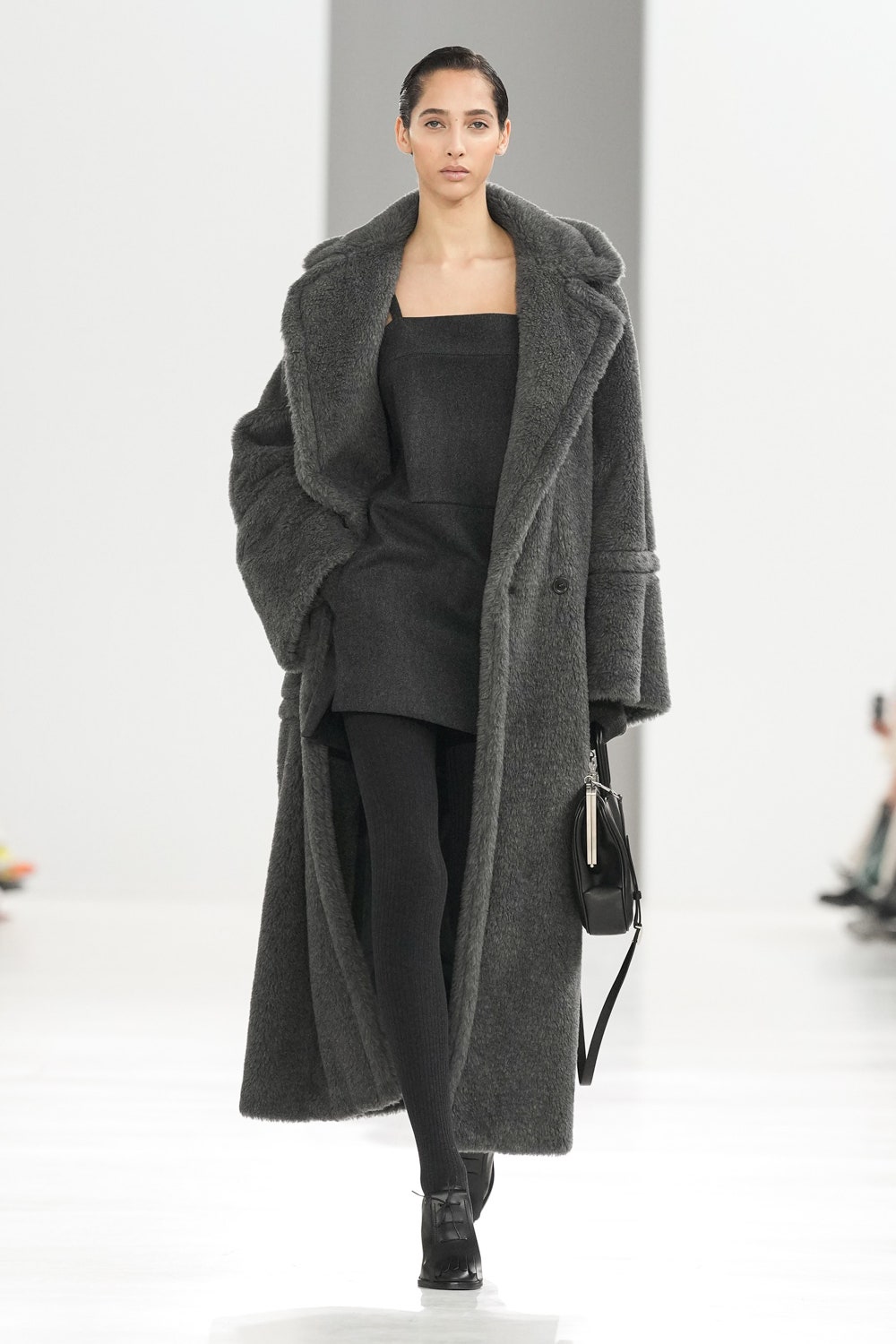 更有標誌性的Max Mara Teddy Bear大衣同中性色調的超短裙完美融合,彰顯Max Mara意大利精湛工藝。此外,黑色緊身衣和拖地長大衣外套的完美搭配更令人眼前一亮。