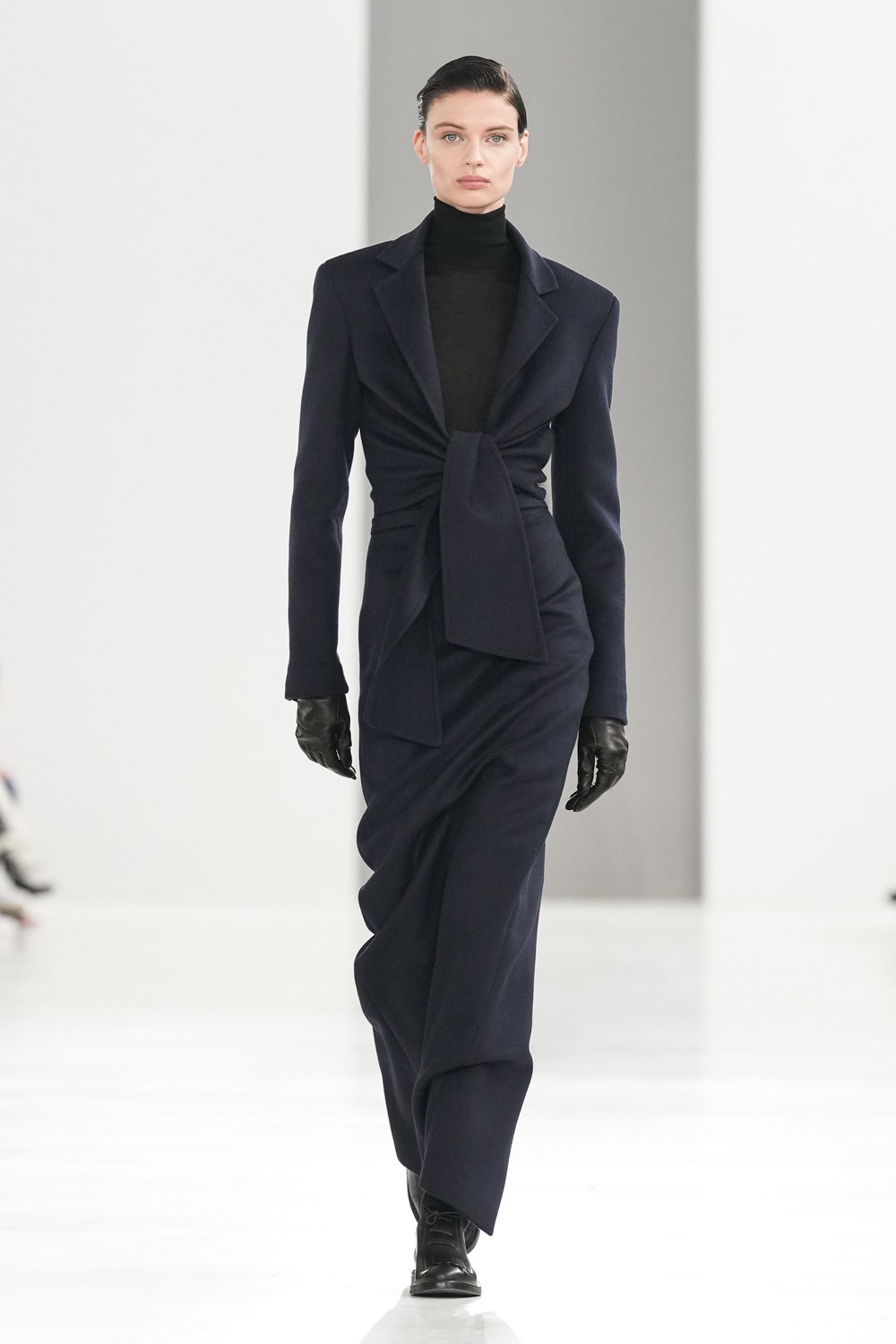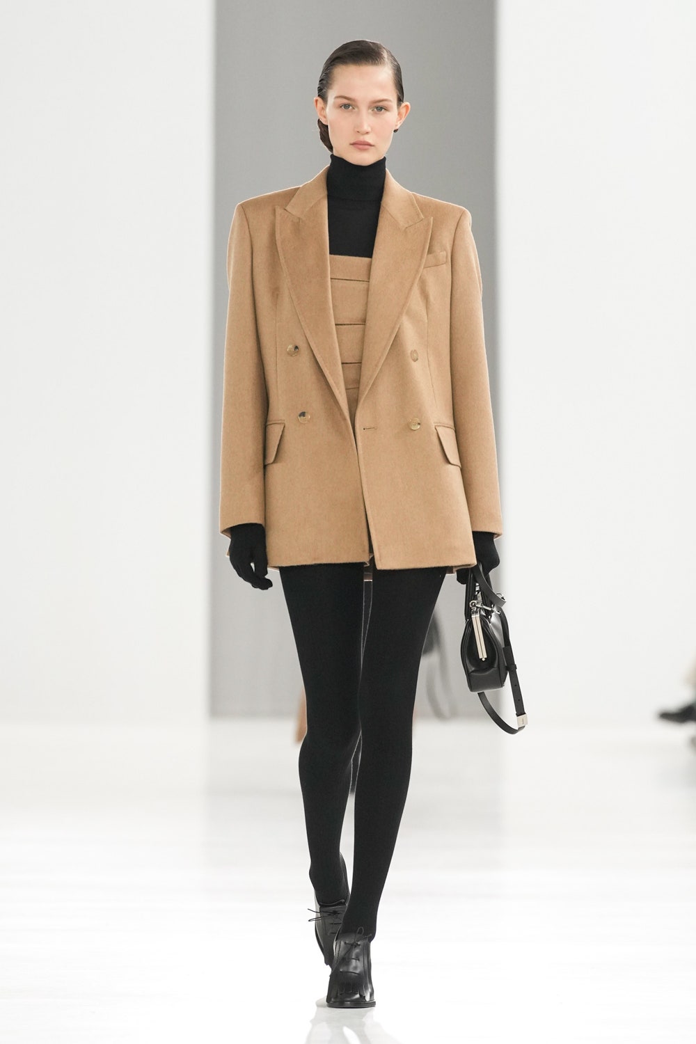 除此之外,在時裝騷現場,我們亦能感受到Max Mara傳達的永恆優雅。簡潔鮮明的單色調同蘊含現代女性風範的剪裁結合,Max Mara女性不只活躍在社交場合,她們也常穿著俐落的商務套裝。