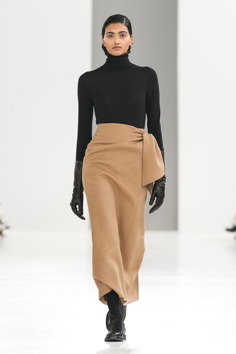 Max Mara 在一片凸顯工業風格的室內揭曉了2024秋冬系列,和上一季花攢錦簇的景象相比,今季顯得更加冷靜。緊接著,在鋼琴曲的伴奏下,由創意總監 Ian Griffiths 打造一貫的優雅風格和俐落剪裁一一呈現。