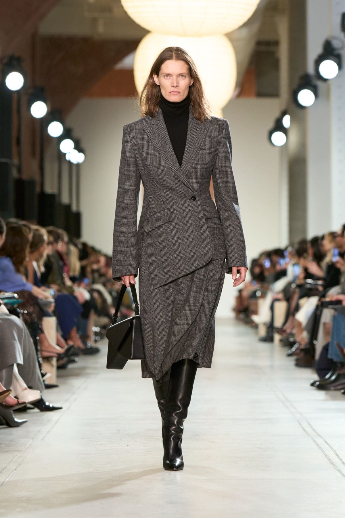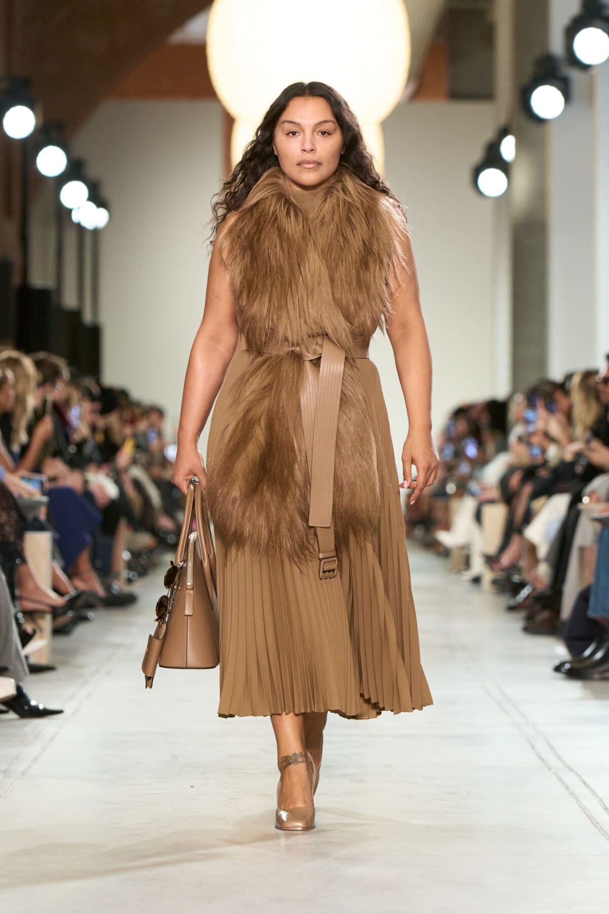 設計方面,Michael Kors 透過了柔和剪裁、實穿性與奢華感並列的設計,來展現這種毫不費力的 effortless chic ,從辦公室的日裝到適合派對晚裝的閃片連身裙,以適合任合場景的衣櫥,契合品牌一直提倡的 Jet Set 精神。今季,品牌帶來了各款男裝風大衣、廓形外套搭配百褶裙、西裝寬褲,以及以輕盈堆疊的連身裙和流蘇絲質襯衫,讓整體造型增添更多層次和動感,亦有一種瀟灑魅力;羊毛材質、毛茸茸元素成為今季主角並貫穿造型之間,為秋冬增添溫暖氛圍⋯⋯從舒適的披肩、睡衣風造型、針織衫,展現一種秋冬專屬的鬆弛、隨心魅力;至於各款簡約短靴到具建築感的高跟騎馬靴,還有各款氣派大方的大號手袋,營造出簡約摩登的造型力量。
