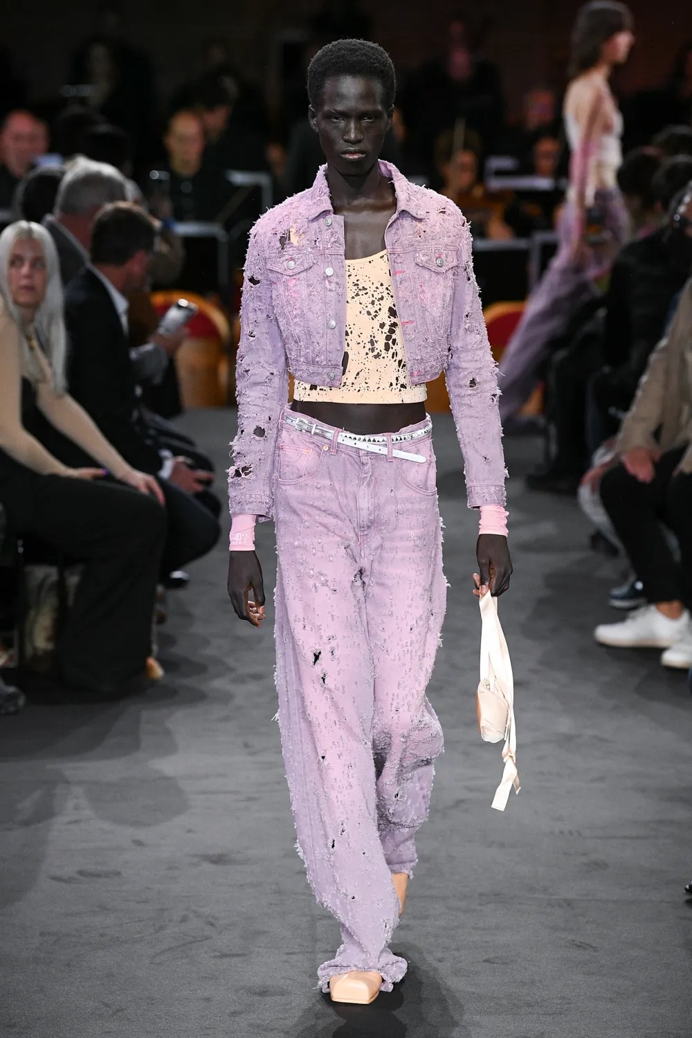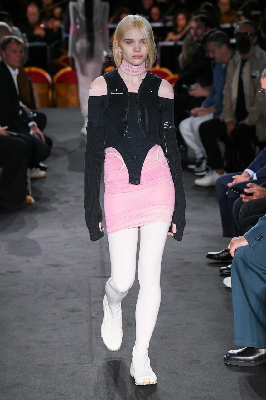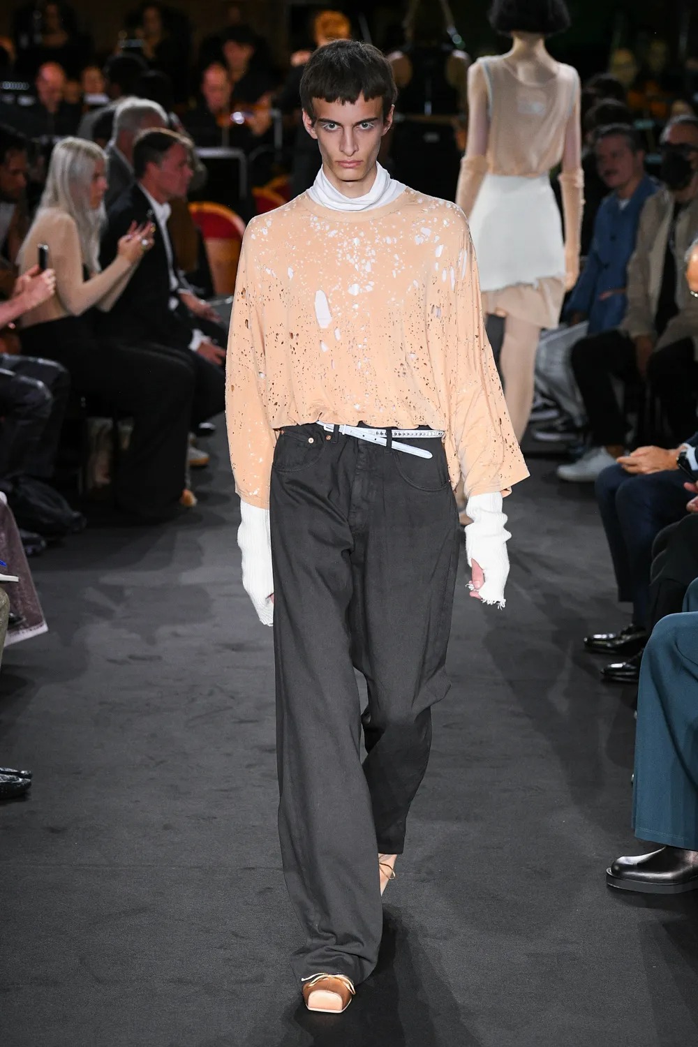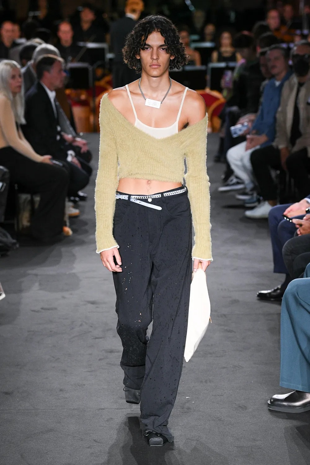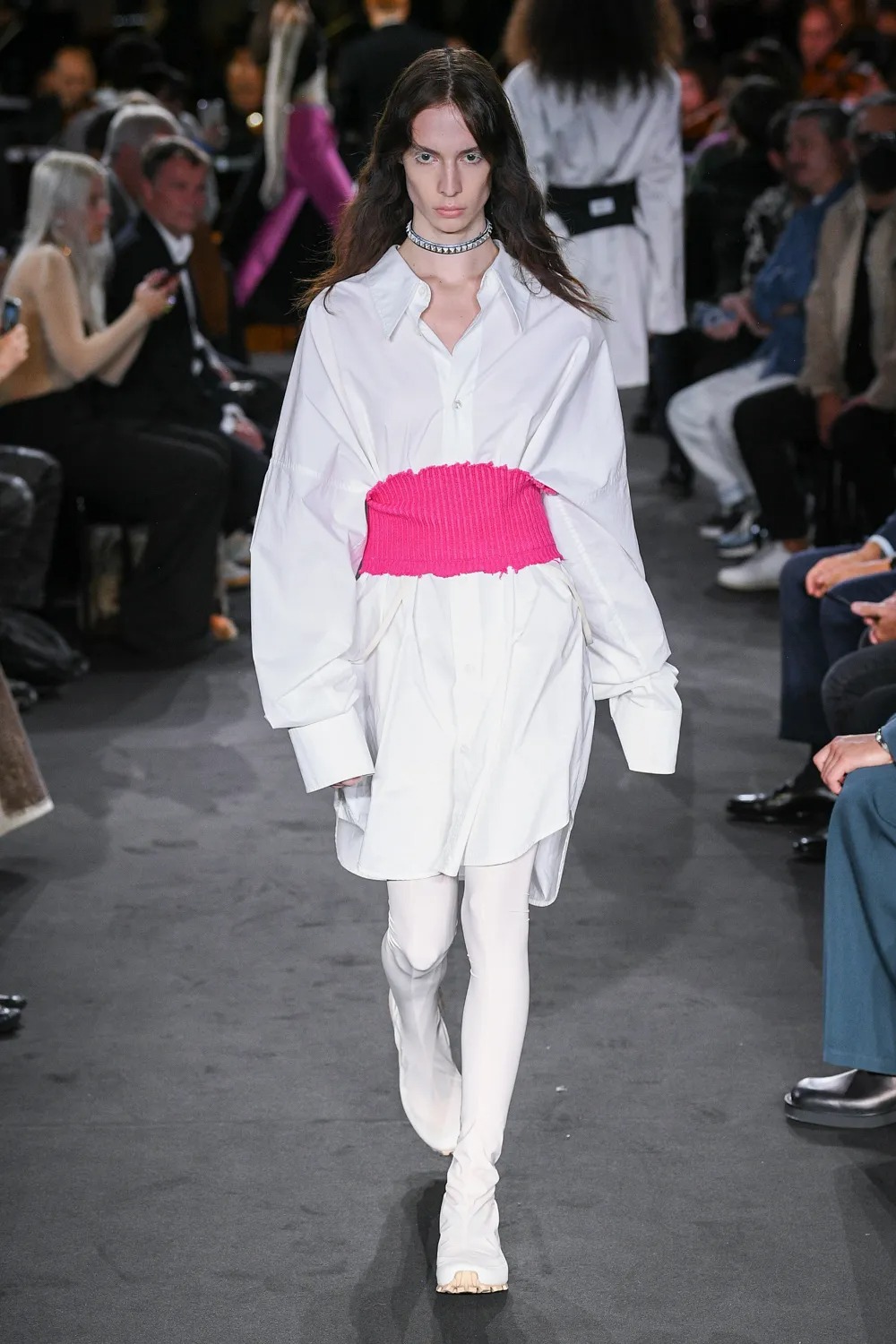具有叛逆意味的 MM6 Maison Margiela 過往重視舞台主題的呈現,曾經以倒置、反轉作為主要設計元素,進行有趣的「翻玩衣櫃」;又舉行過同性婚禮,去年春夏系列靈感源自對都市生活中隨處可見的酒吧、餐廳和街道的禮贊,在米蘭人熱愛的聚會場所 La Belle Aurore 餐廳之內,散發一種讓人能夠抒發壓力的喜悅氣氛。品牌在上一季則從現實生活的小環境一躍跳到自古代流傳至今的銜尾蛇(Ouroboros)符號語境,呈現時裝永恆不衰的魅力。