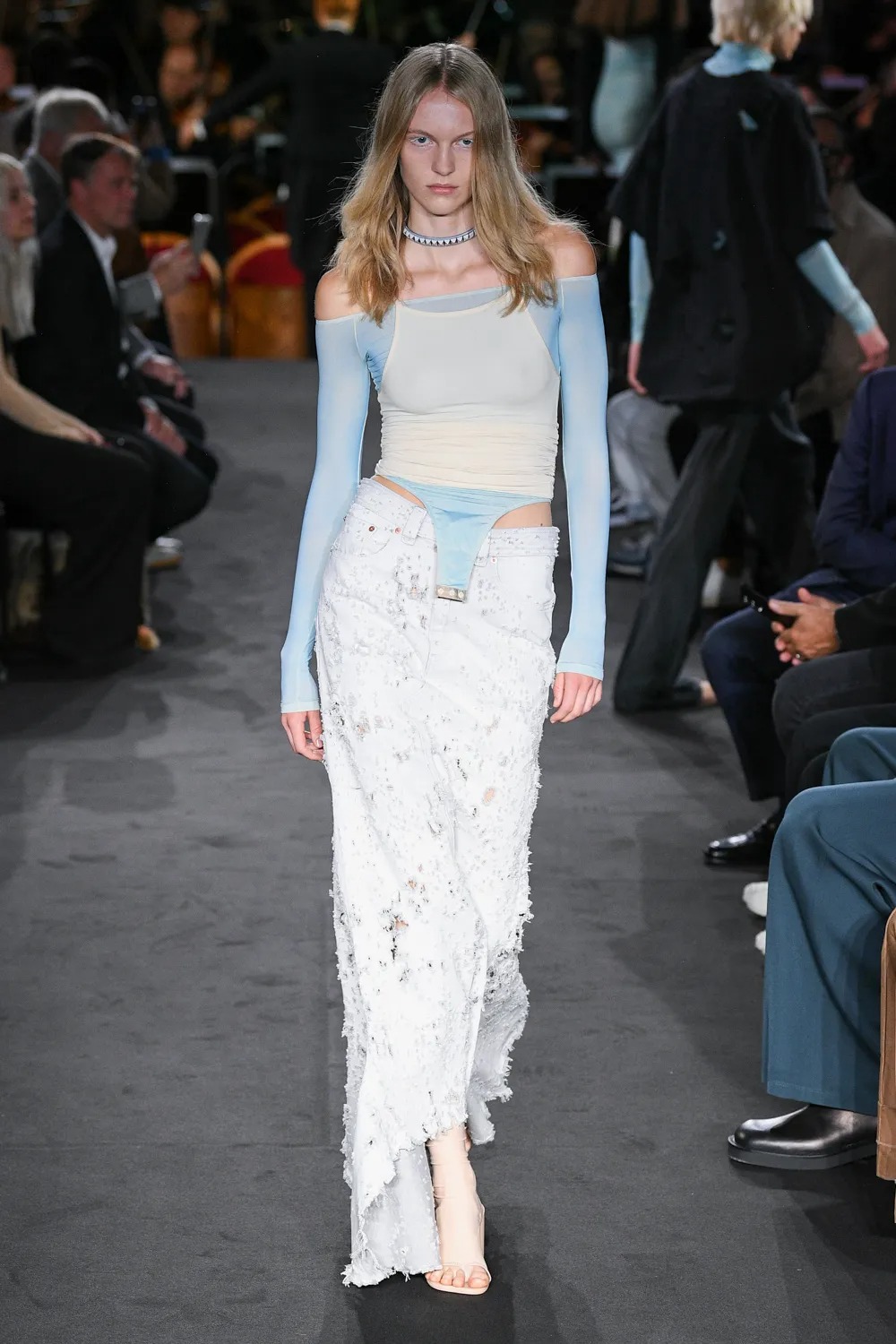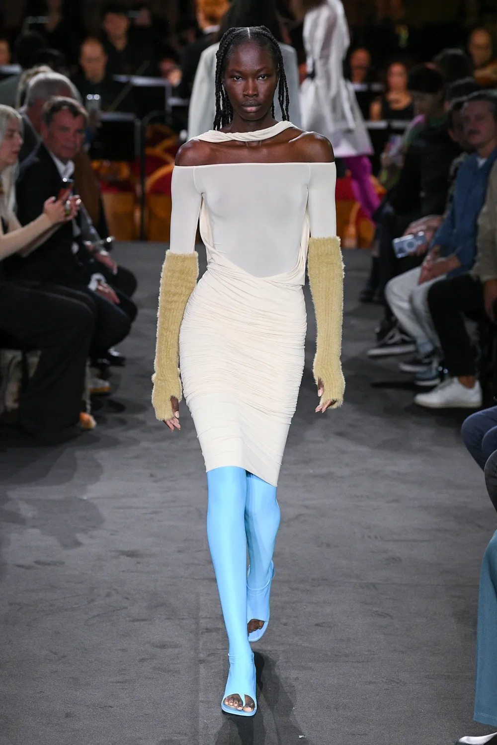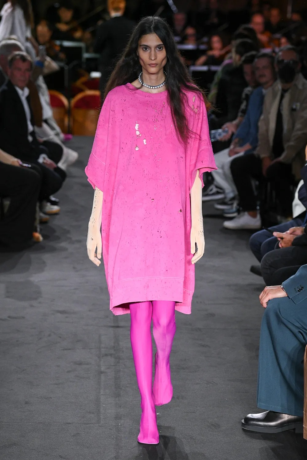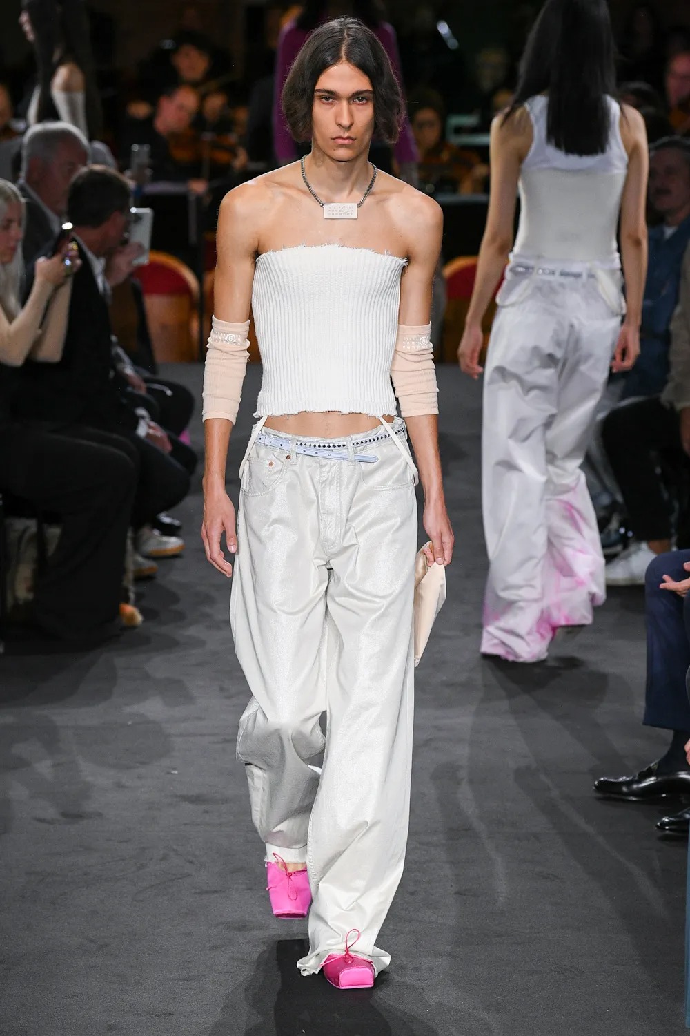 具有叛逆意味的 MM6 Maison Margiela 過往重視舞台主題的呈現,曾經以倒置、反轉作為主要設計元素,進行有趣的「翻玩衣櫃」;又舉行過同性婚禮,去年春夏系列靈感源自對都市生活中隨處可見的酒吧、餐廳和街道的禮贊,在米蘭人熱愛的聚會場所 La Belle Aurore 餐廳之內,散發一種讓人能夠抒發壓力的喜悅氣氛。品牌在上一季則從現實生活的小環境一躍跳到自古代流傳至今的銜尾蛇(Ouroboros)符號語境,呈現時裝永恆不衰的魅力。
