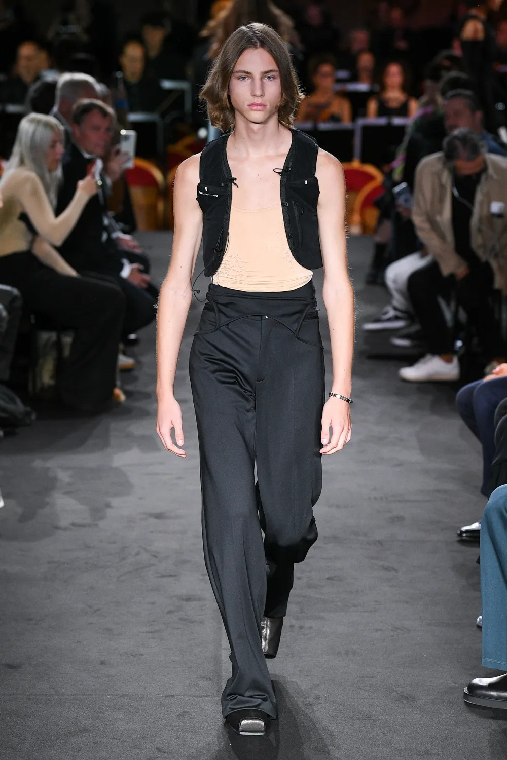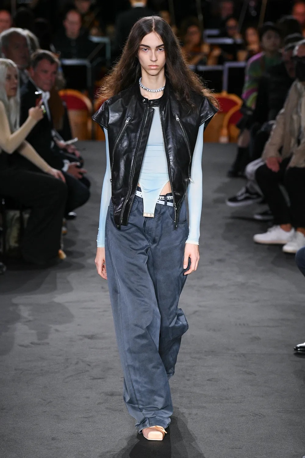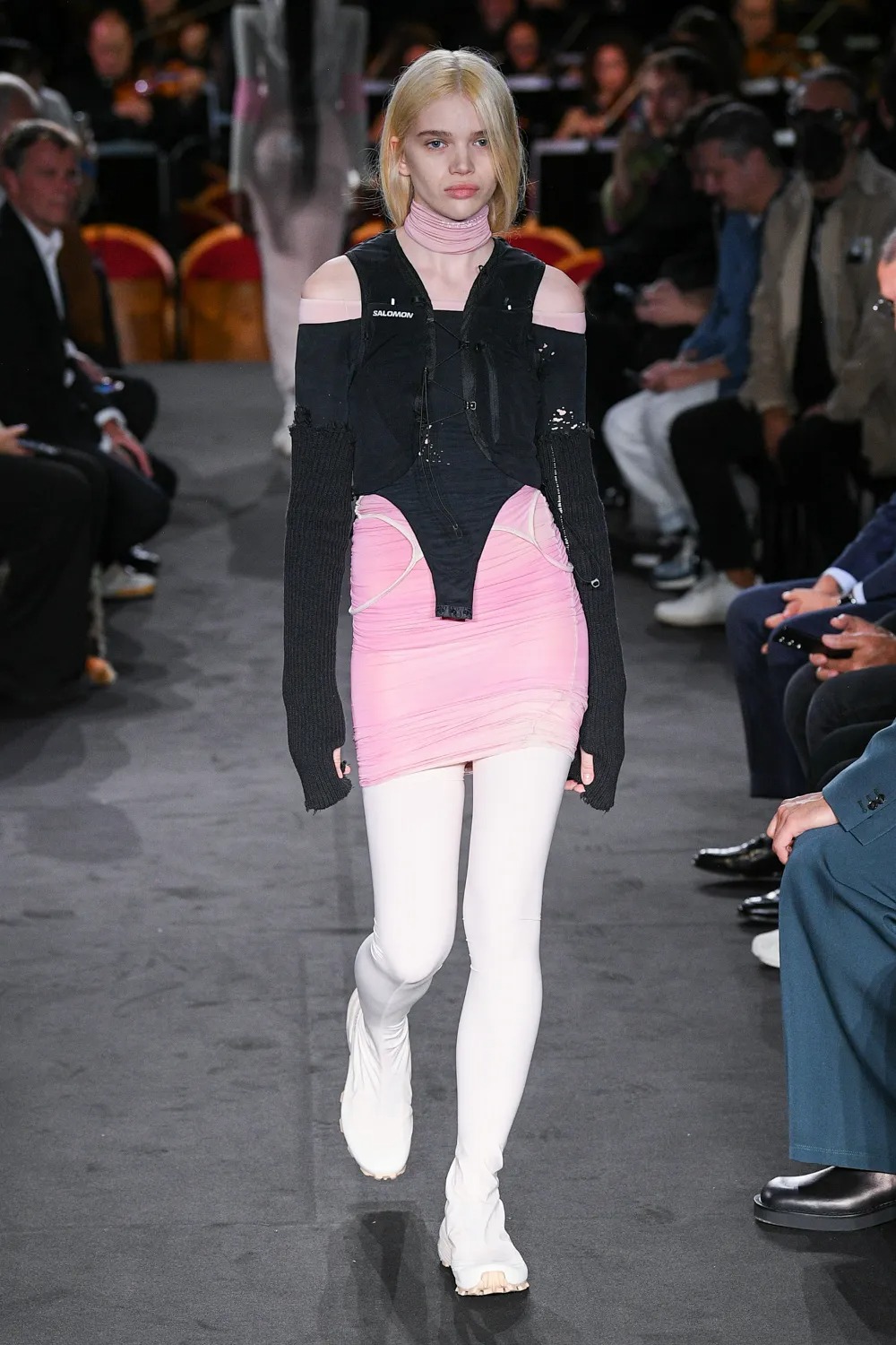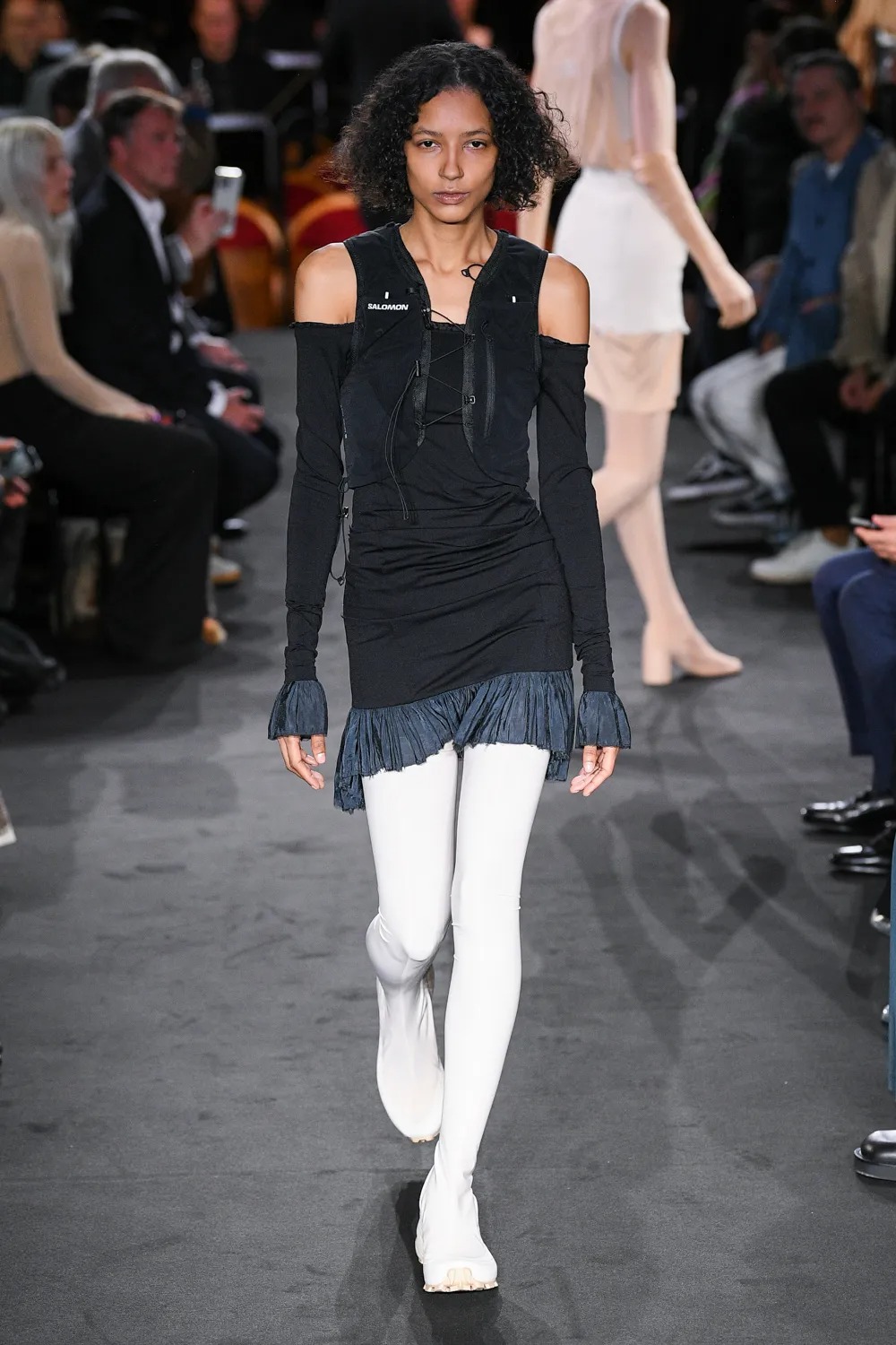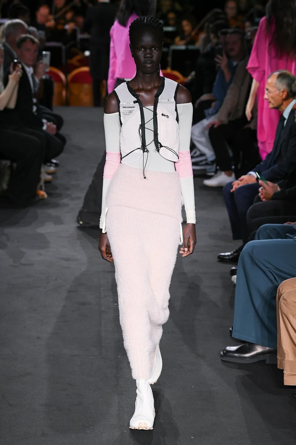 值得一提的,是 MM6 是次系列再度與 Salomon 合作,推出一系列機能性十足的背心和高筒靴,為時裝展增加了一點的話題性。