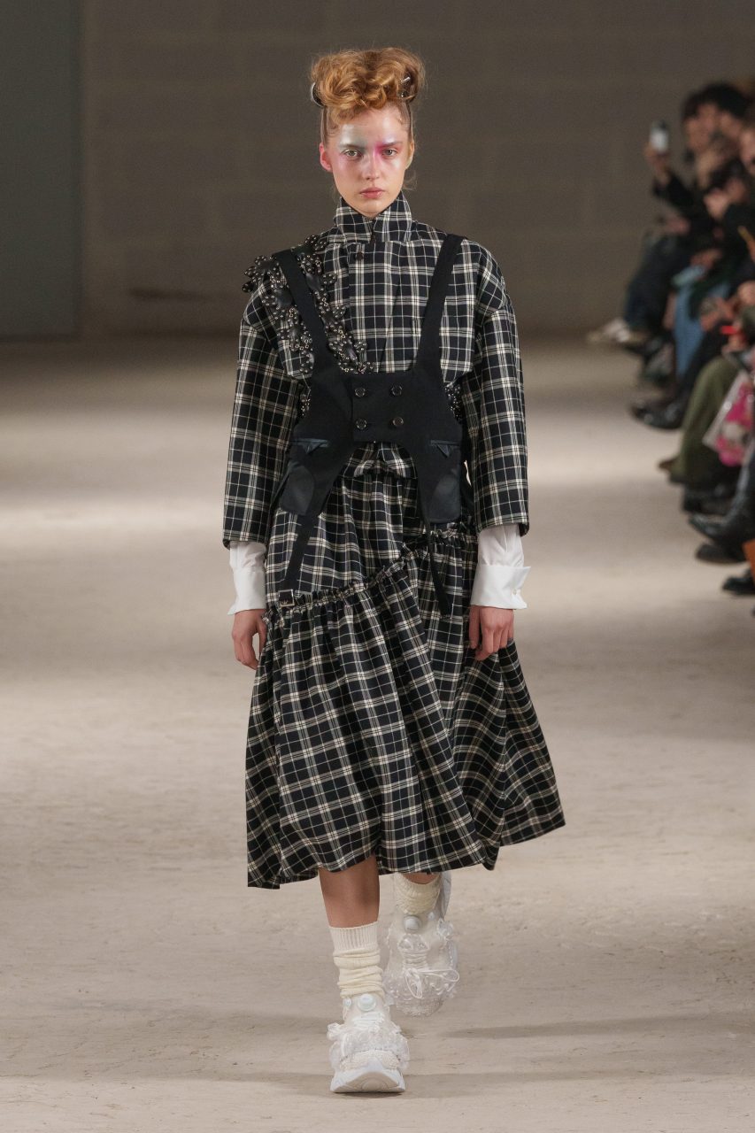 本季系列打造了適合日常著裝的服飾,將暗紋、格紋等元素融入服飾中,並與馬甲、外套等基礎款式進行搭配,更有襯衫與超大領結的疊搭,呈現出怪誕少女的風格。