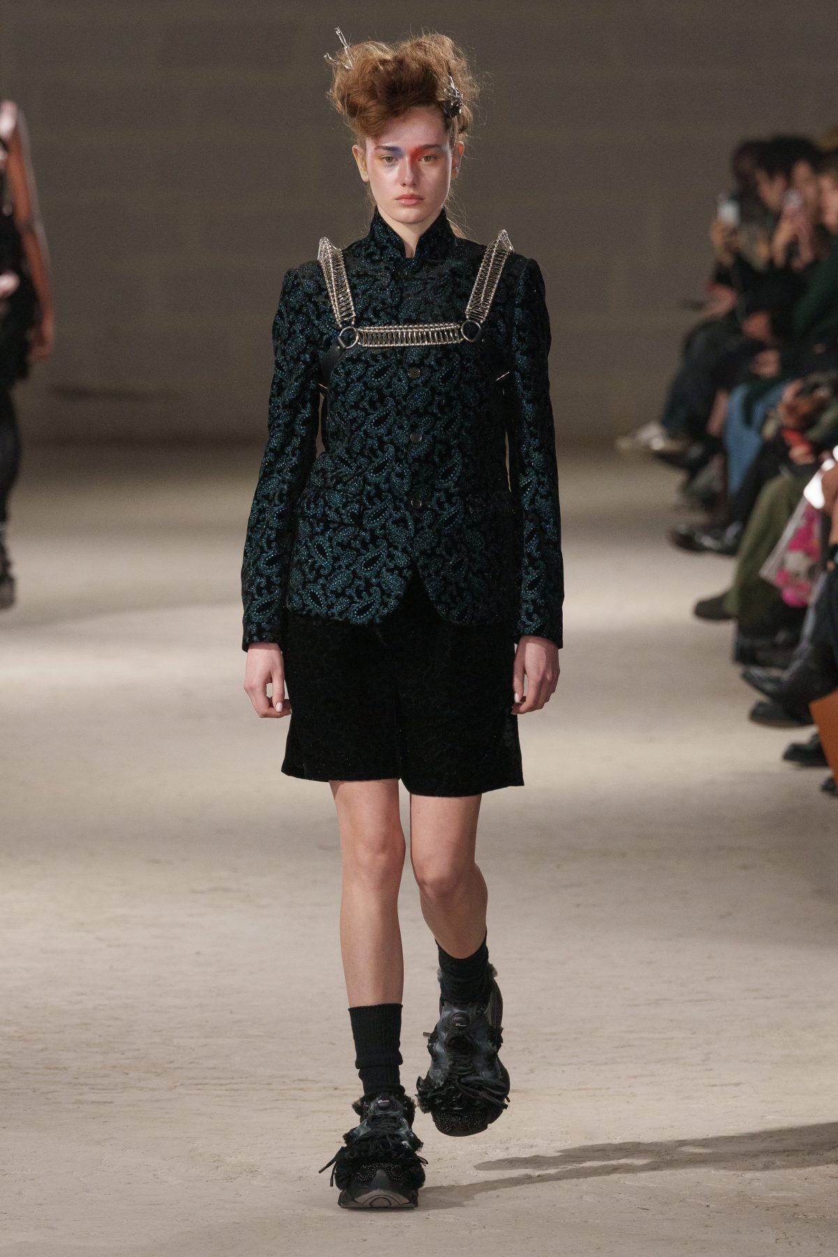 本季系列Noir Kei Ninomiya與Reebok合作的鞋款成為時裝騷無法忽視的存在,鞋款以Reebok Instapump Fury鞋型為藍本,將花朵圖案搭載於鞋面之上,絲帶、小圓珠等元素營造詩意浪漫的少女氛圍。