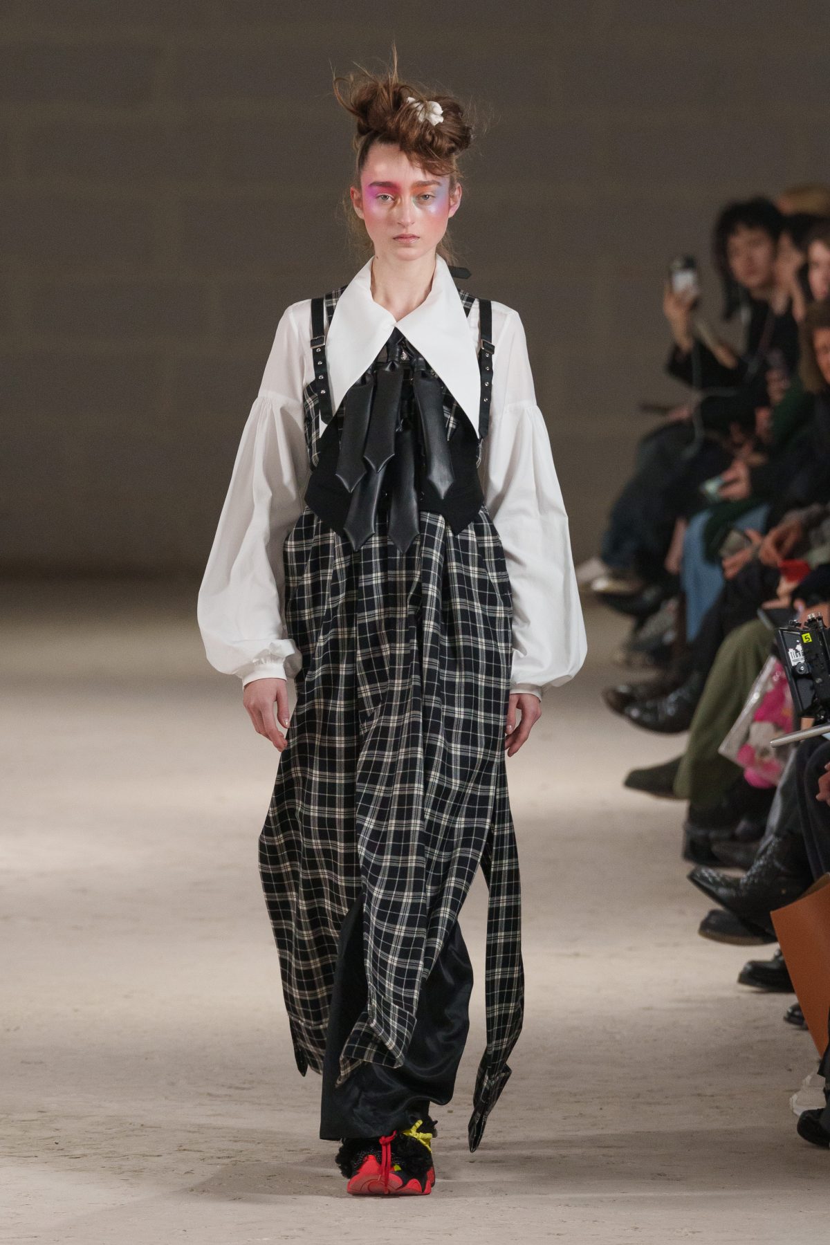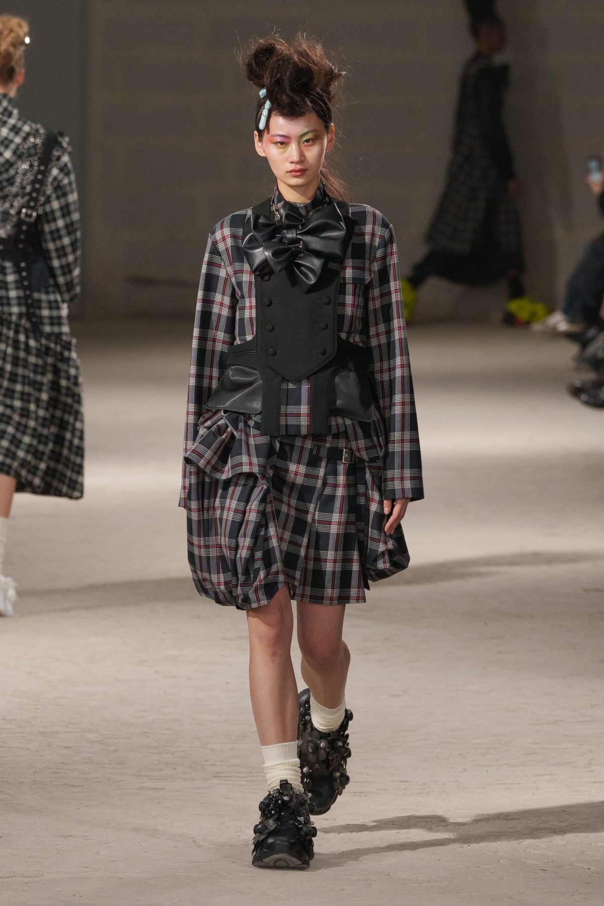 本季系列打造了適合日常著裝的服飾,將暗紋、格紋等元素融入服飾中,並與馬甲、外套等基礎款式進行搭配,更有襯衫與超大領結的疊搭,呈現出怪誕少女的風格。