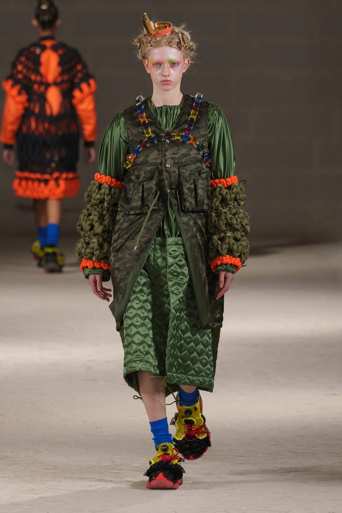 音效上的色彩扭曲與視覺效果完美糅合,這亦是設計師Kei Ninomiya目前為止發佈的最俏皮可愛的系列。本季系列以「Iridescence」為主題,品牌將天馬行空的時裝異想與抽象藝術巧妙結合,展開了一段色彩斑斕的視覺之旅。