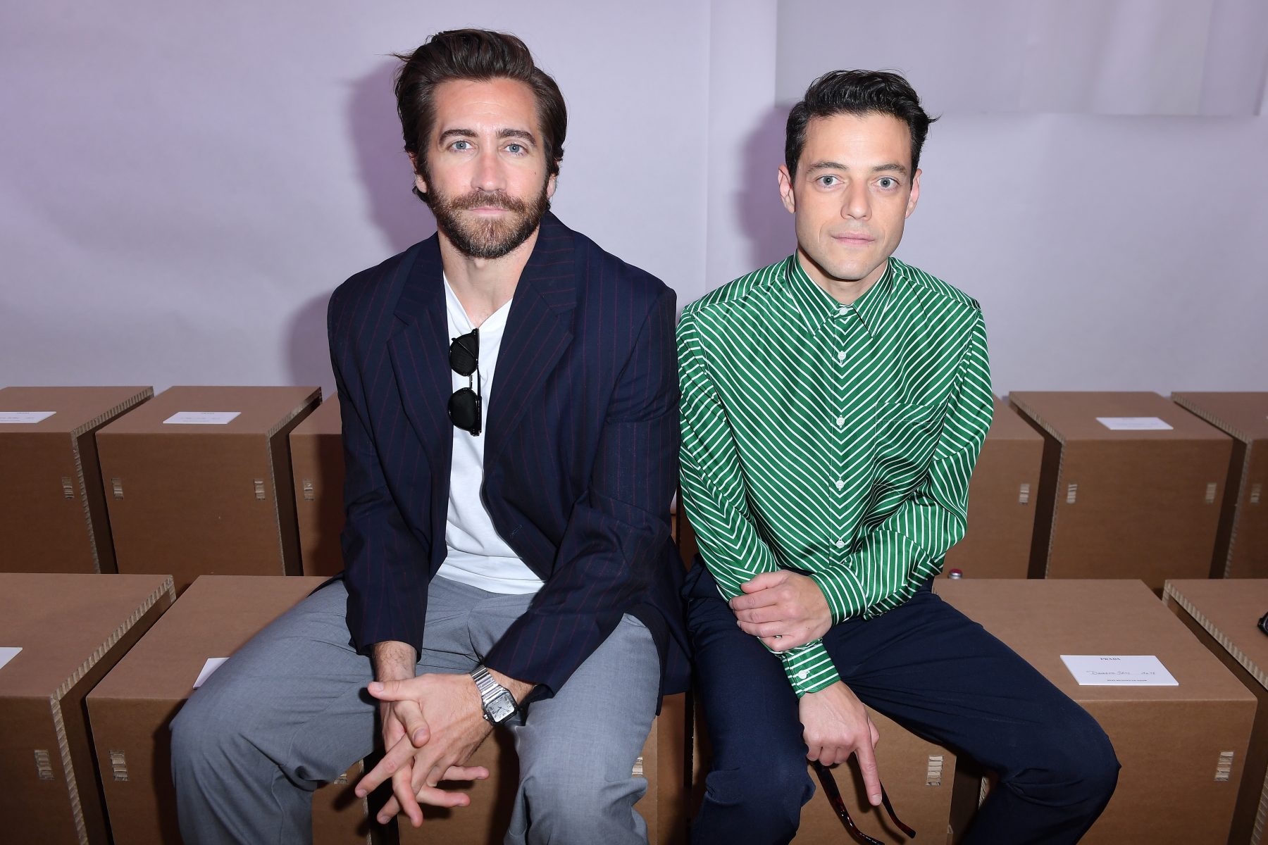 MILAN, ITALY - JUNE 19: Jake Gyllenhaal and Rami Malek attend Prada Spring/Summer 2023 Menswear Fashion Show on June 19, 2022 in Milan, Italy. (Photo by Jacopo M. Raule/Getty Images for Prada)