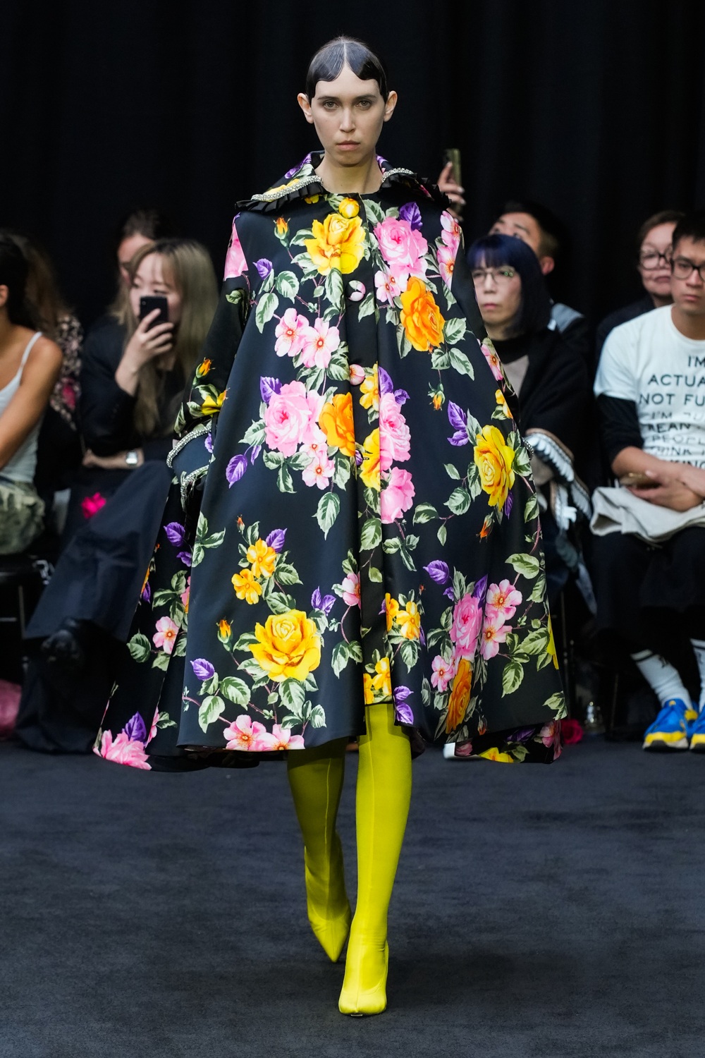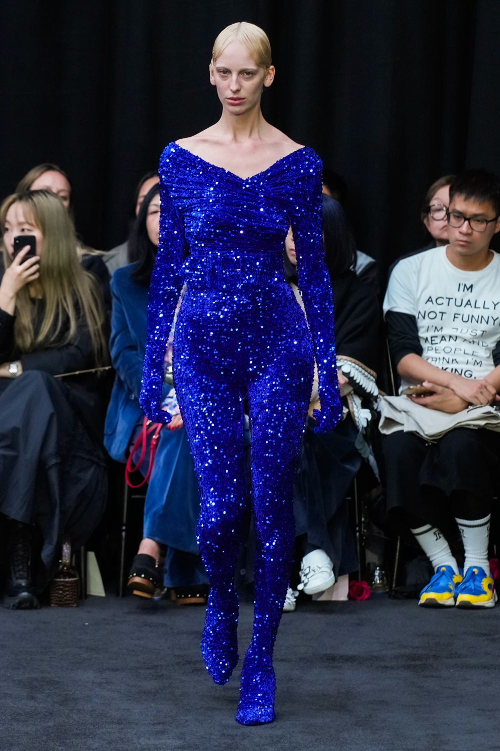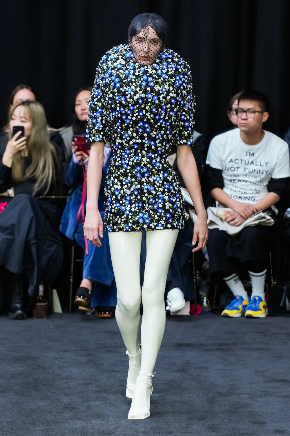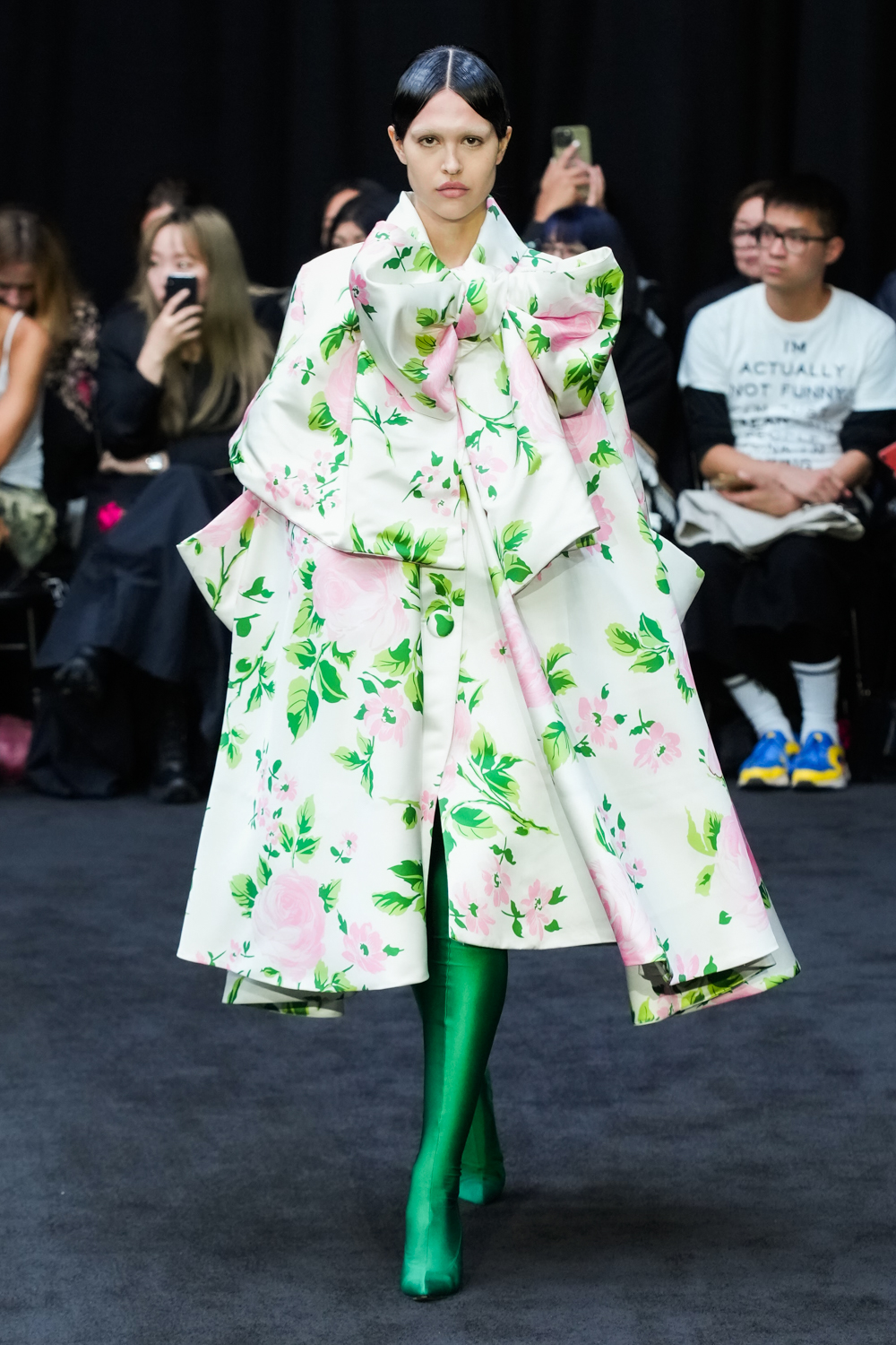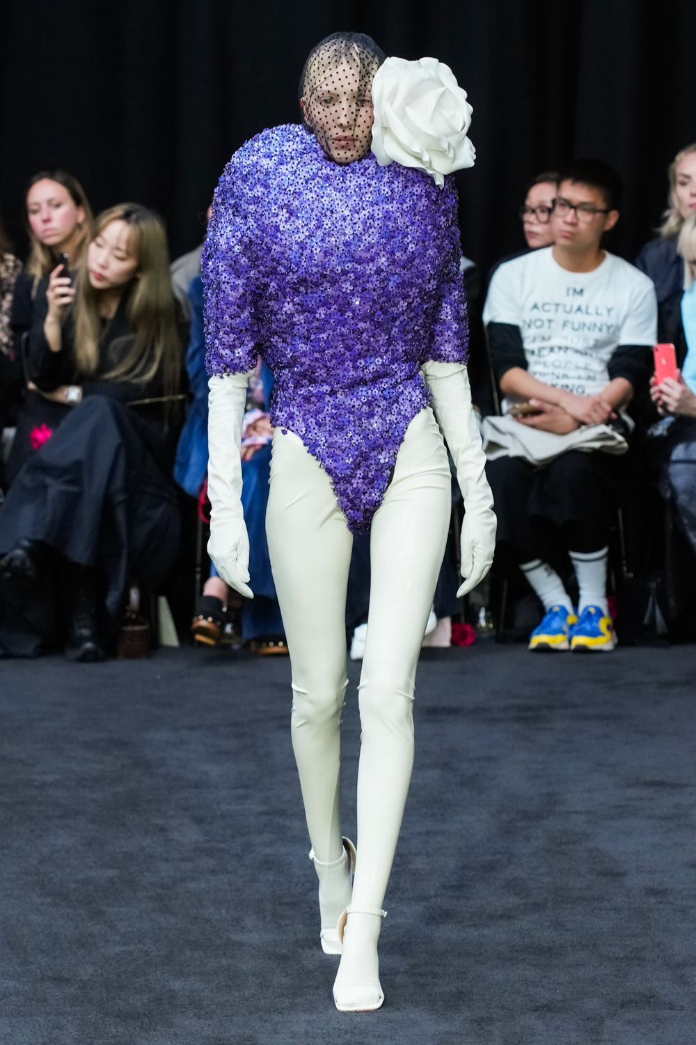 過去所有標誌式數碼印刷化為立體的黑色刺繡,甚至深受1952年佐治六世的葬禮上黑袍高級訂製所啟發,不難看見 Richard Quinn 使出渾身解數打造出 Cristóbal Balenciaga 式的黑色輪廓、1950年代稱身正式禮服、lurex 巨大斗篷等元素。而所有模特兒都被精緻閃爍的黑色刺繡喱士所覆蓋,甚至出現黑色皇冠,一切都如時裝展筆記般:「Richard Quinn 將2023春夏系列獻給女王陛下,這位曾經以優雅和仁慈感動過的他和所有人的女王。」 因為設計師知道,自己的成功某程度上歸功於英女王,成為大家對 Richard Quinn 第一印象。