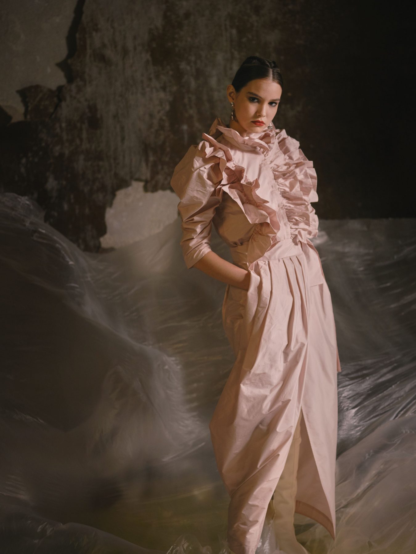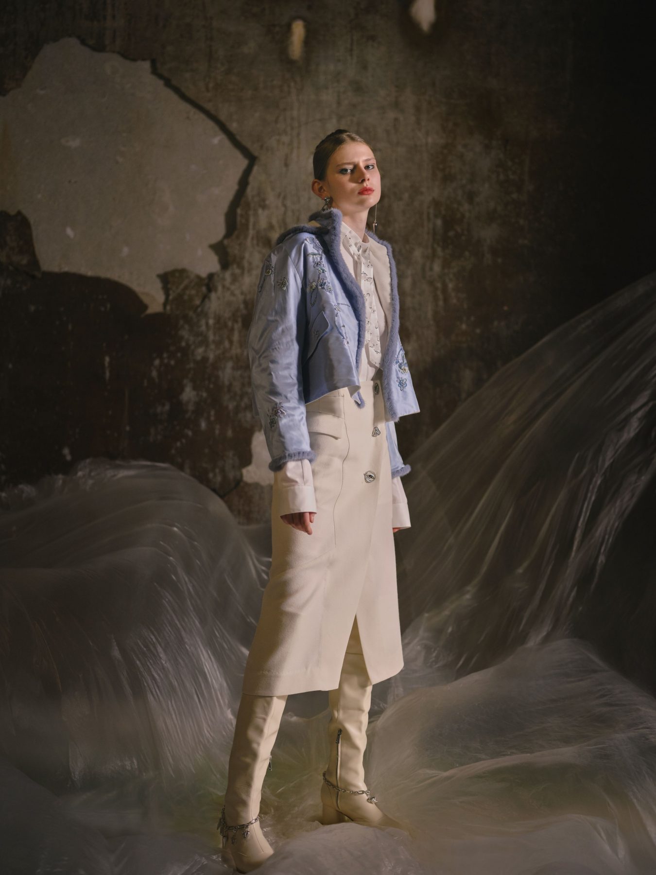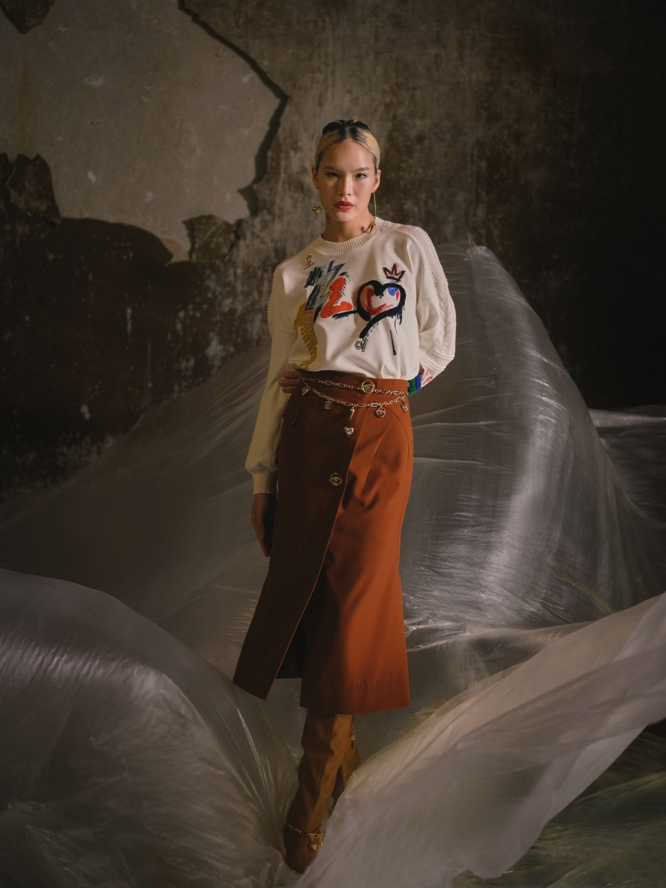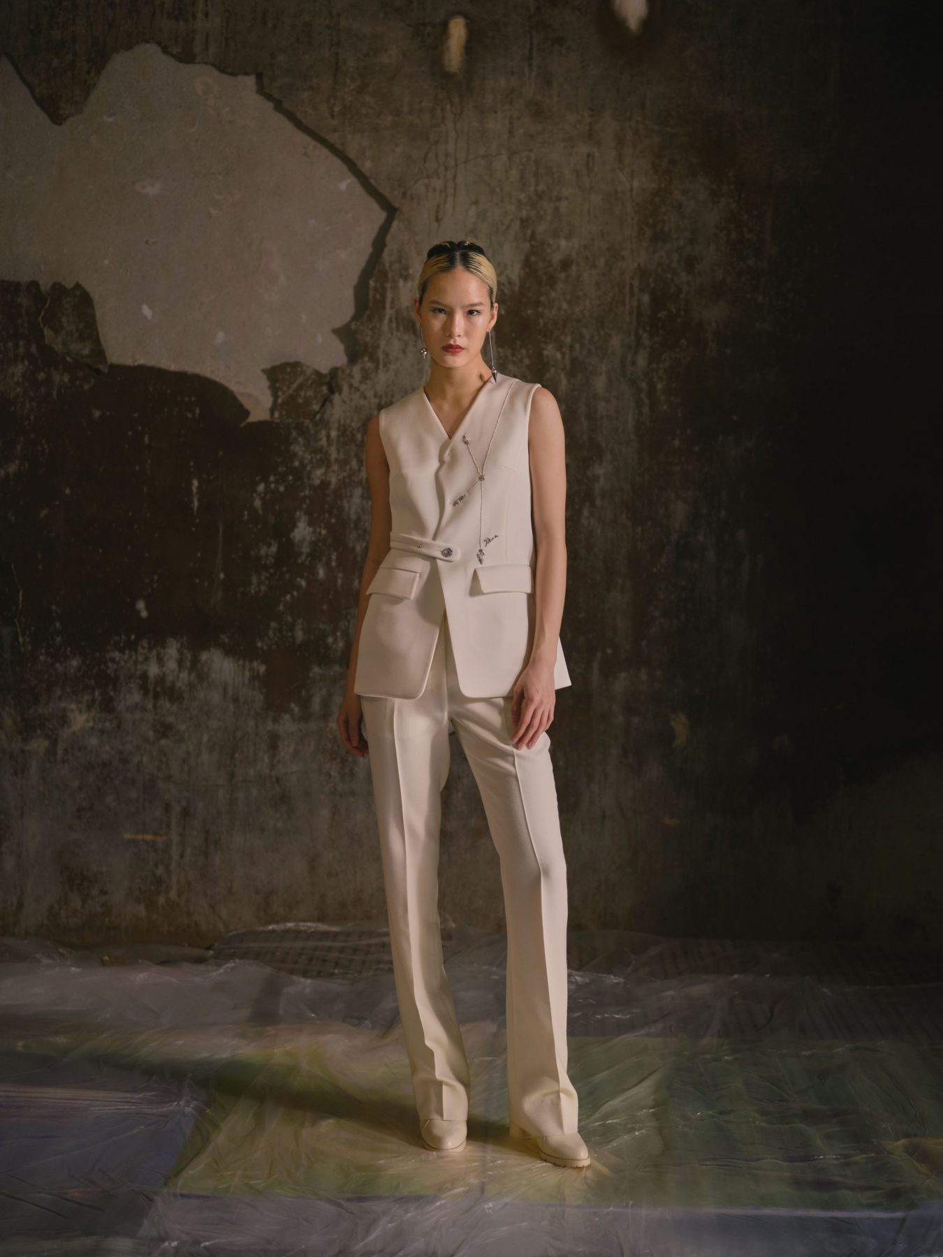如果有留意開品牌的話,不難發覺設計總監王陳彩霞女士近年銳意打造一種堅強而富有女性韻味的風格;以今年春夏系列為例,以古代女性英雌花木蘭打造出一系列既浪漫又帥氣的「新中式軍裝」。這一次,她先是回到七十年代盛行「權力穿搭」(Power Dressing)理念與輪廓的風潮,伴隨著當時職業女性地位迅速提高和女權主義抬頭的時尚「戰袍」,藉此以力量傳承,展現今天度過艱困時刻的信念。