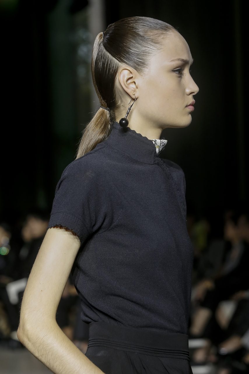 最後,不得不提來季Shiatzy Chen美侖美奐的配飾。其實以金屬臨摹竹的形態,並不是新鮮點子。像Phoebe Philo年代的Celine,就已推出過像竹子般的英文字母吊咀,產品當然大旺收場的。Shiatzy Chen的竹子首飾與她同而不同,同在差不多的技巧,異於氣質與高雅格調,個人認為要歸功於比例拿捏得宜,但壞處就是天橋上難以看清。但是Shiatzy Chen筆下的女士不喧嘩浮誇。這份孤芳自賞的精緻,正正是令她與別不同的關鍵。