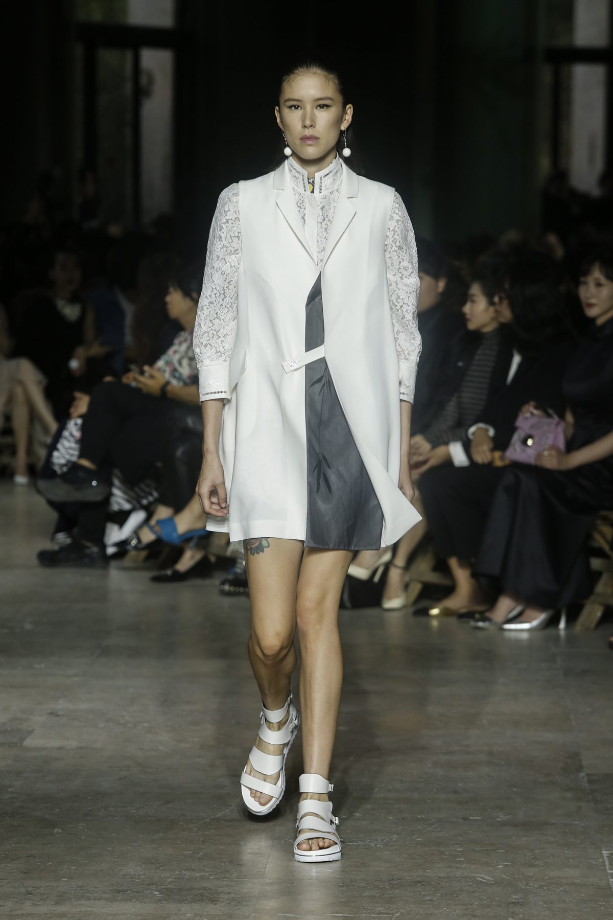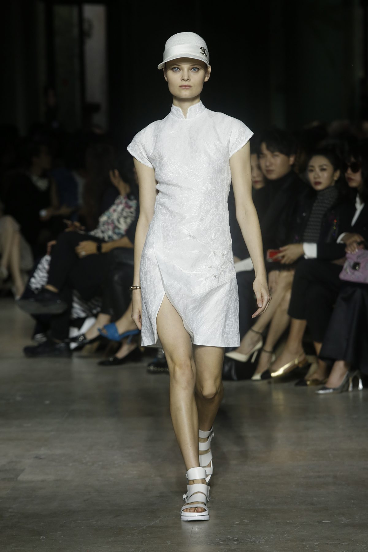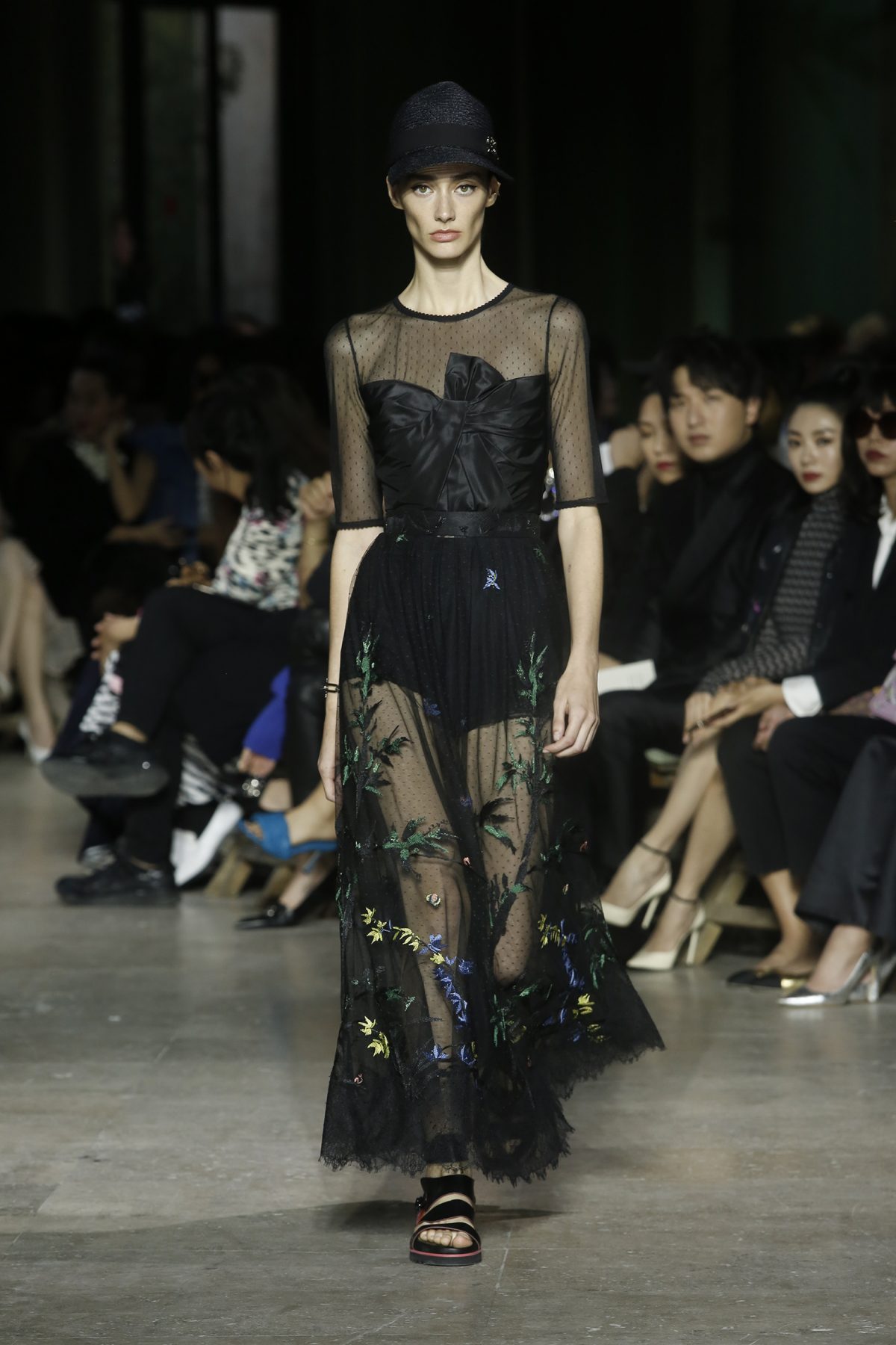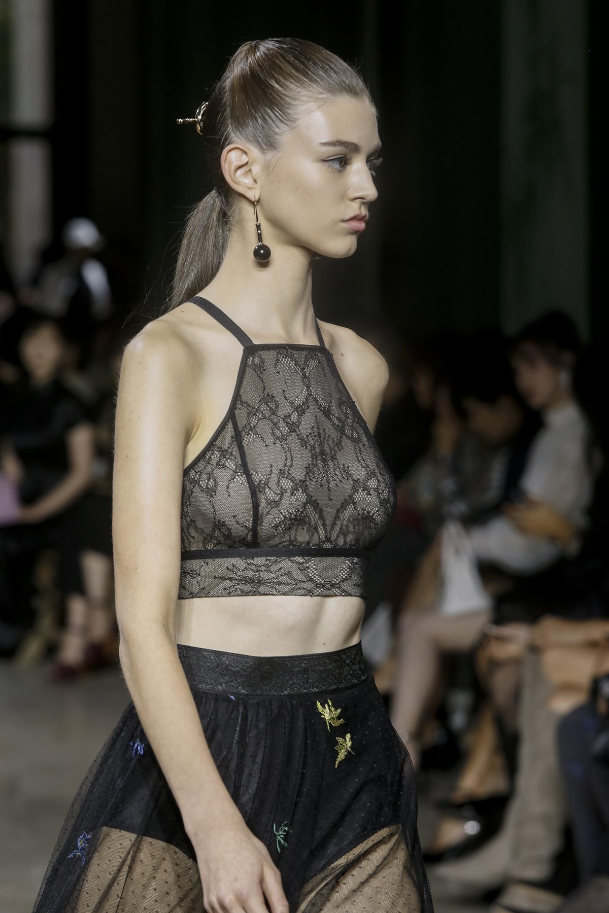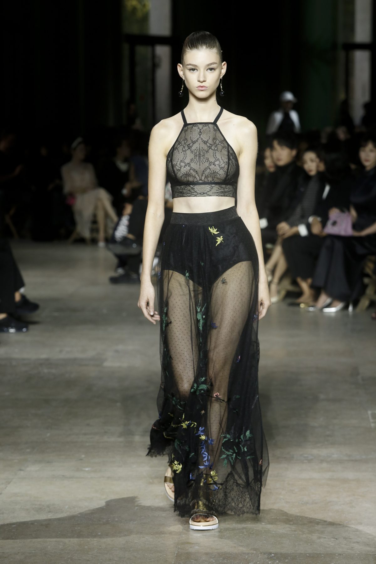 除了是觀察力,Shiatzy Chen呈現主題也有相當高的能力。她首先以修長的版型呈現竹的形態,然後巧妙地把刺繡和肚兜元素融入系列,透過襬褶的細節,配合光澤感布料的律動,在中式的廓形上,使用了西式的剪裁和布料,打造中西融合的時裝樣貌。當中還有多種烏干紗的結合運用,前短後長輔以薄透親膚的布料,像喱士、棉麻、絲緞等等營造輕盈姿態,一反竹給人硬橋硬碼的印象,以西方的墨,畫出了一片東方詩意。