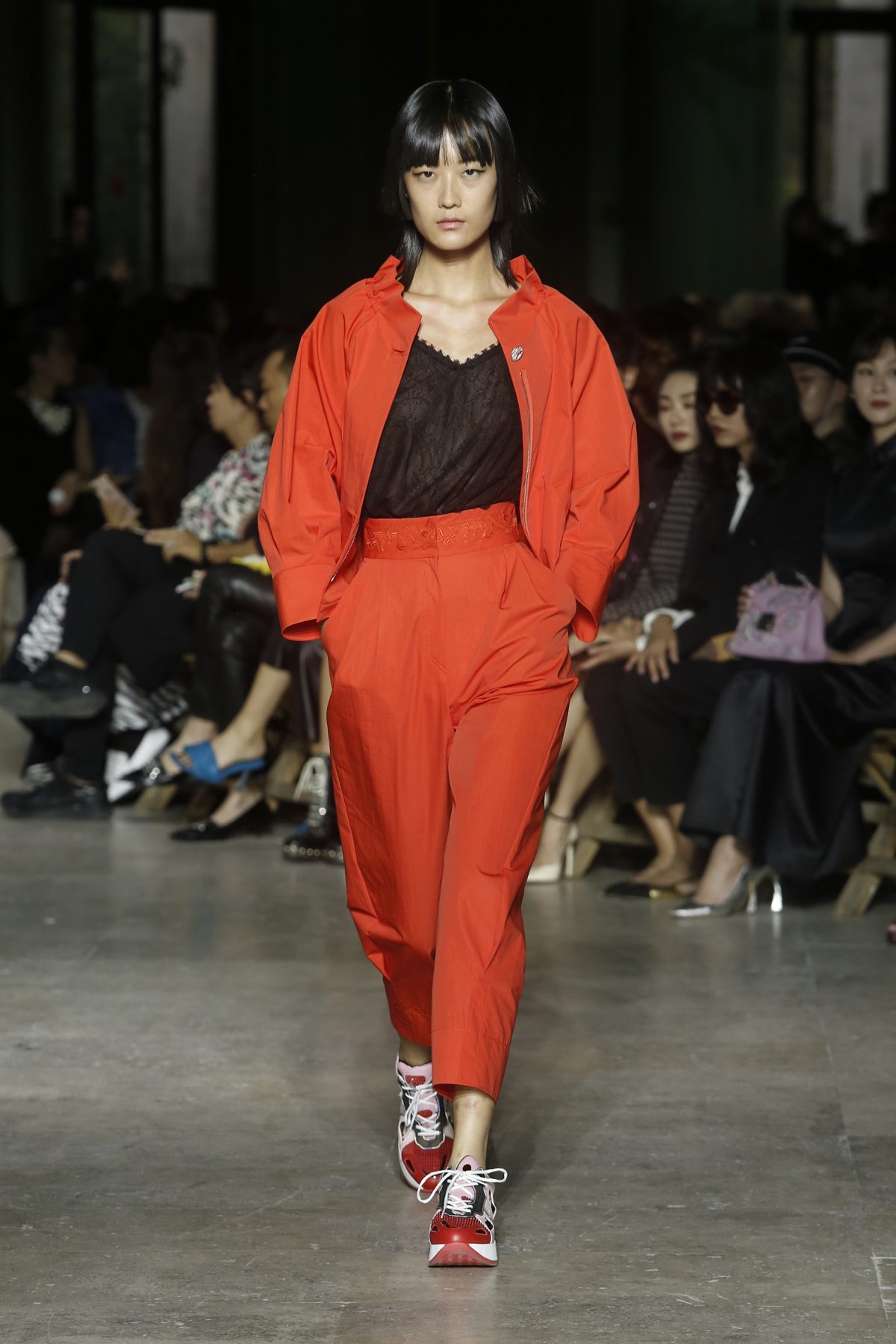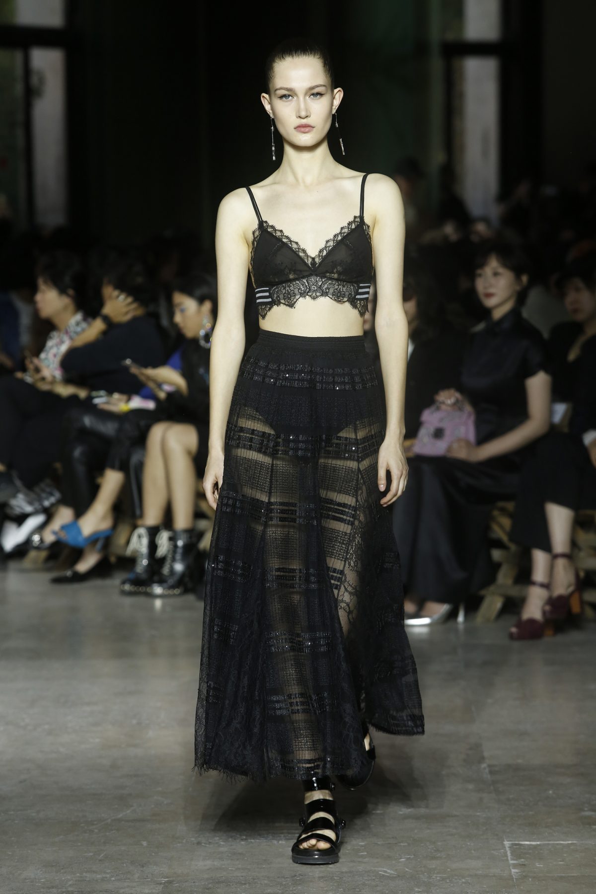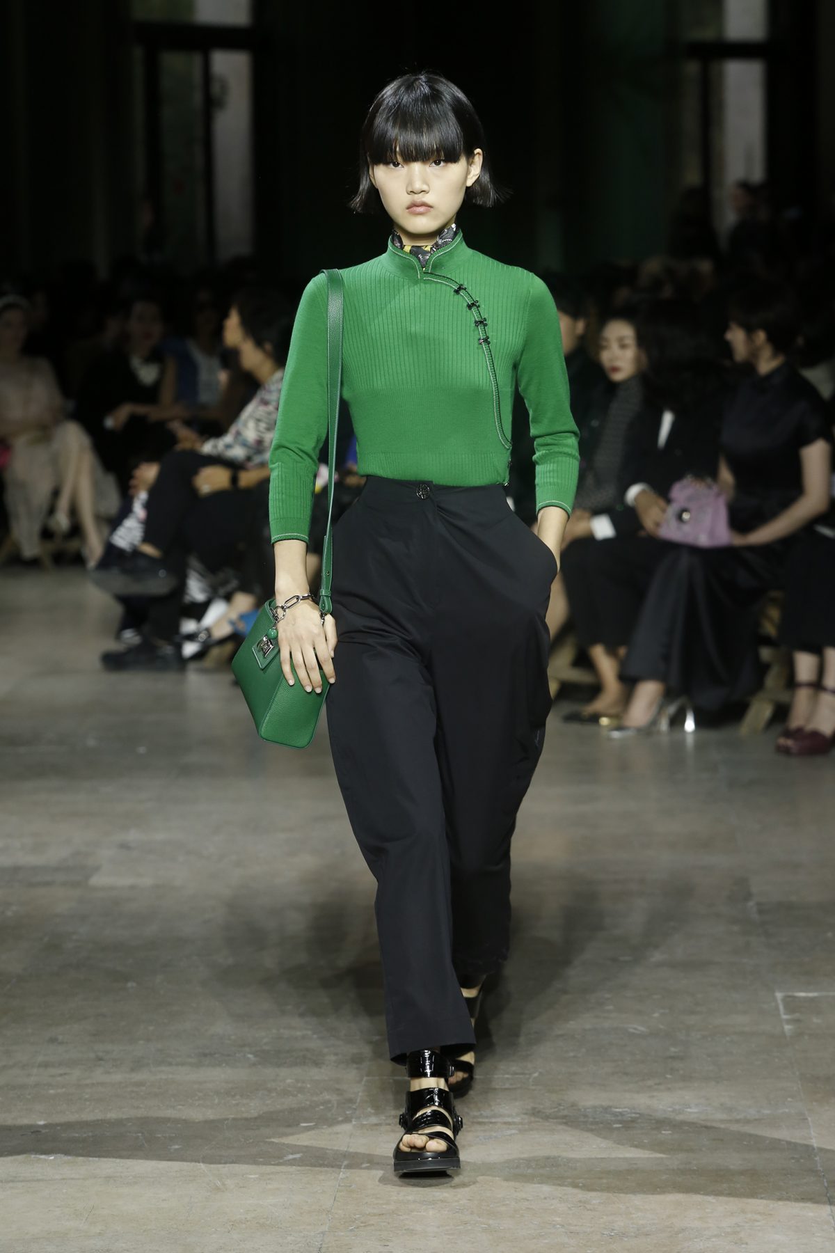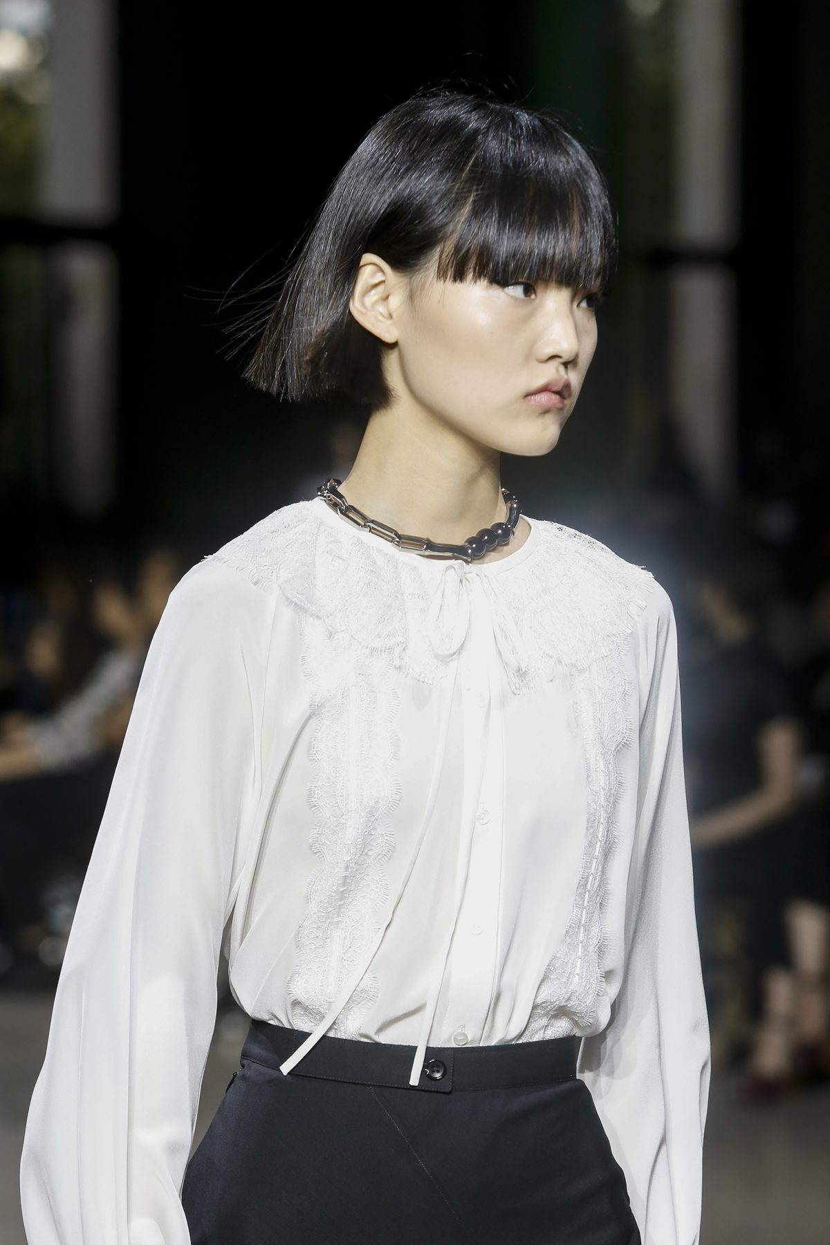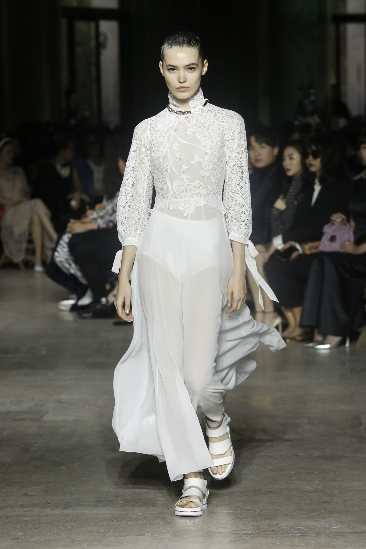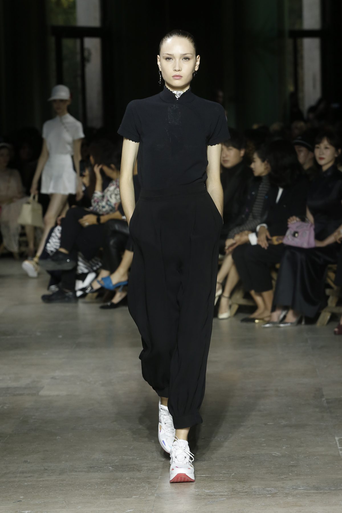 除了是觀察力,Shiatzy Chen呈現主題也有相當高的能力。她首先以修長的版型呈現竹的形態,然後巧妙地把刺繡和肚兜元素融入系列,透過襬褶的細節,配合光澤感布料的律動,在中式的廓形上,使用了西式的剪裁和布料,打造中西融合的時裝樣貌。當中還有多種烏干紗的結合運用,前短後長輔以薄透親膚的布料,像喱士、棉麻、絲緞等等營造輕盈姿態,一反竹給人硬橋硬碼的印象,以西方的墨,畫出了一片東方詩意。