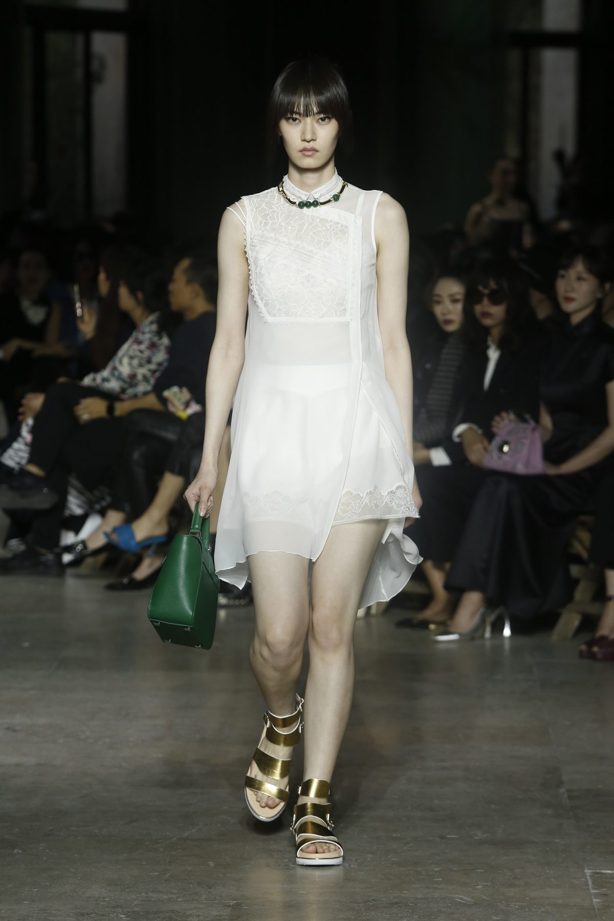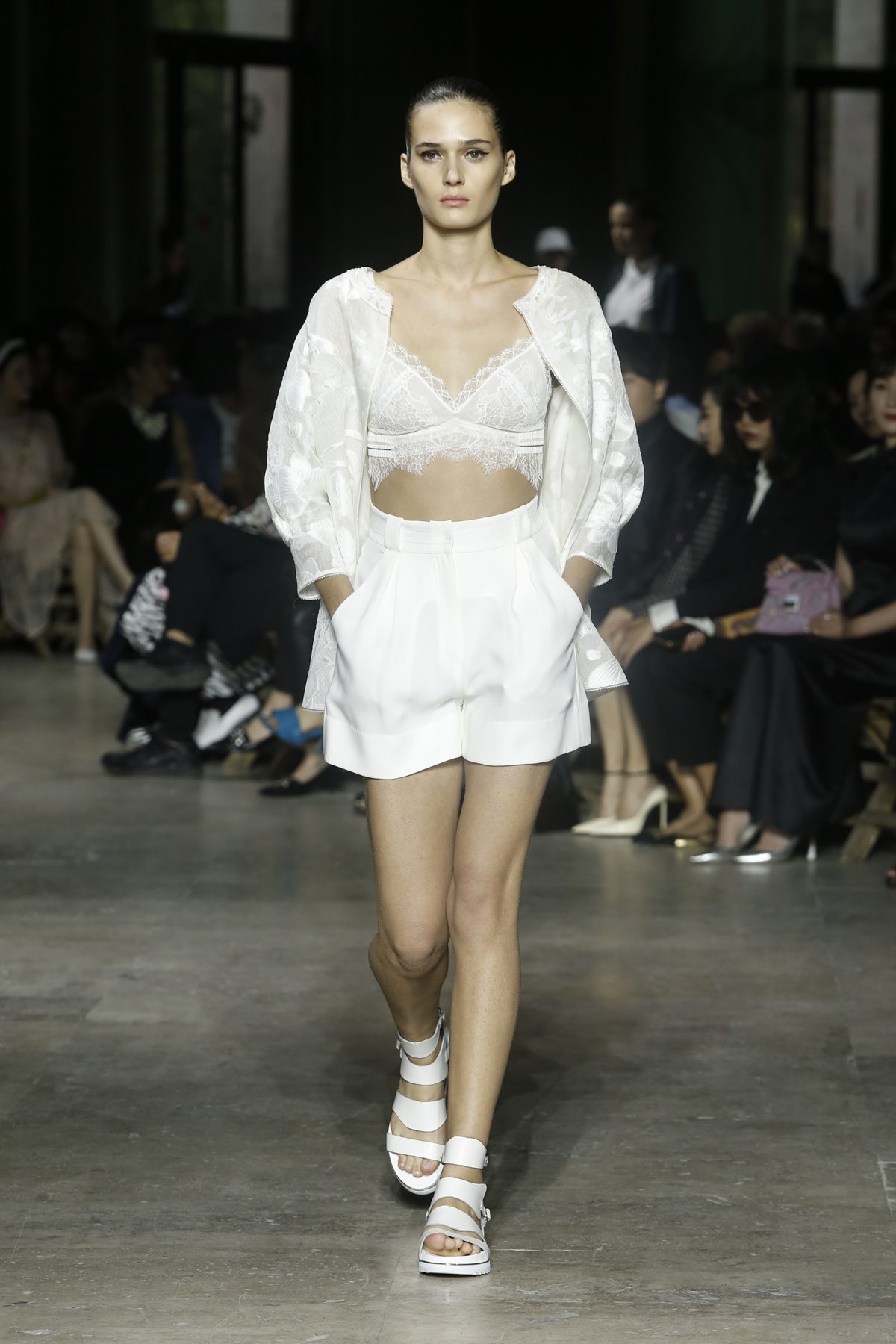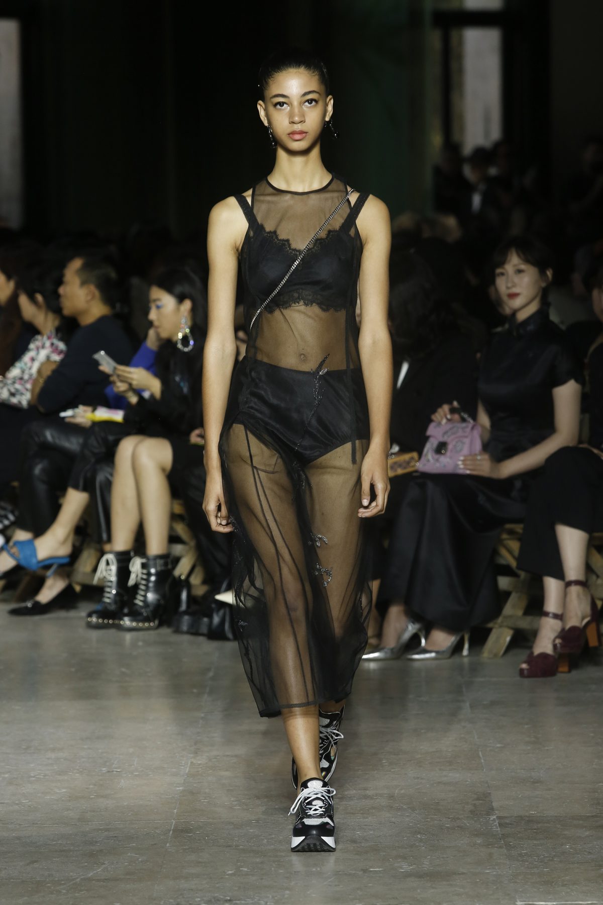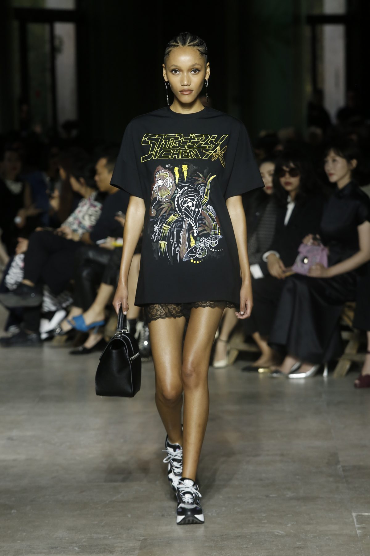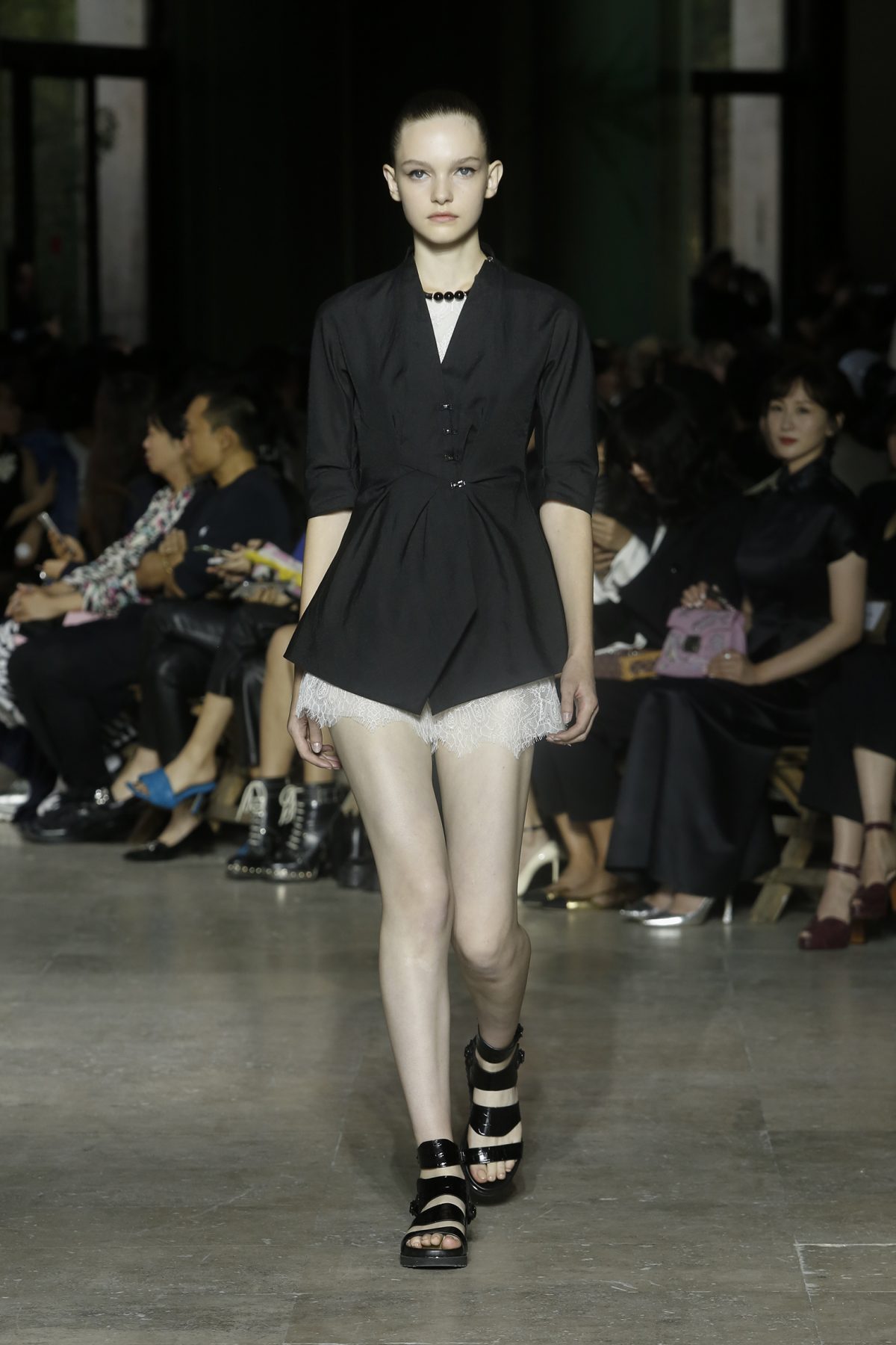 除了是觀察力,Shiatzy Chen呈現主題也有相當高的能力。她首先以修長的版型呈現竹的形態,然後巧妙地把刺繡和肚兜元素融入系列,透過襬褶的細節,配合光澤感布料的律動,在中式的廓形上,使用了西式的剪裁和布料,打造中西融合的時裝樣貌。當中還有多種烏干紗的結合運用,前短後長輔以薄透親膚的布料,像喱士、棉麻、絲緞等等營造輕盈姿態,一反竹給人硬橋硬碼的印象,以西方的墨,畫出了一片東方詩意。