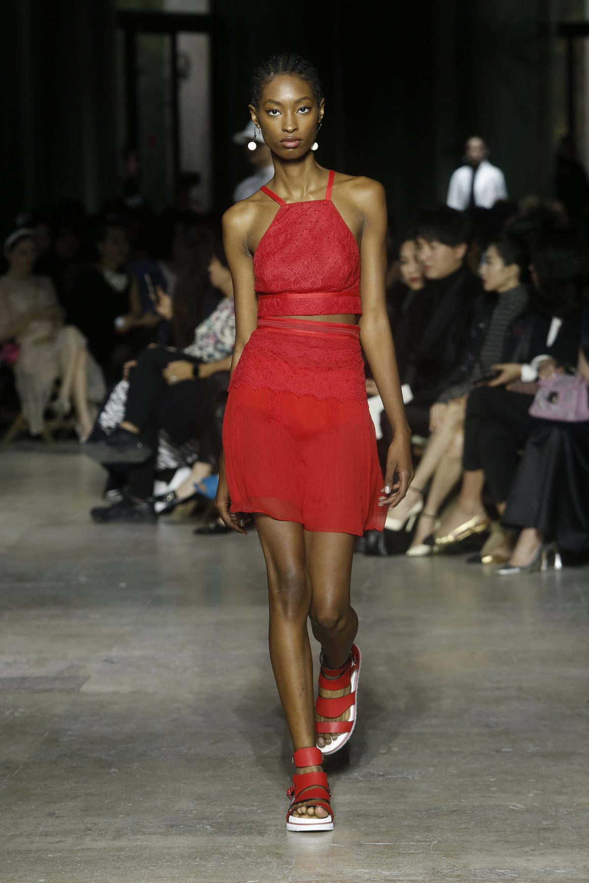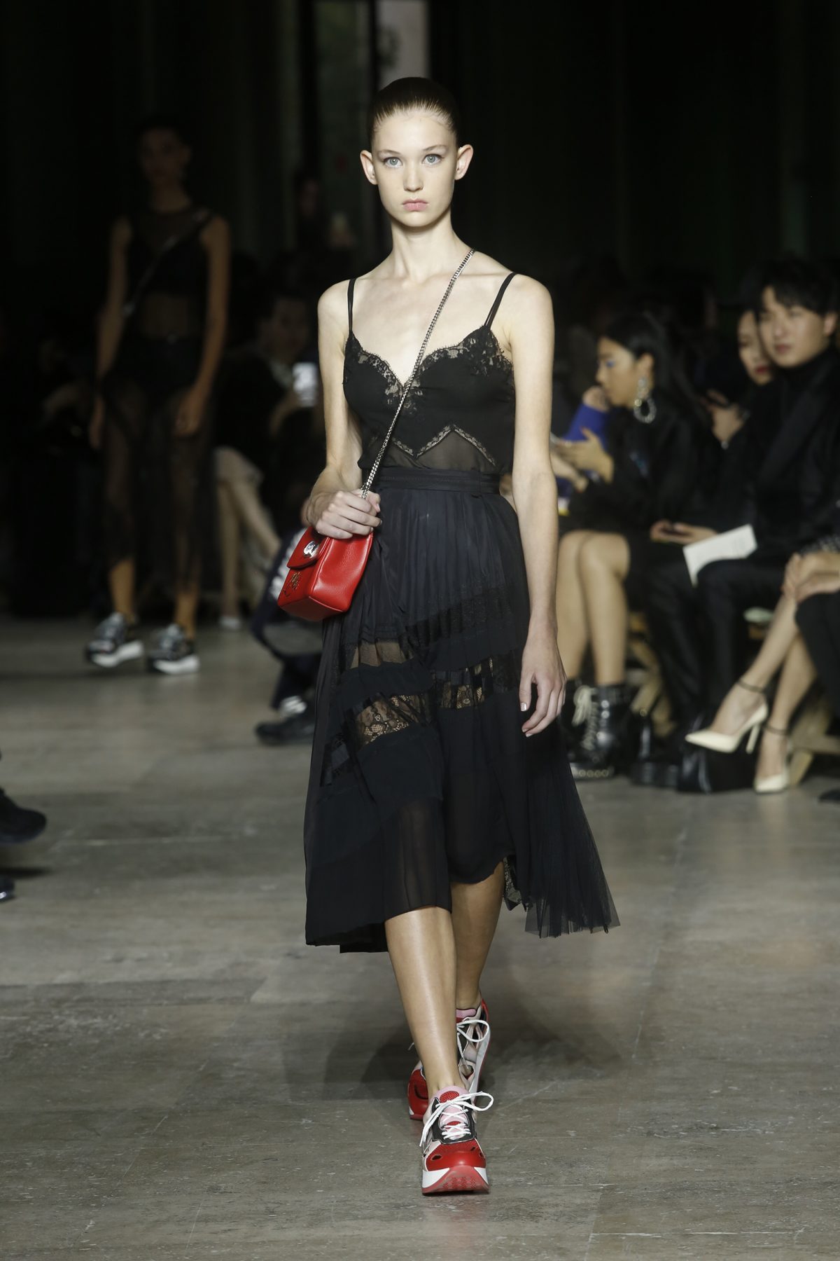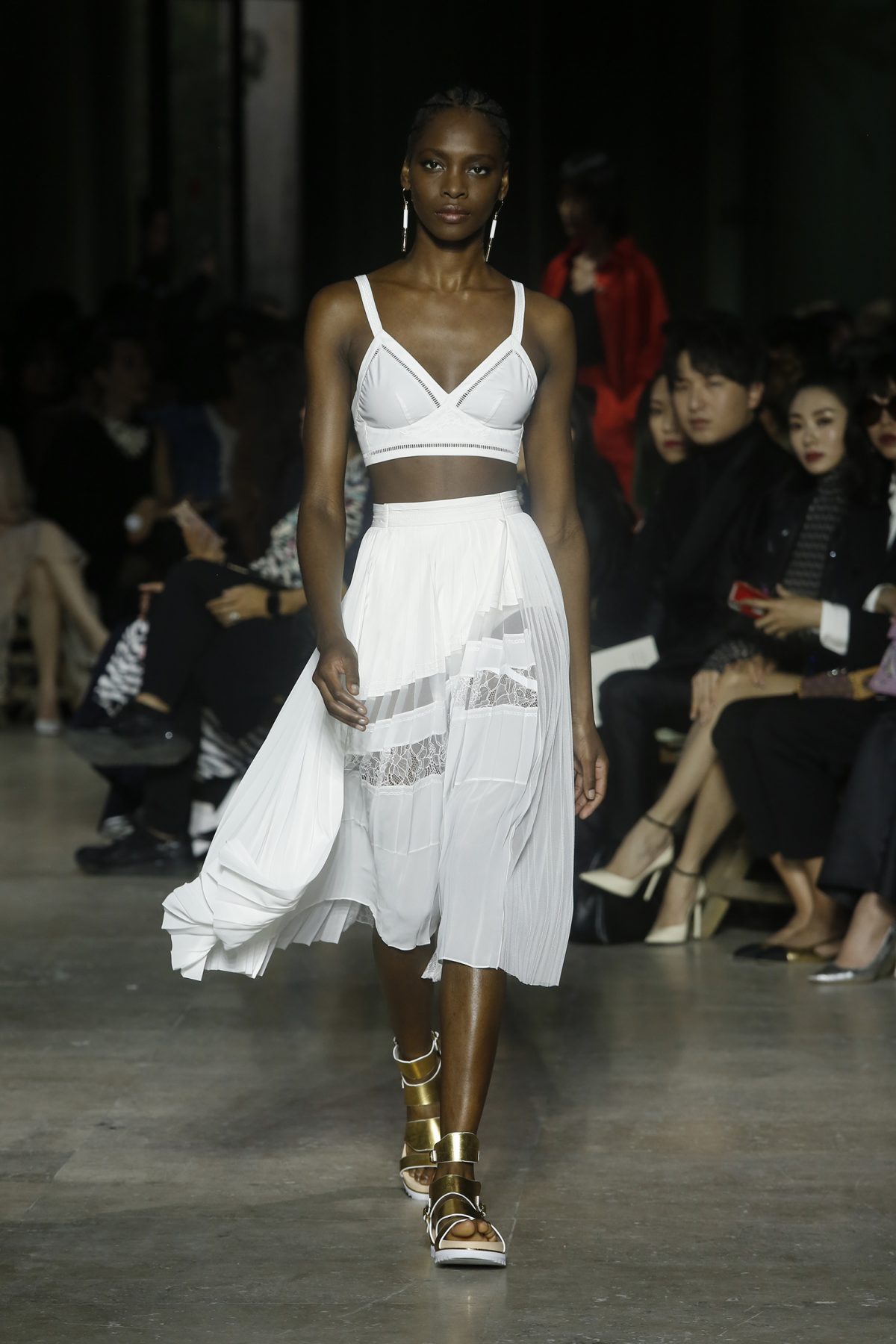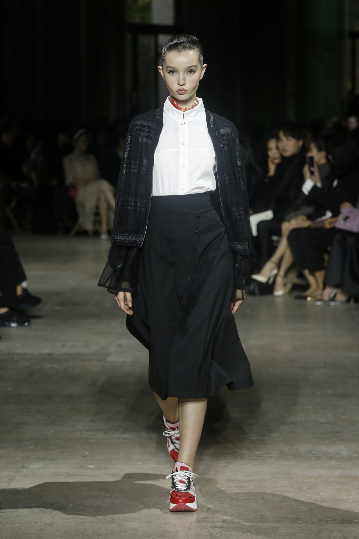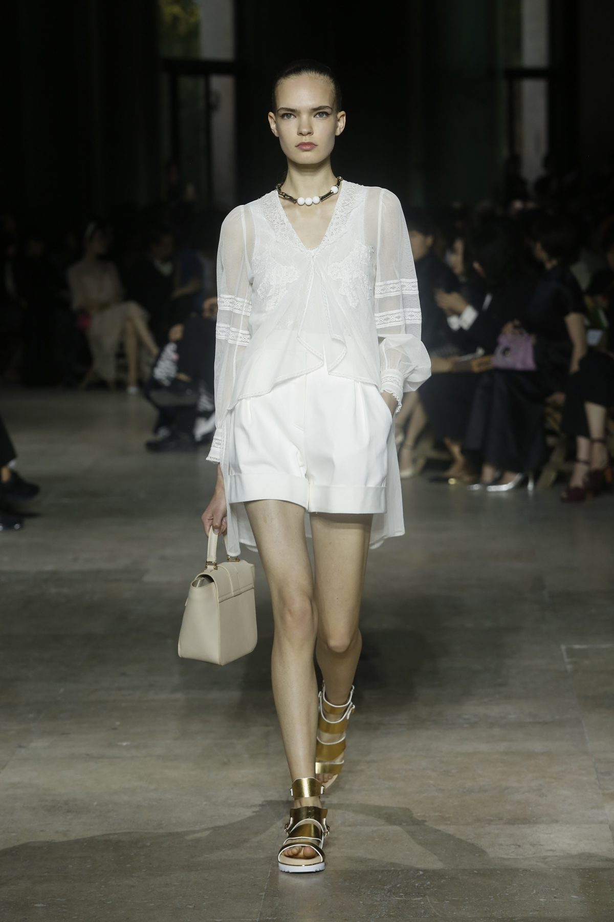 除了是觀察力,Shiatzy Chen呈現主題也有相當高的能力。她首先以修長的版型呈現竹的形態,然後巧妙地把刺繡和肚兜元素融入系列,透過襬褶的細節,配合光澤感布料的律動,在中式的廓形上,使用了西式的剪裁和布料,打造中西融合的時裝樣貌。當中還有多種烏干紗的結合運用,前短後長輔以薄透親膚的布料,像喱士、棉麻、絲緞等等營造輕盈姿態,一反竹給人硬橋硬碼的印象,以西方的墨,畫出了一片東方詩意。