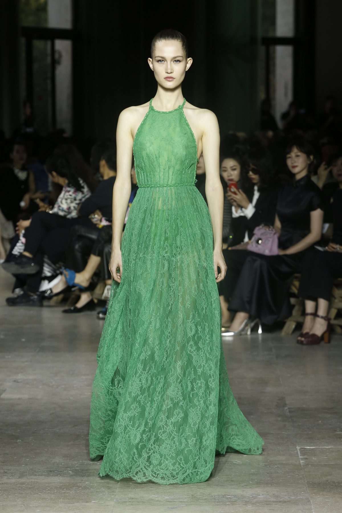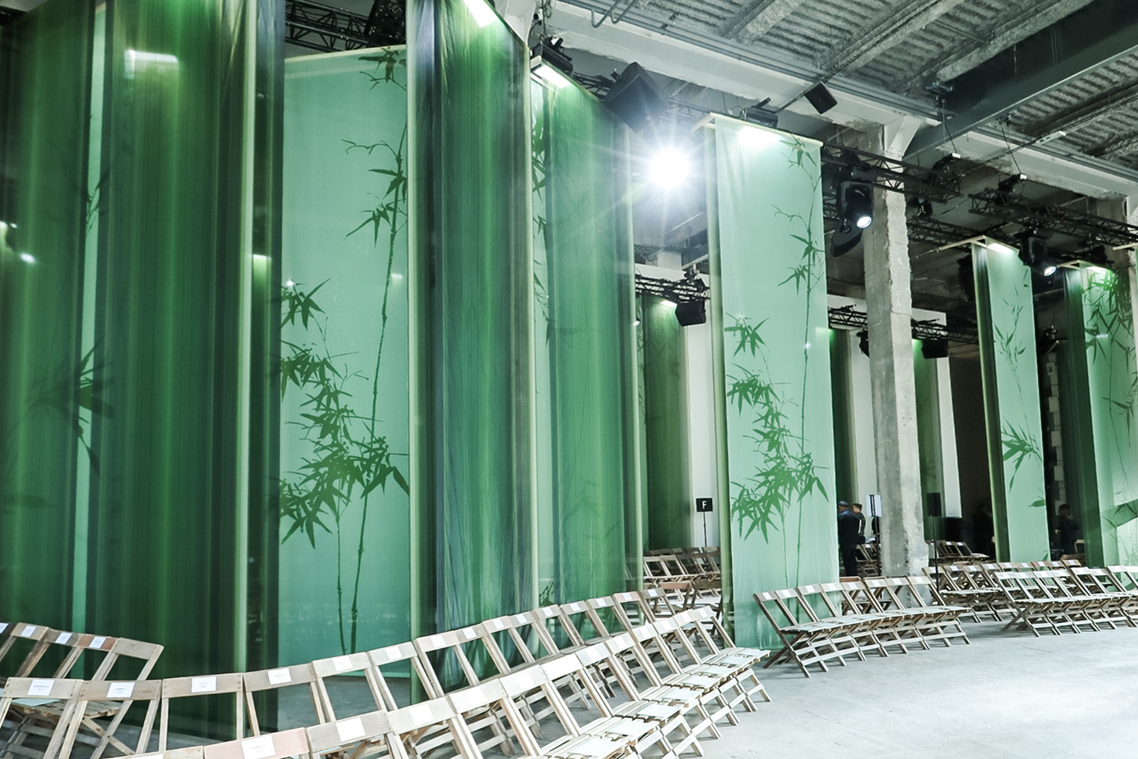 座上客收到邀請卡時已有今季主題的端倪——綠油油的一抹薄紗包裏着邀請卡,富有東方詩意的設計來自Shiatzy Chen對「竹」的想像。自古以來,竹跟文學有解不開的情緣,像蘇東坡先生曾嘆「寧可食無肉,不可居無竹,無肉令人瘦、無竹令人俗」;三國時代也有「孟宗哭竹」孝感動天的典故。竹,向來與氣質掛勾,於植物學的角度而言,它的成長速度比其它植物高,結構簡樸實際,外表堅硬,又能夠在極端環境內生存。說到這裏,不得不佩服Shiatzy Chen的觀察力,單單是竹的幾項特點便把東方女性描繪得有形有色。