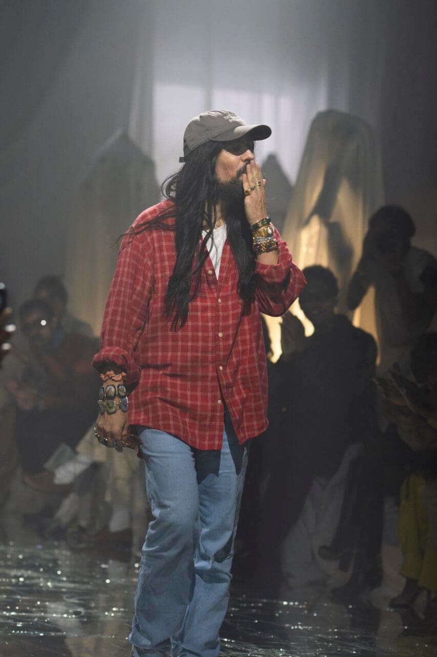 自 Alessandro Michele 離開任職了 20 年的 Gucci 後便一直沉寂了兩年,直至今年才傳出他將加入另一歷史悠久的品牌 Valentino。這位設計師的回歸一直備受期待,這不僅因為粉絲們希望他再次大放異彩,更是源於大家好奇他獨特美學將與品牌擦出什麼新火花。或許有人說 Alessandro 的個人風格過於出眾,甚至掩蓋品牌本身風格,但在近年芸芸的安靜奢華、極簡低調設計中,這場系列確實突圍而出,如同當初的他剛上任 Gucci 那樣,再次在時尚界掀起波瀾。