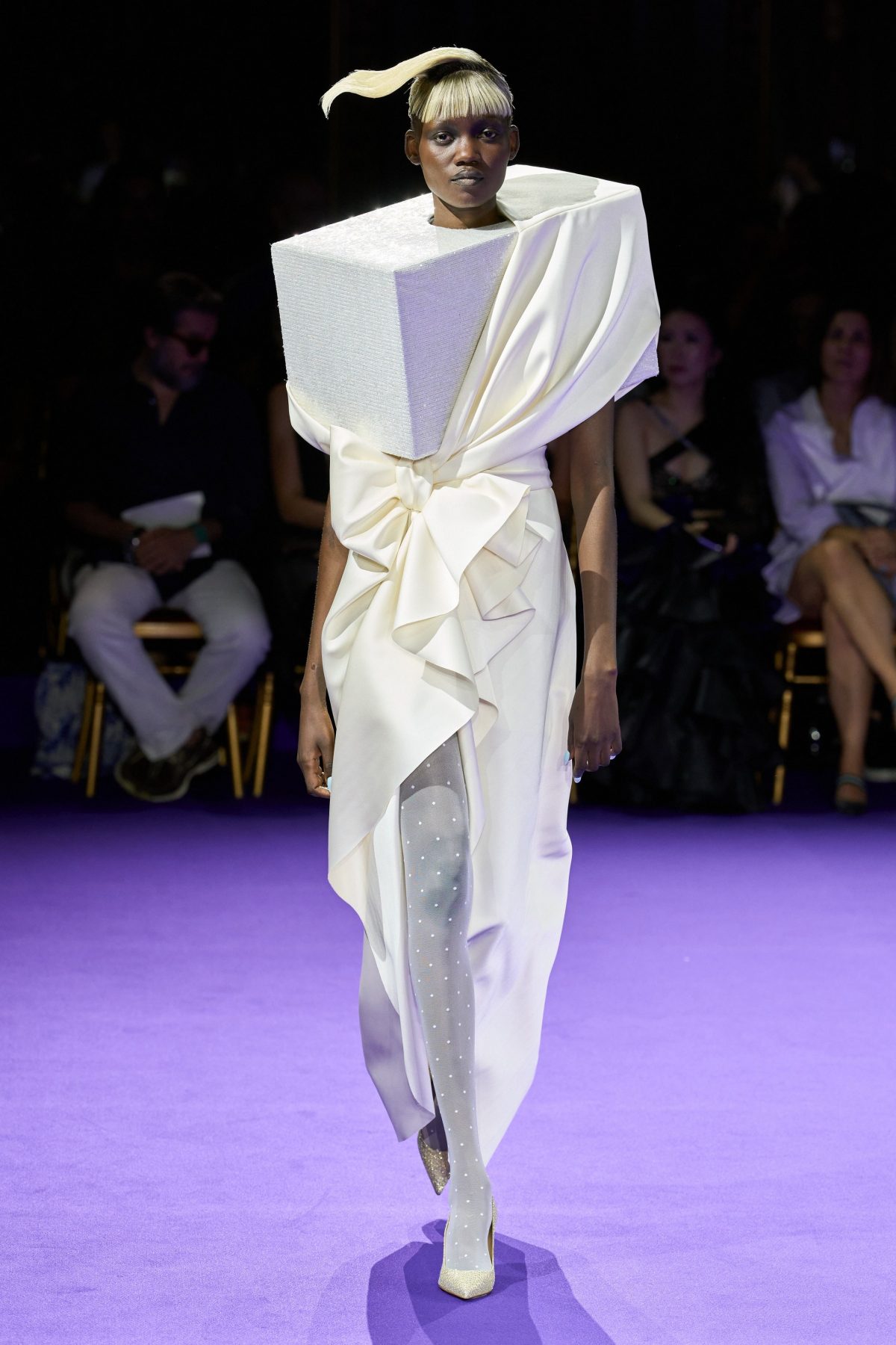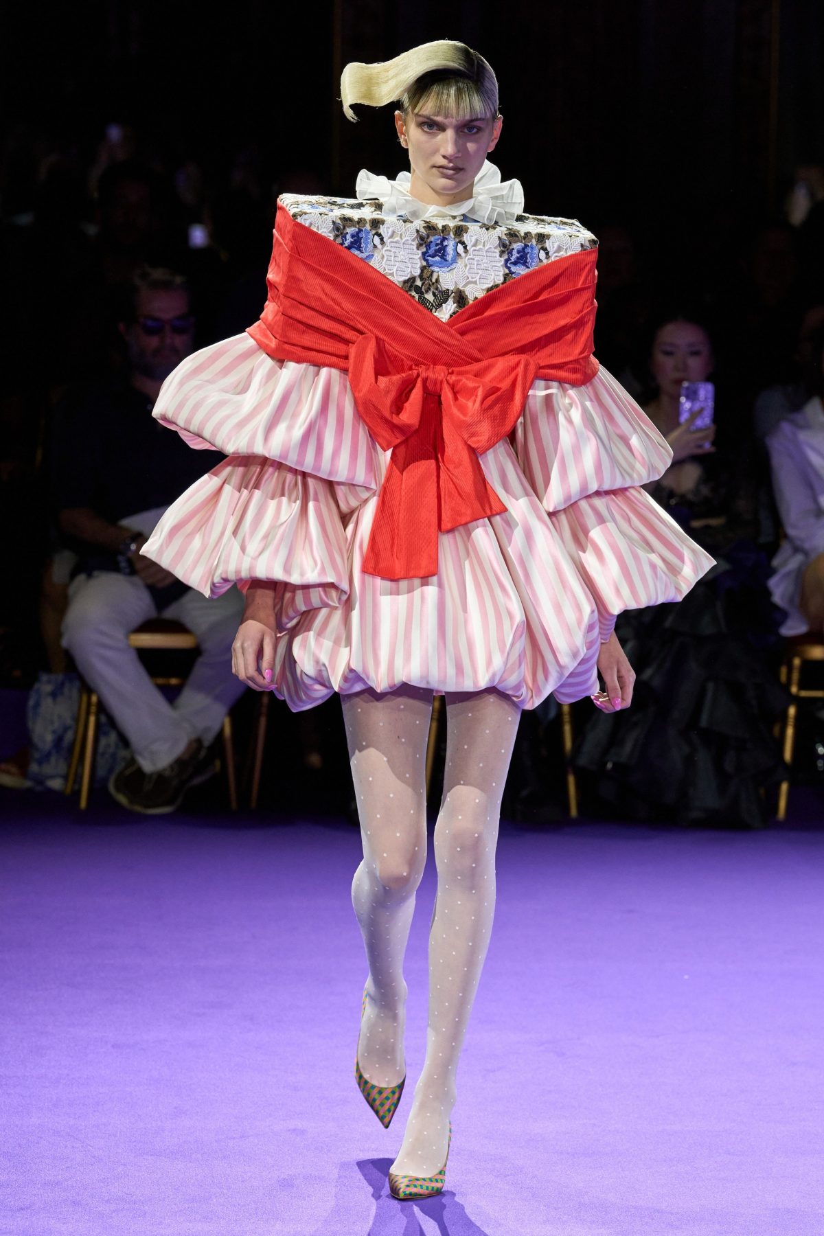 Viktor Horsting 和 Rolf Snoeren 為今天的高級訂製系列設計了一條回憶之路。二十六年前,他們的第二個高級訂製系列的輪廓是基於原子彈爆炸的蘑菇雲形狀。模特兒脖子上戴著巨大的枕頭。他們在該系列的預覽中表示,形狀「非常生動、誇張和荒謬」。 「因此在今季,即二十六年後,我們再次想到了這一季的設計。我們喜歡做一些荒唐、沒有意義的事。我們想進一步推進這一概念。一方面是人體;另一方面,最抽象的形狀。高級訂製時裝是對抽象主義的一種誇張手法。」,而這對荷蘭設計師是這個領域的大師。