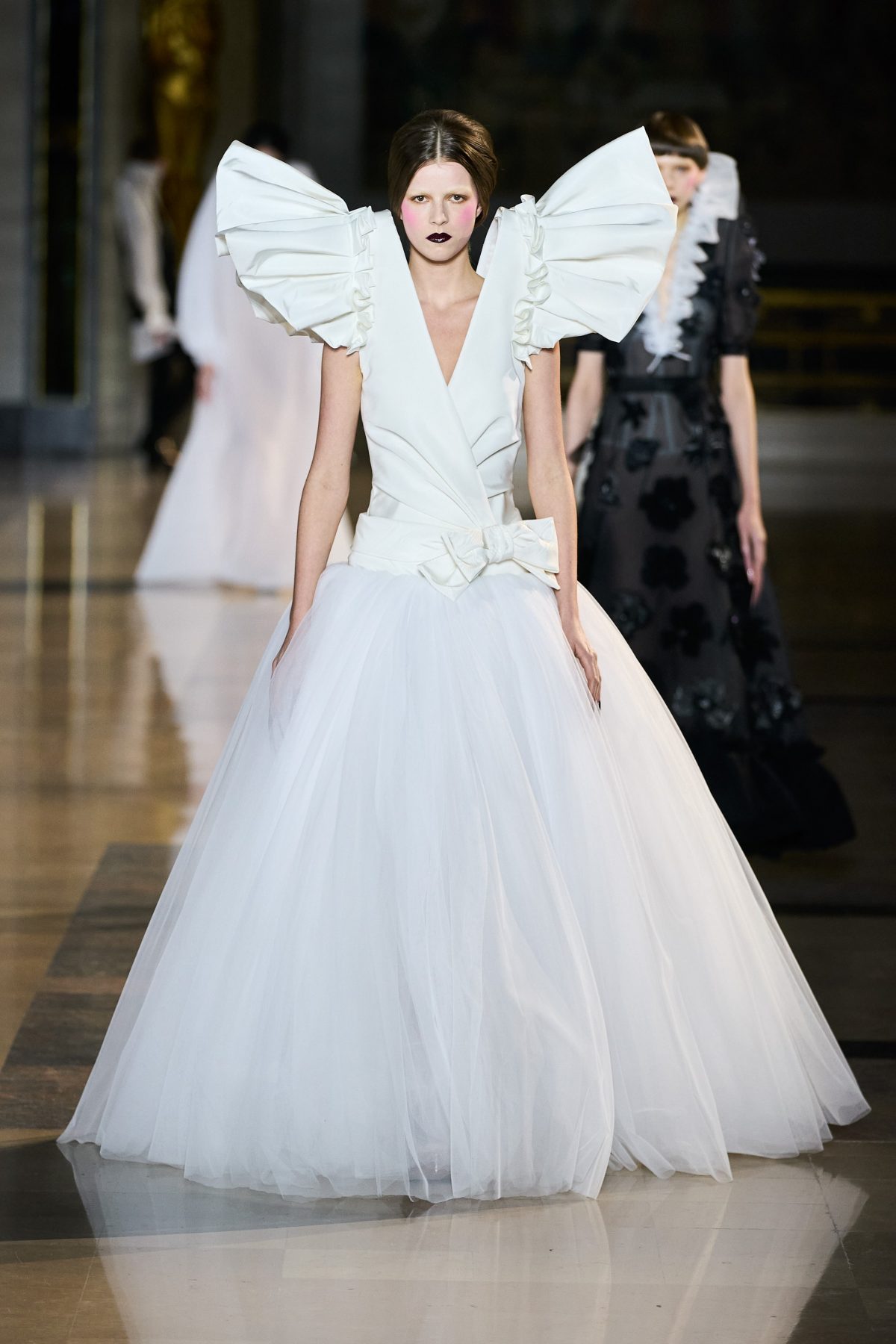 大流後以來,Viktor & Rolf 首次回歸實體時裝展形式發布,在位於特羅卡德羅廣場的夏樂宮舉行其2022 年春夏高訂系列時裝展,場上以白光投射到屏幕,營造出一種背光效果和無盡的陰影,每當模特兒們進入伸展台之前,巨大的剪影就像即將出場的鬼魅般宣布了他們的到來,現場充滿着懸念的氣氛——設計師二人組 Viktor Horsting 和 Rolf Snoeren 選擇以這種方式,試圖揭示美麗有時隱藏着恐懼之中。