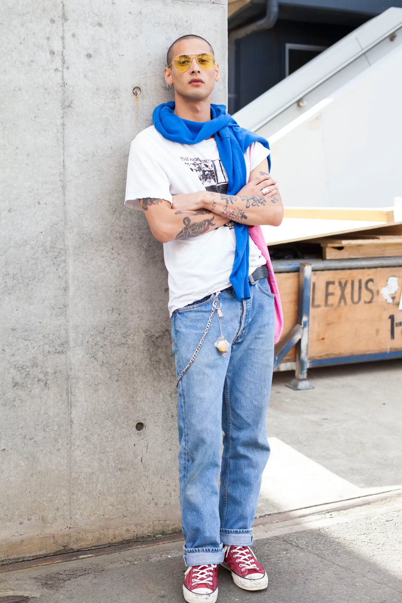 以歷史為鏡,模仿經典人物的穿搭手法絕對是最好的搭配技巧之一。擁有悠遠歷史的 Converse 創造了無數精彩的穿搭方式,最經典的莫過於一件簡單 T-Shirt 配上一條直筒牛仔褲,加上腳踩一雙 Converse,簡單俐落又時髦;氣溫比較低的時候,也可以在外面套件夾克、毛衣,或開襟衫,經典的造型永不過時。也別忘了將褲口反摺的巧思,才能完美露出那雙帥氣的 Converse。